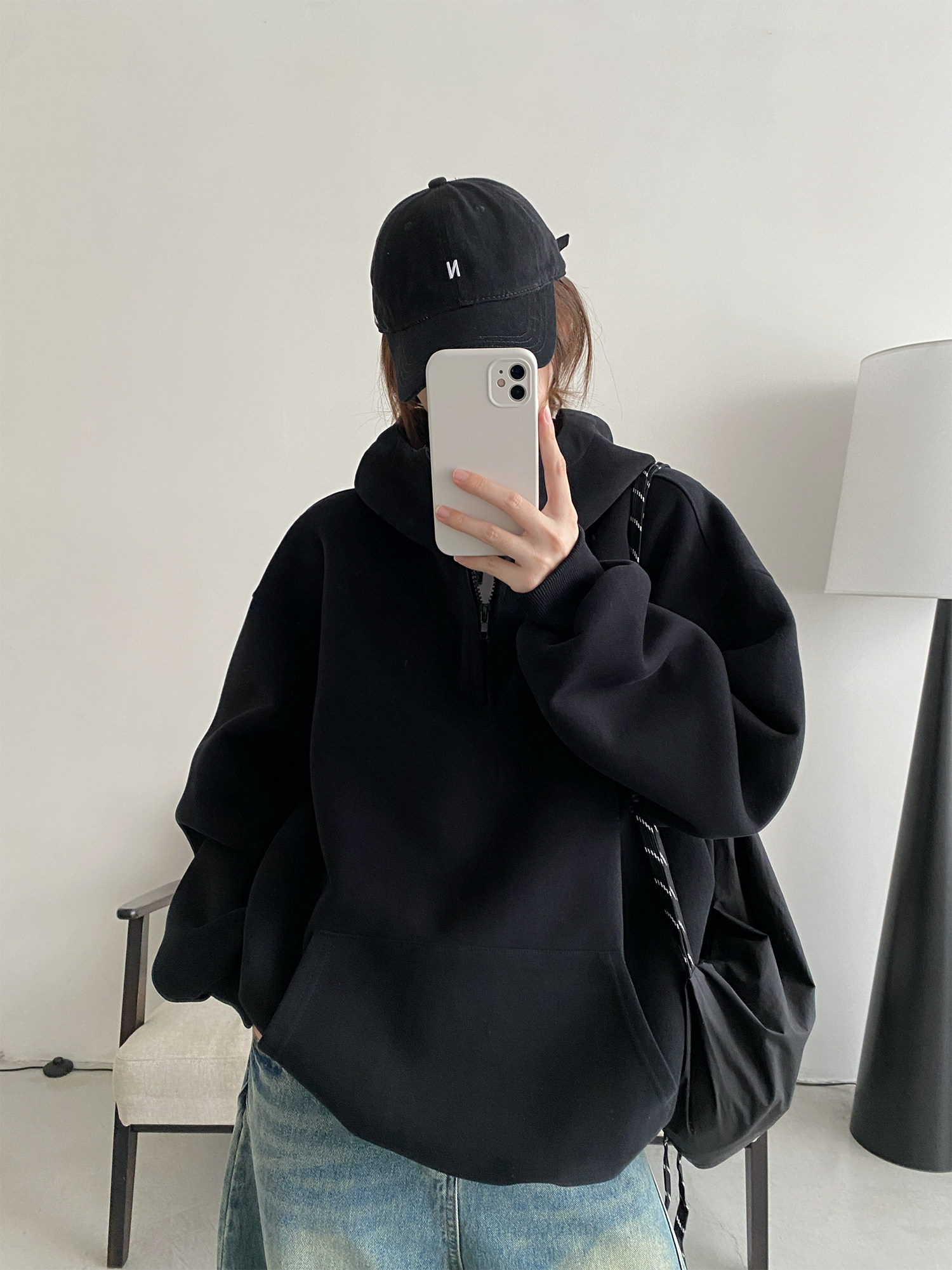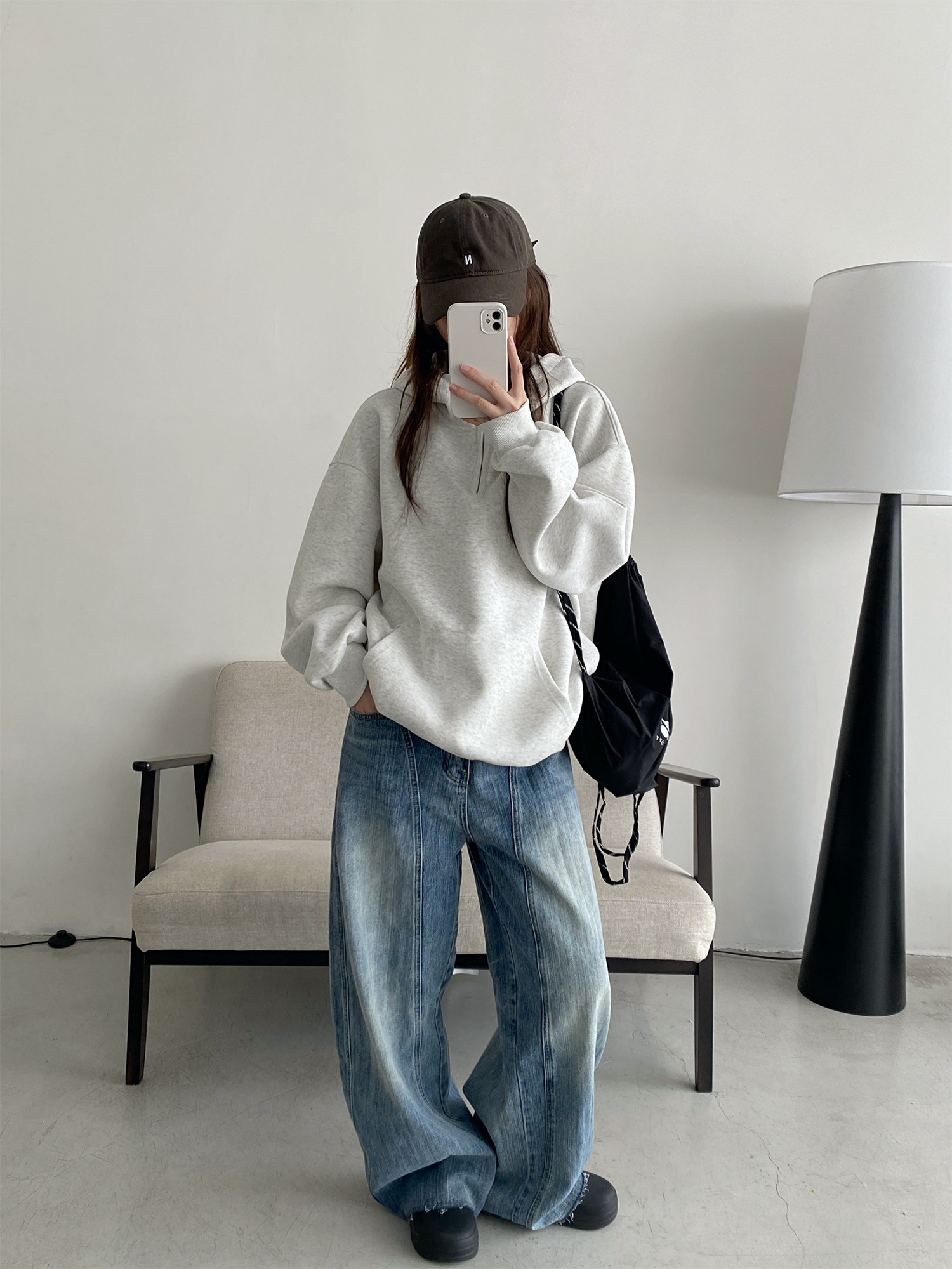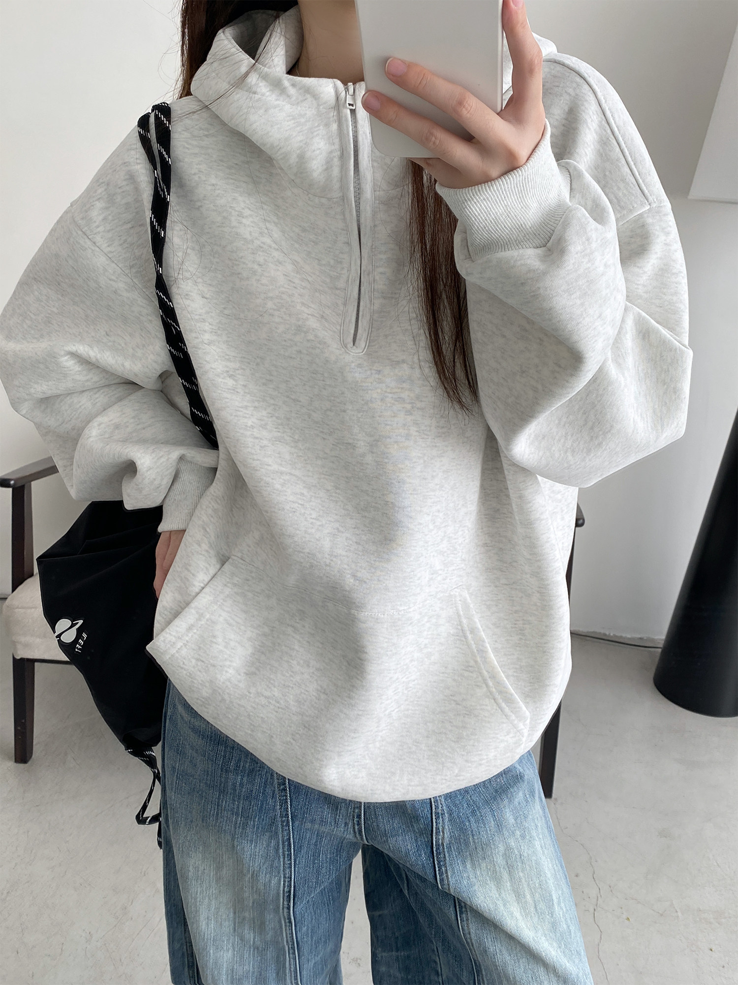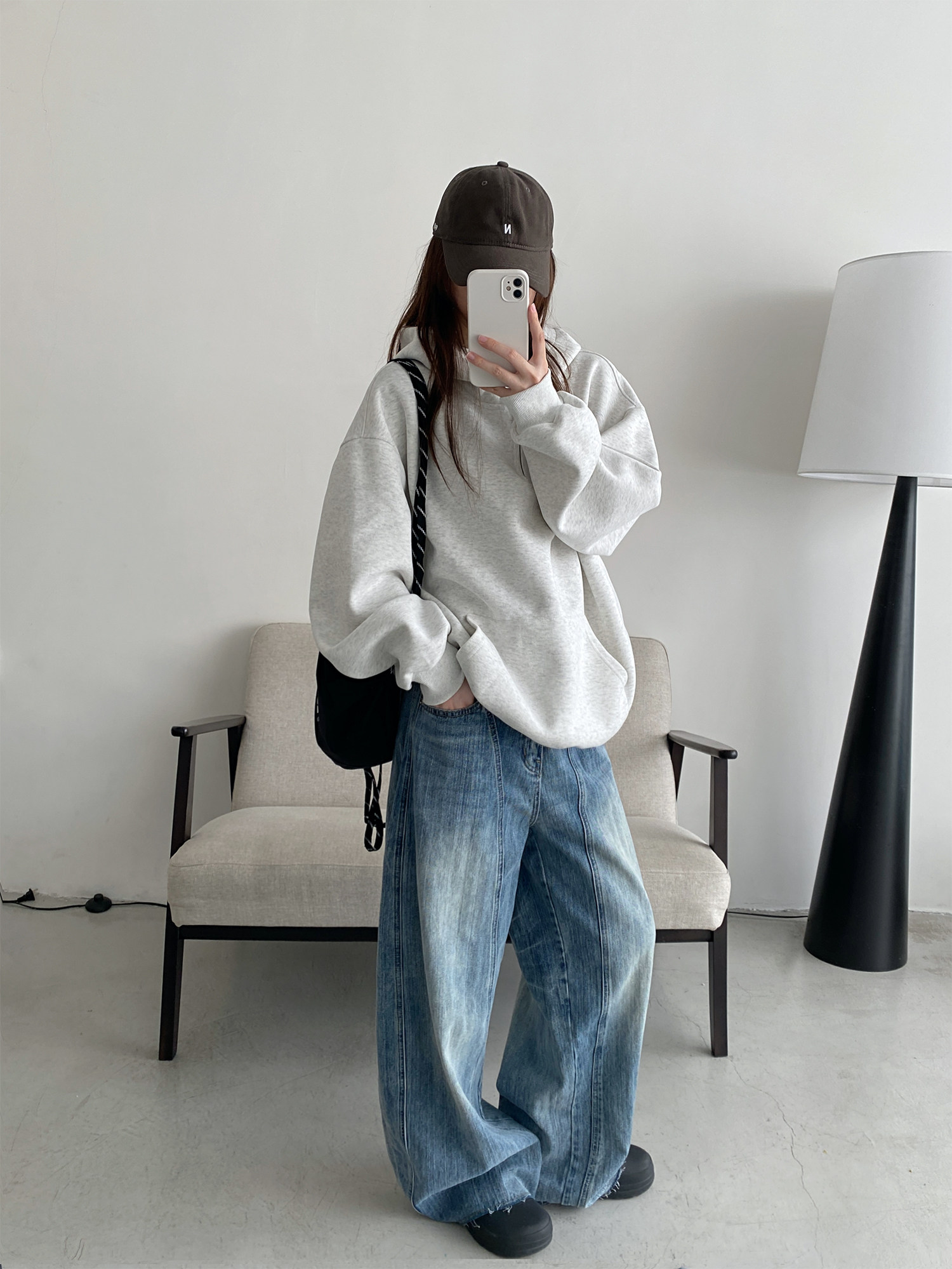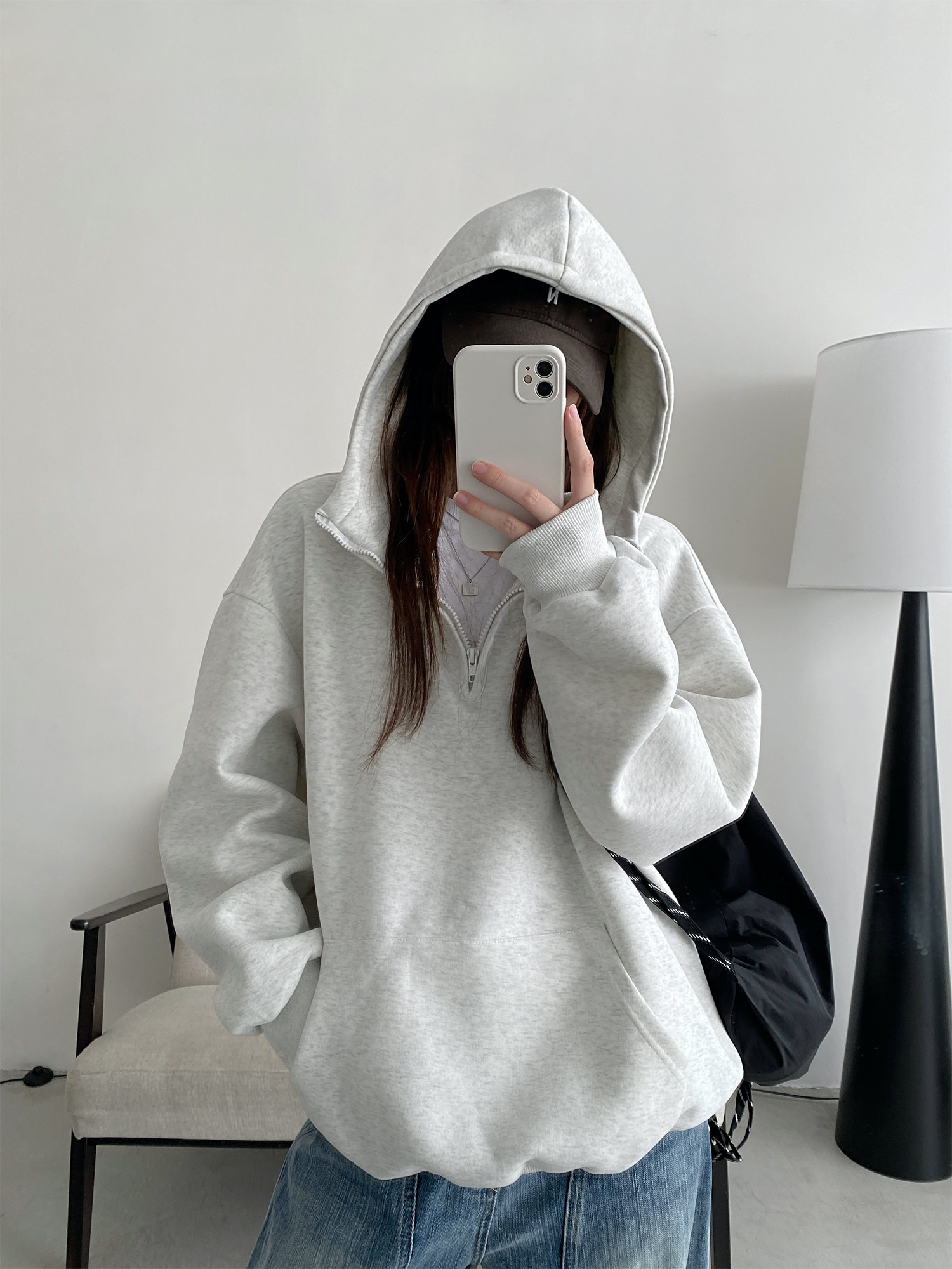【商品名】【トップス】アメカジ風ホワイトパーカー♡春秋にぴったりなオーバーサイズスウェット【FCシリーズ】【15~20日内発送】