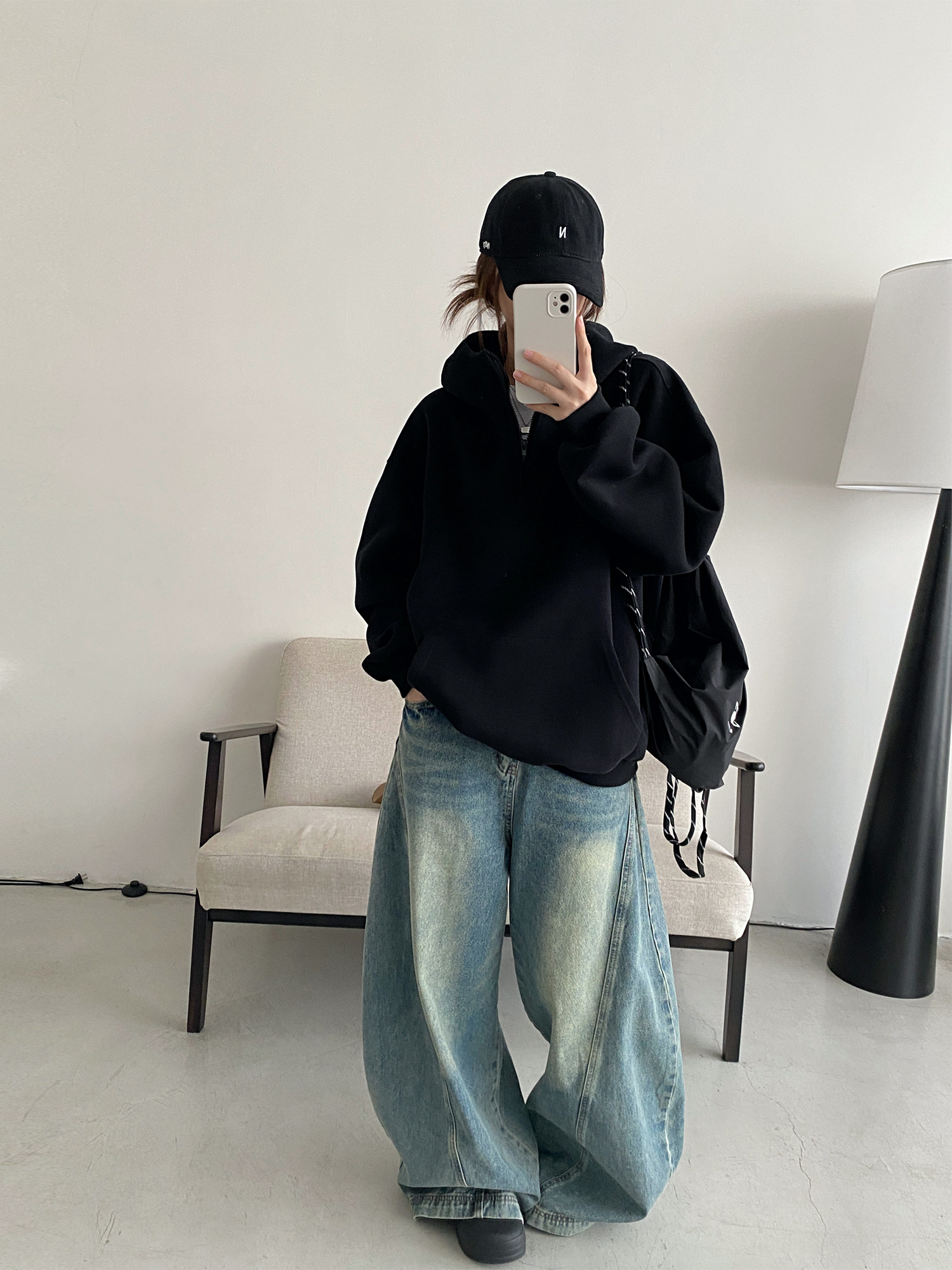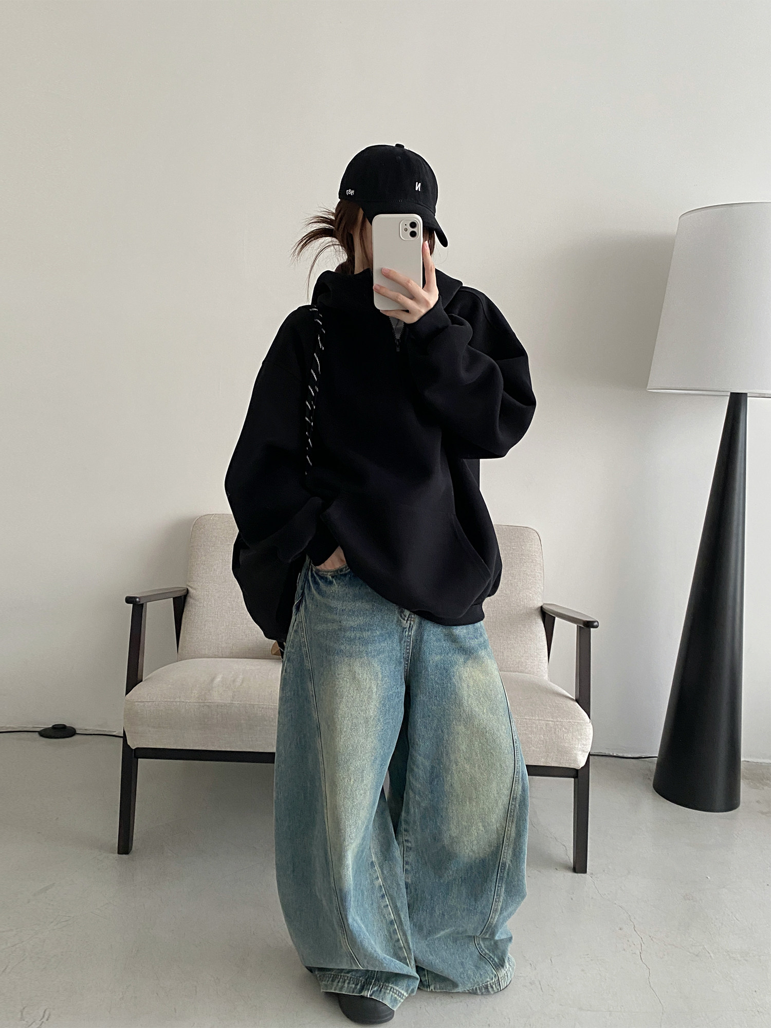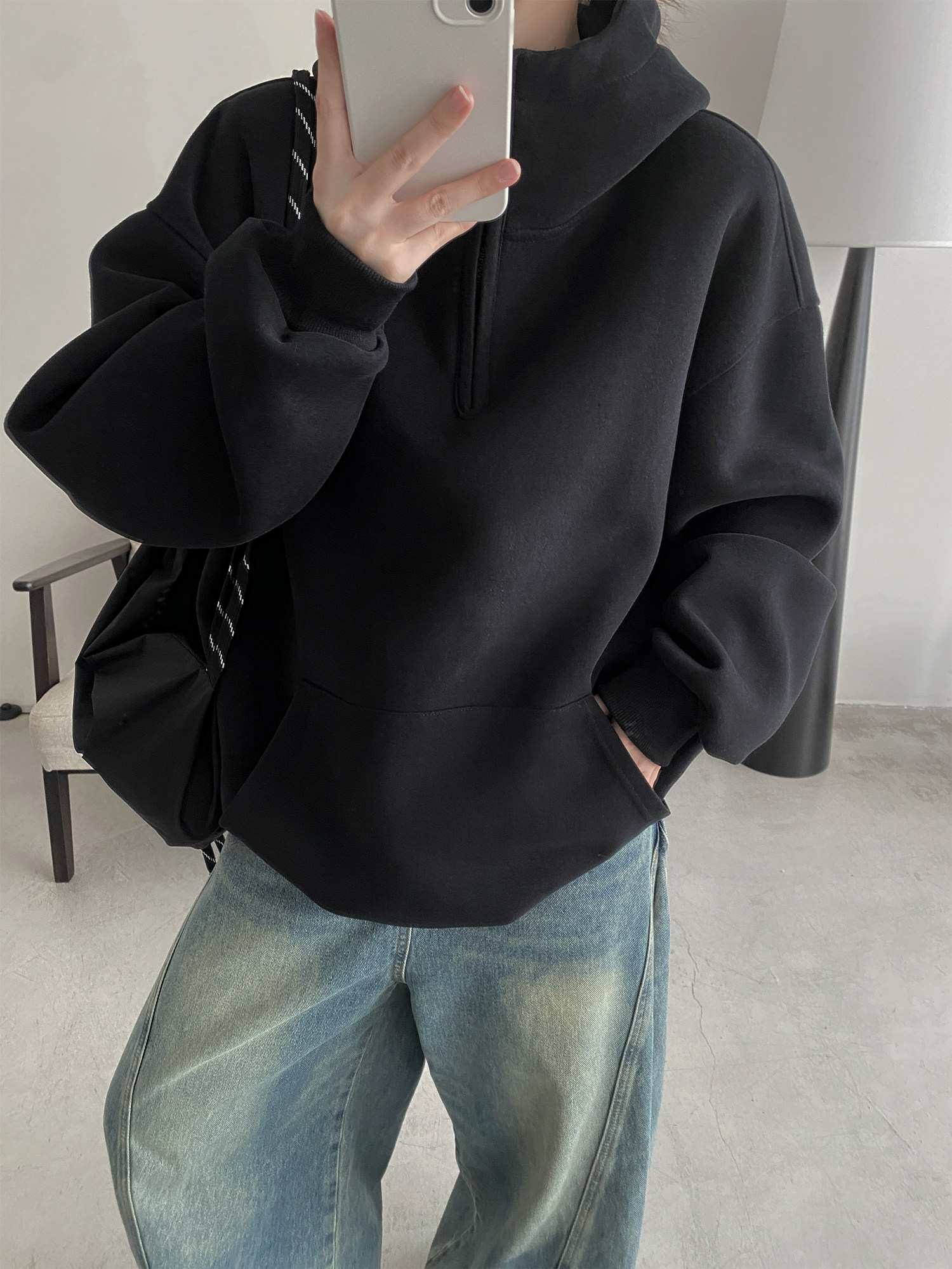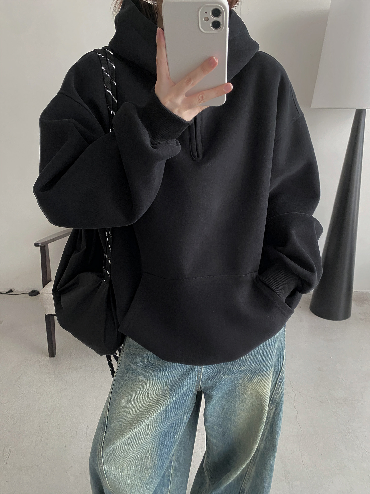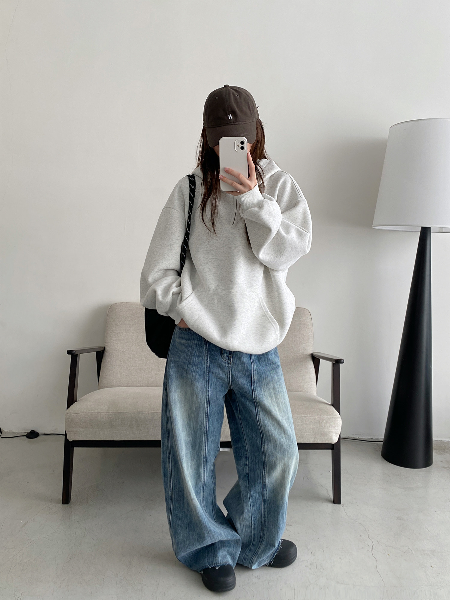 【商品名】【トップス】アメカジ風ホワイトパーカー♡春秋にぴったりなオーバーサイズスウェット【FCシリーズ】【15~20日内発送】