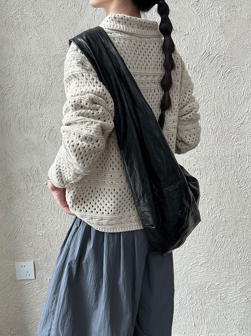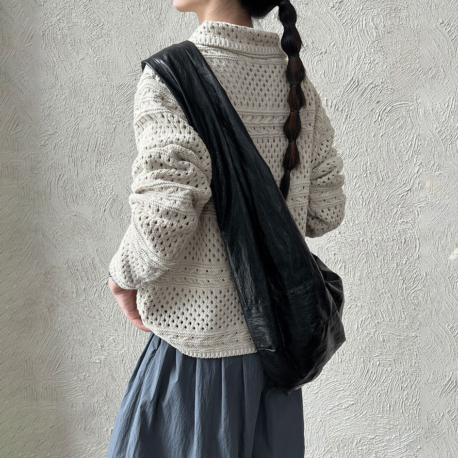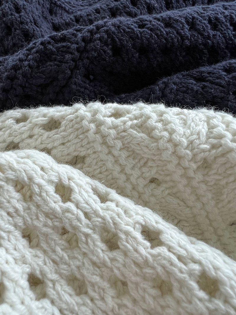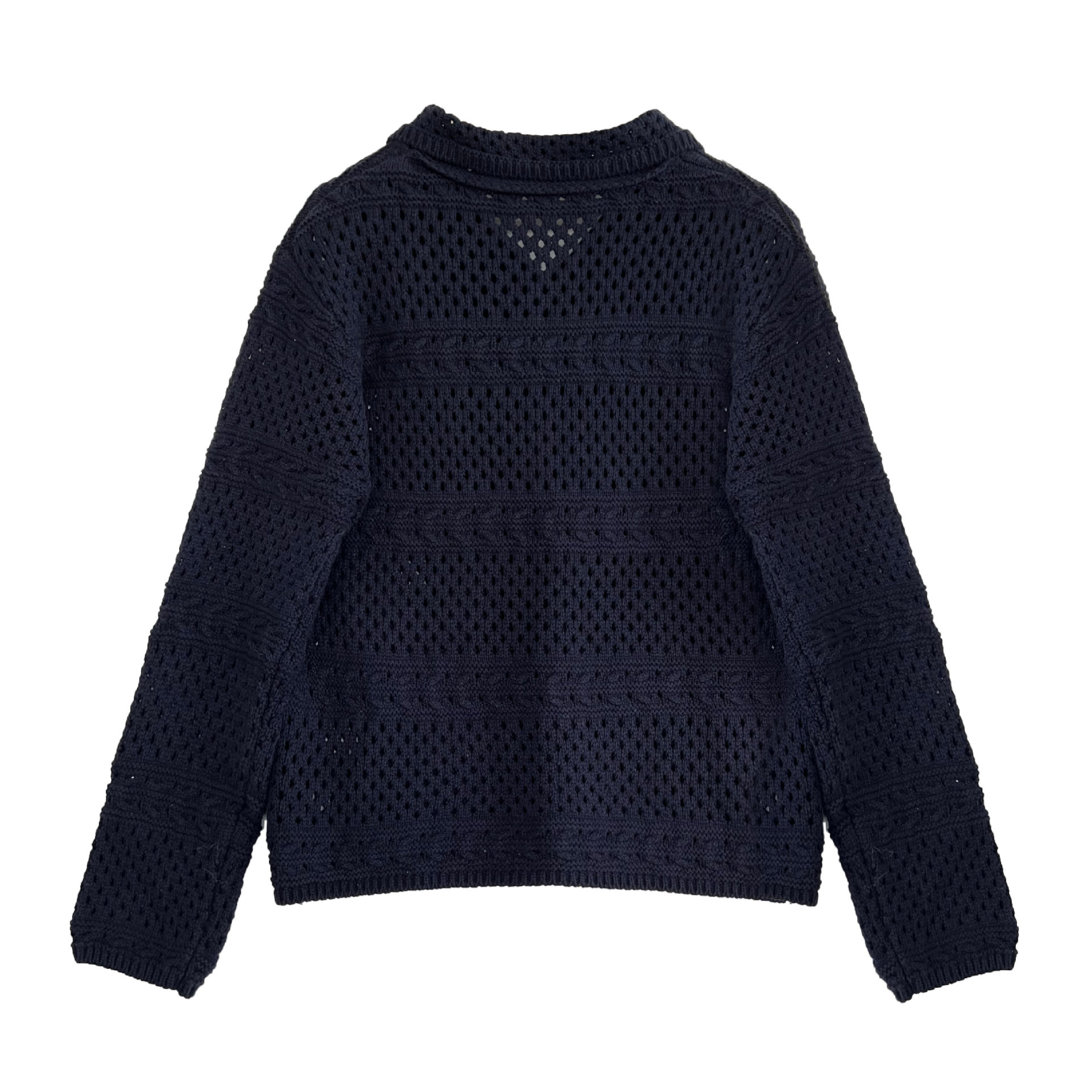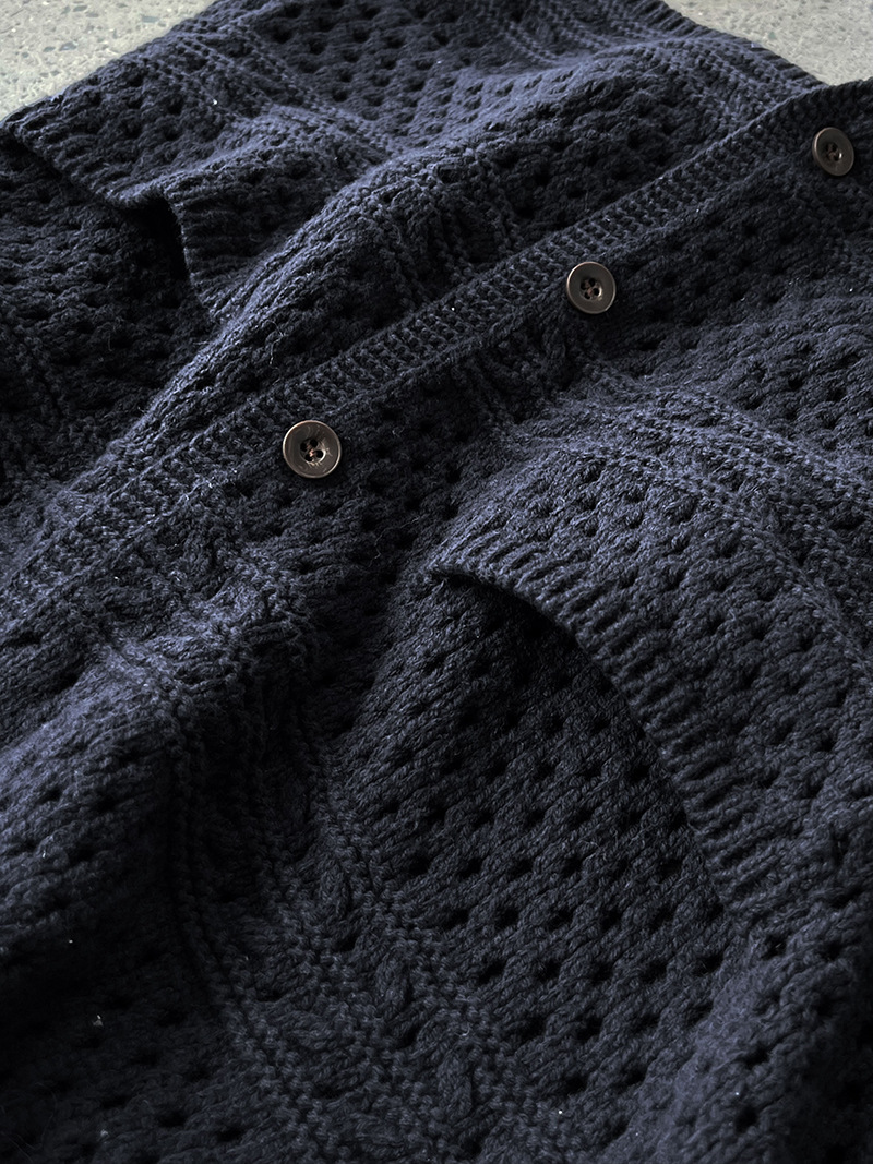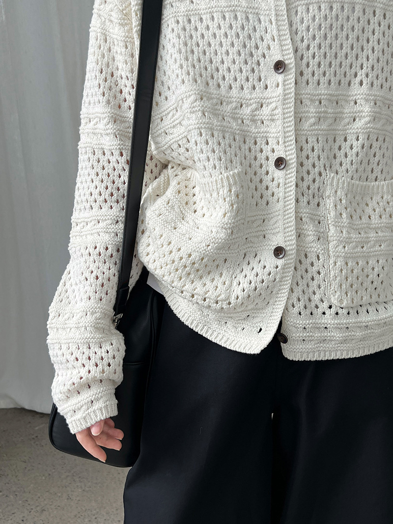 【アウター】レトロクロシェ風透かし編みニットカーディガン|折り襟×長袖の大人可愛い【JZシリーズ】