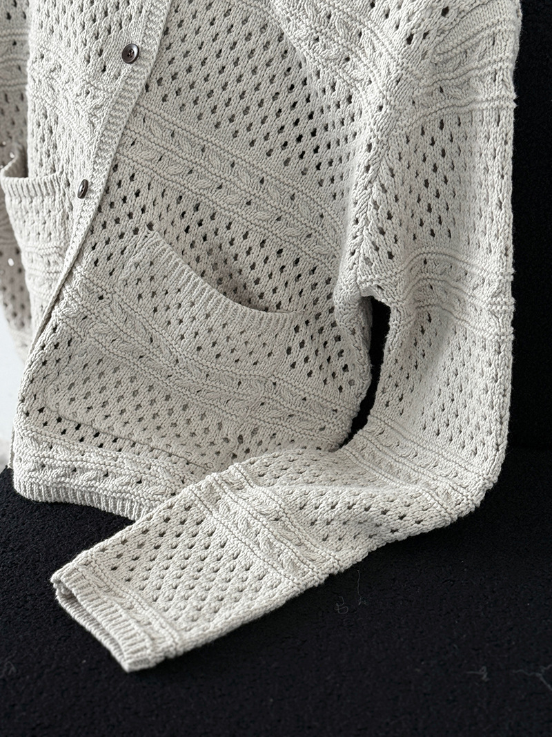 【商品名】【アウター】レトロクロシェ風透かし編みニットカーディガン|折り襟×長袖の大人可愛い【JZシリーズ】