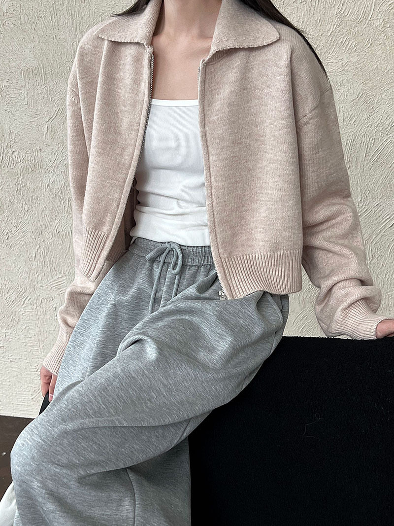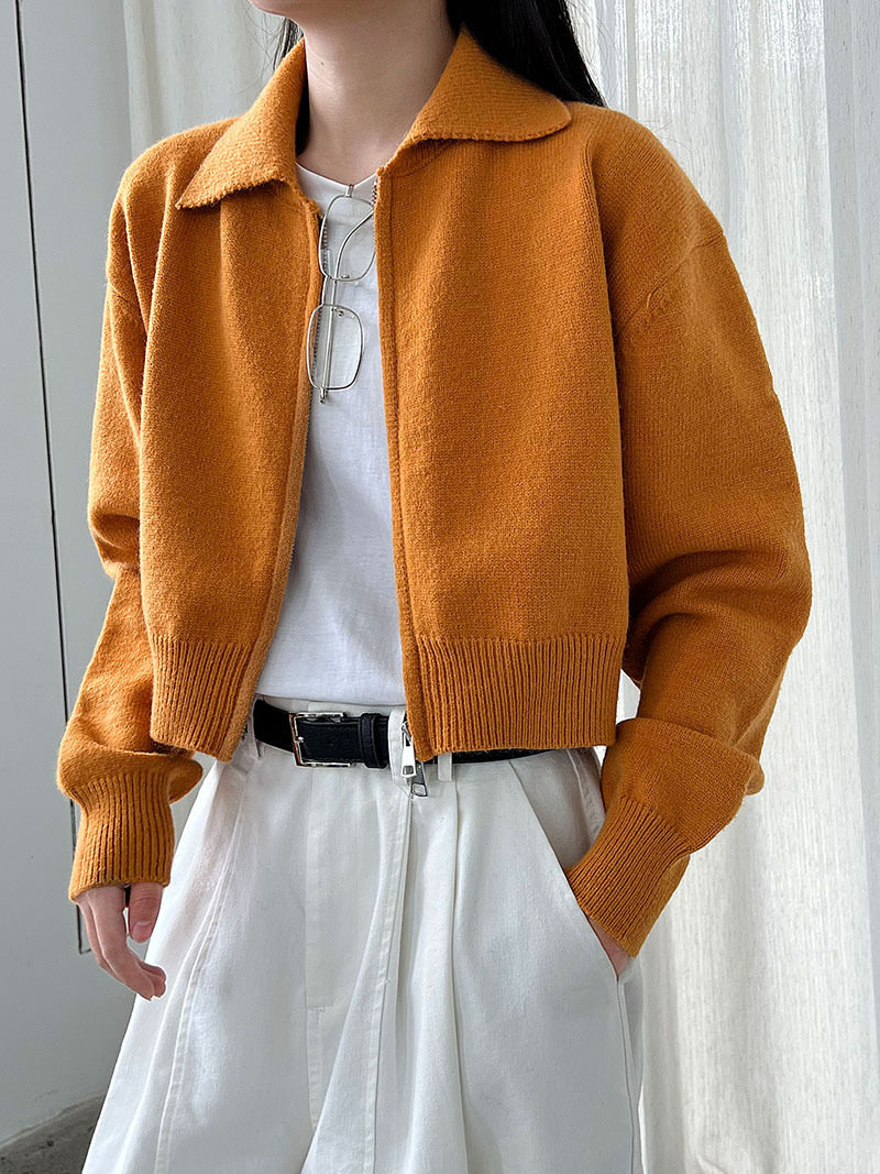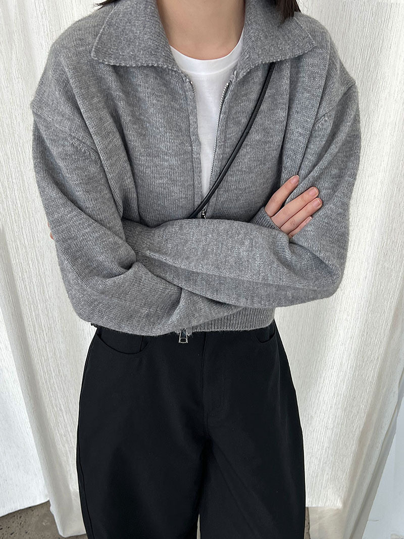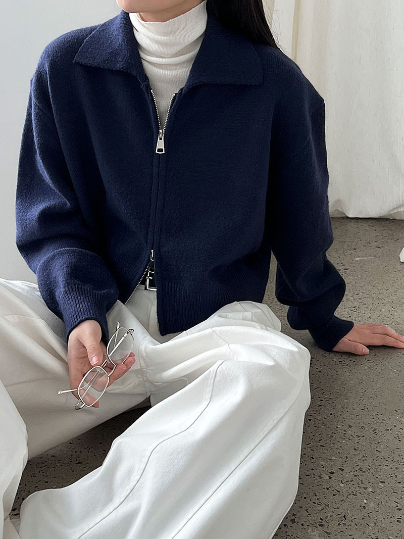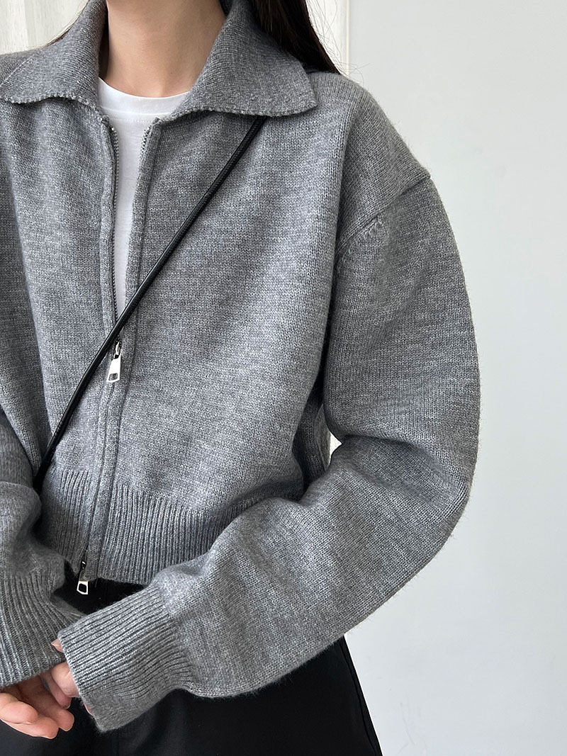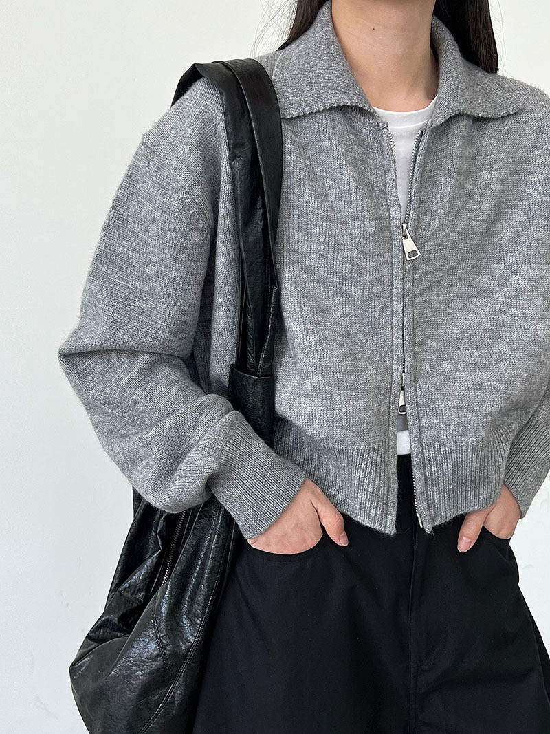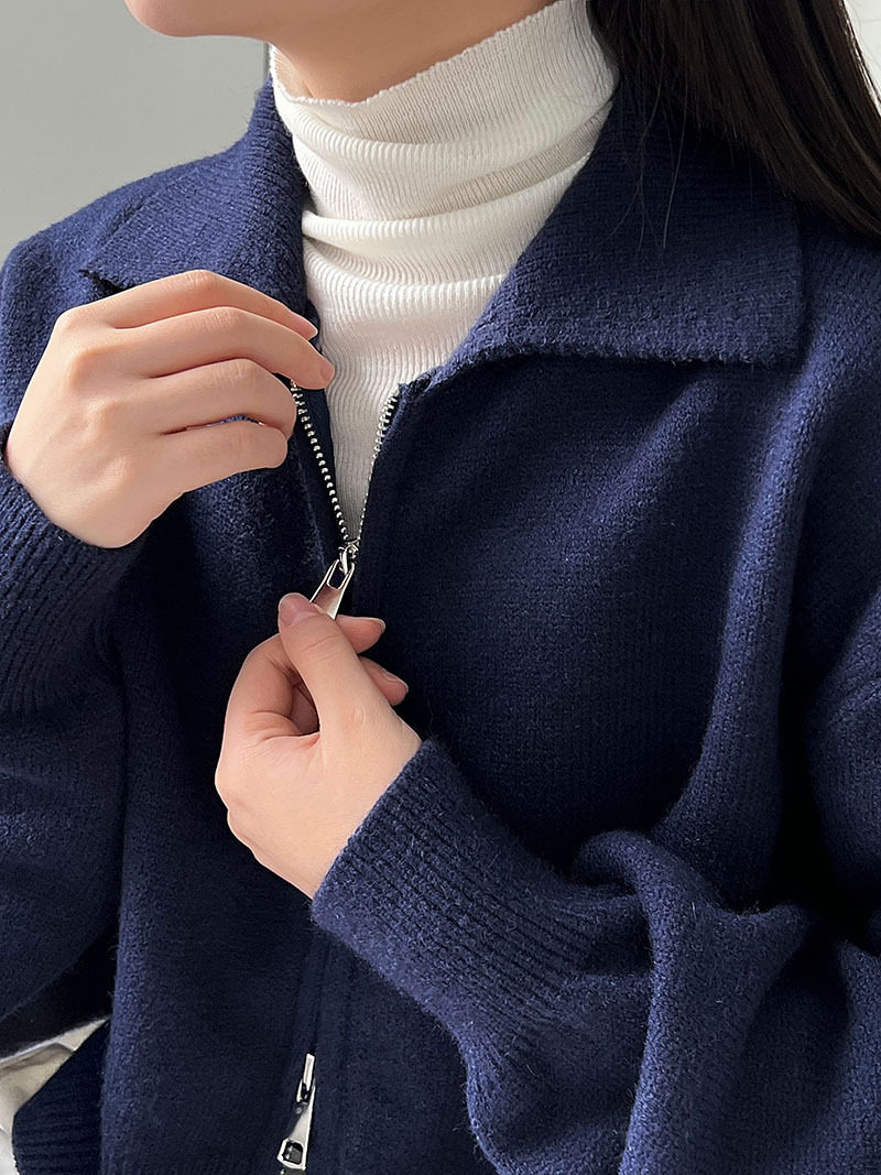 【トップス】春 秋 冬 ショート丈 ダブルジップ ニットカーディガン ポロカラー セーター 【JZシリーズ】