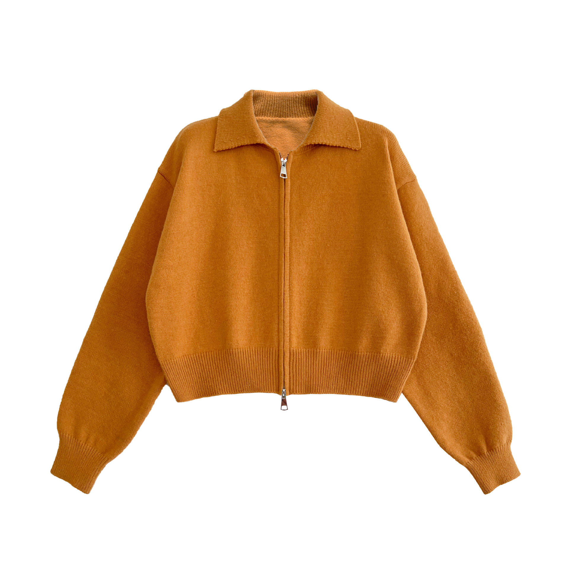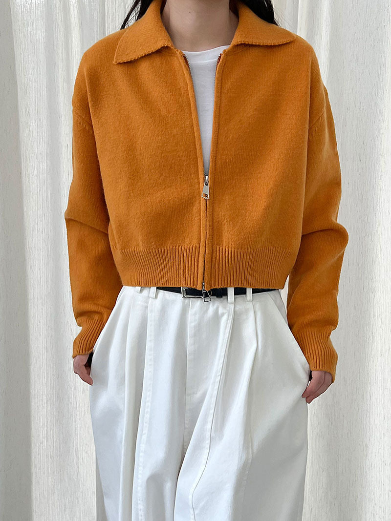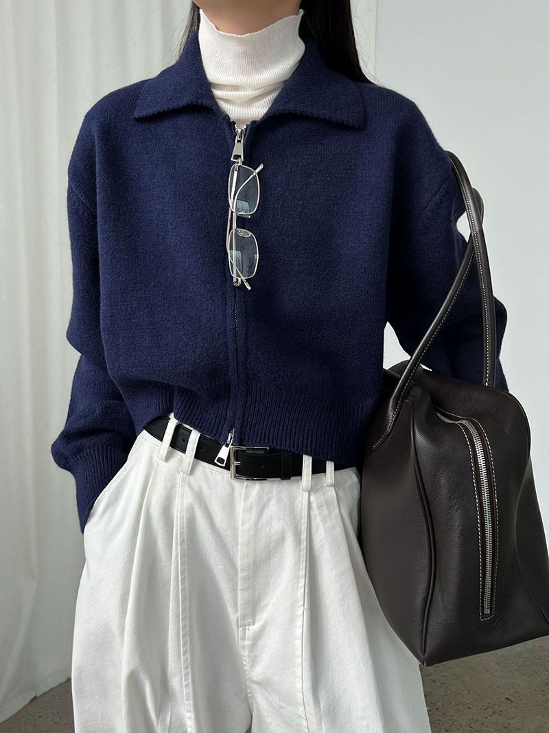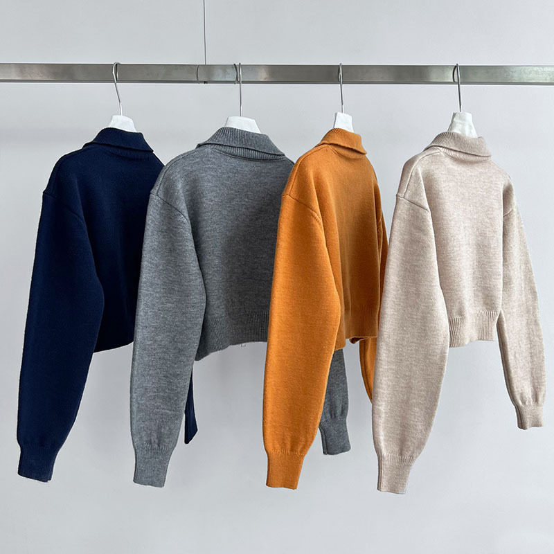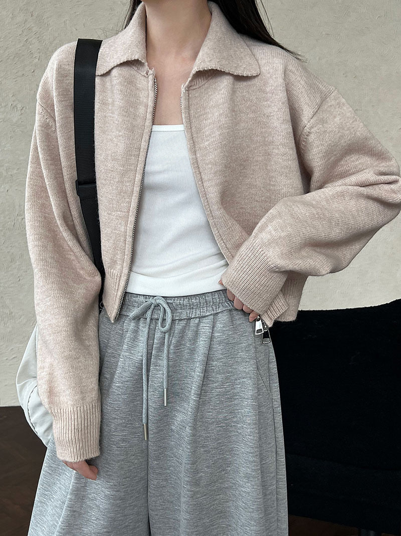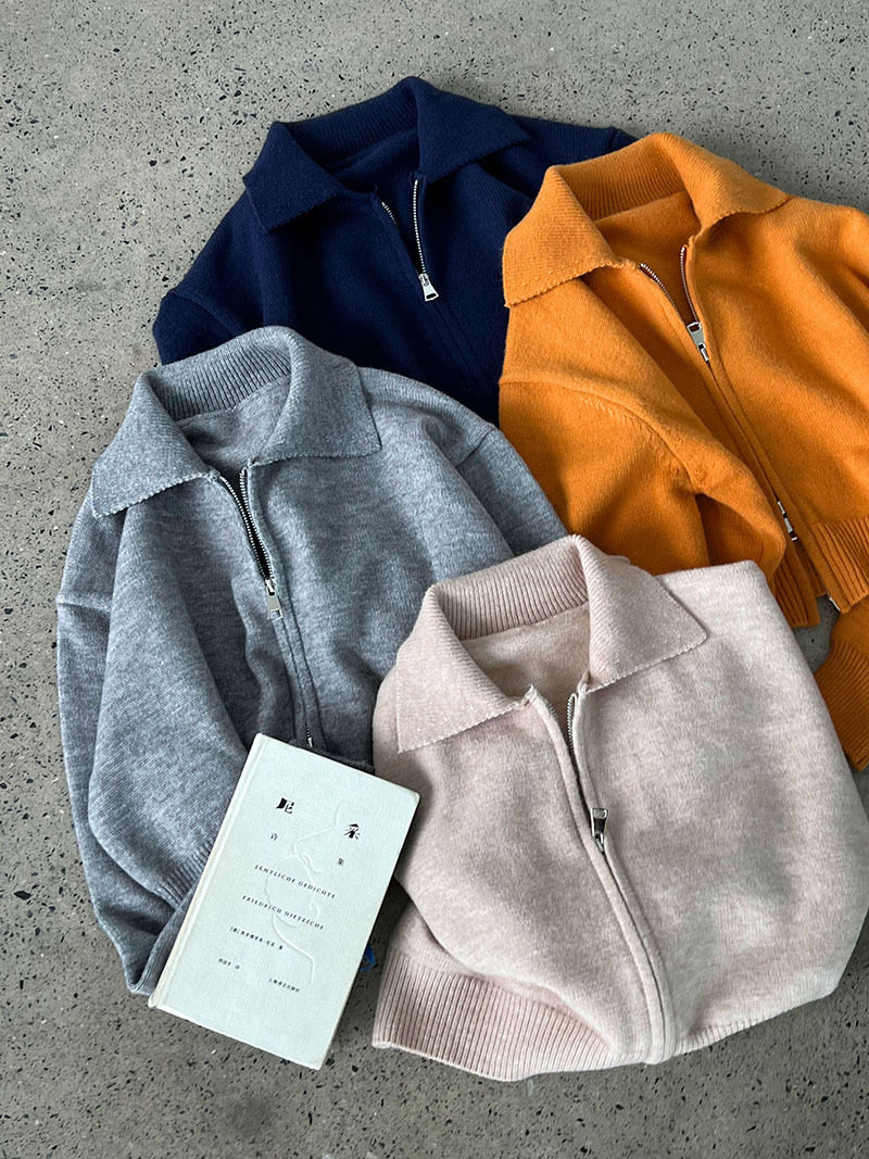 【トップス】春 秋 冬 ショート丈 ダブルジップ ニットカーディガン ポロカラー セーター 【JZシリーズ】