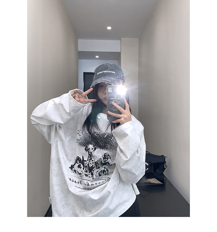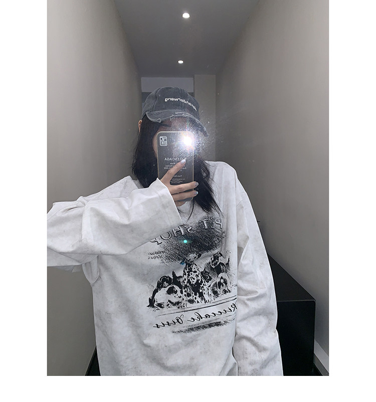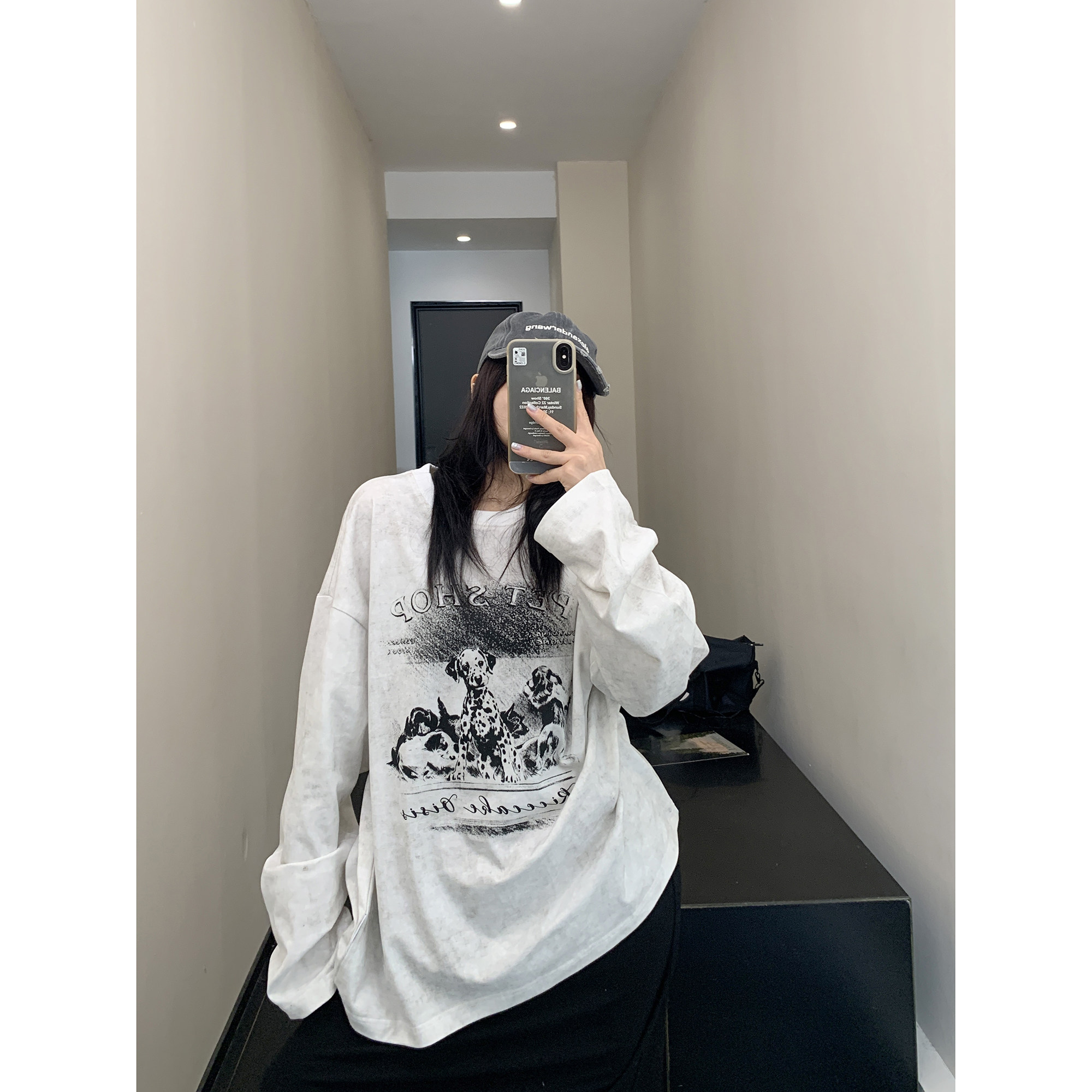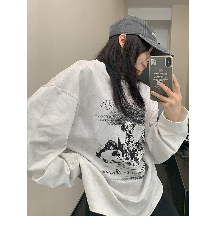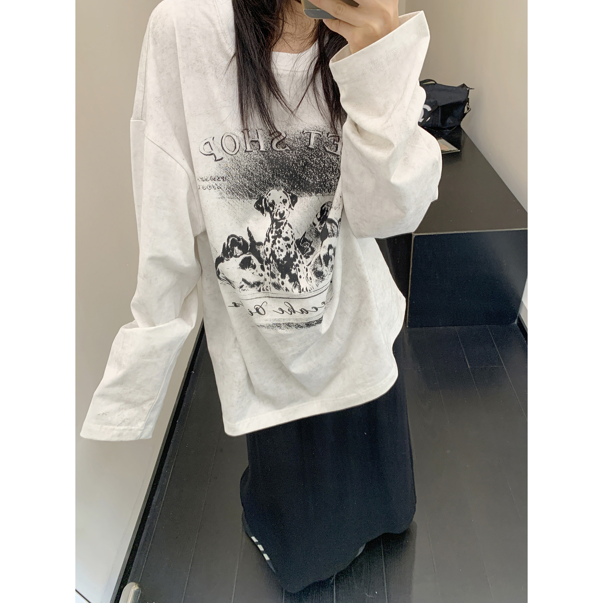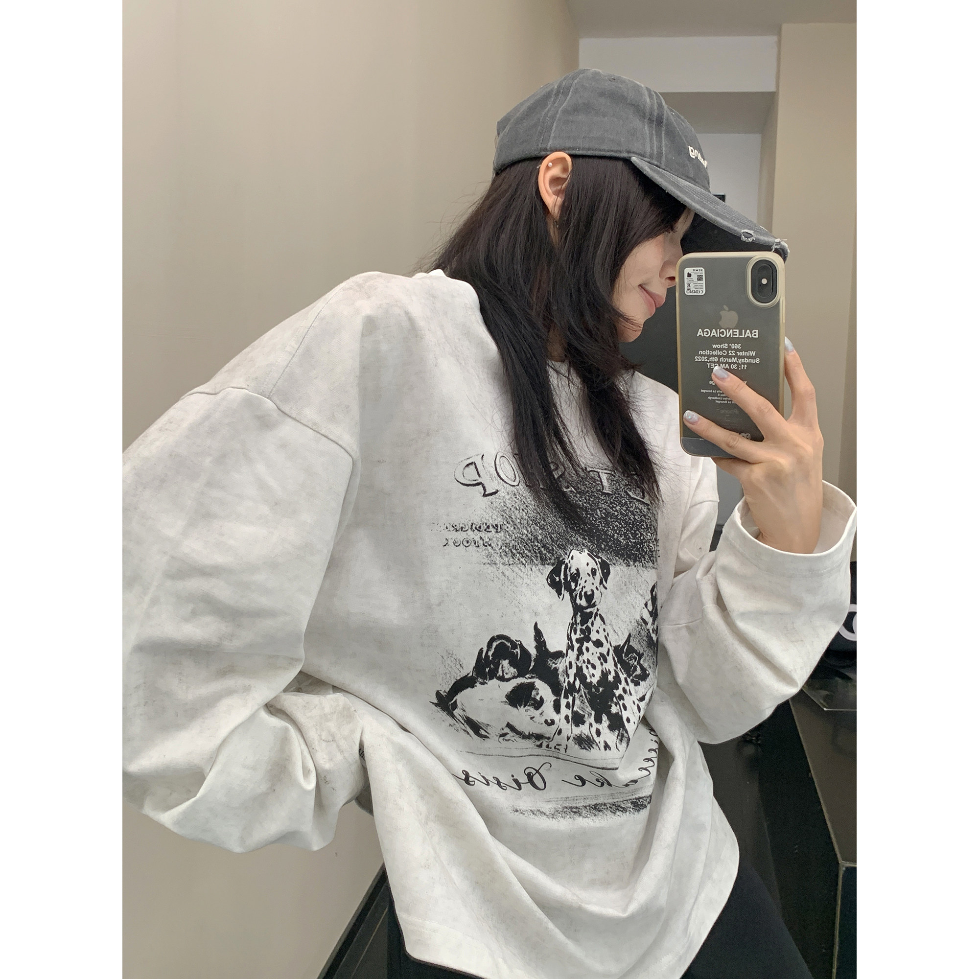 【トップス】ヴィンテージ調 小犬モチーフ フードパーカー 春秋 男女兼用 ゆったり カジュアル【FCシリーズ】