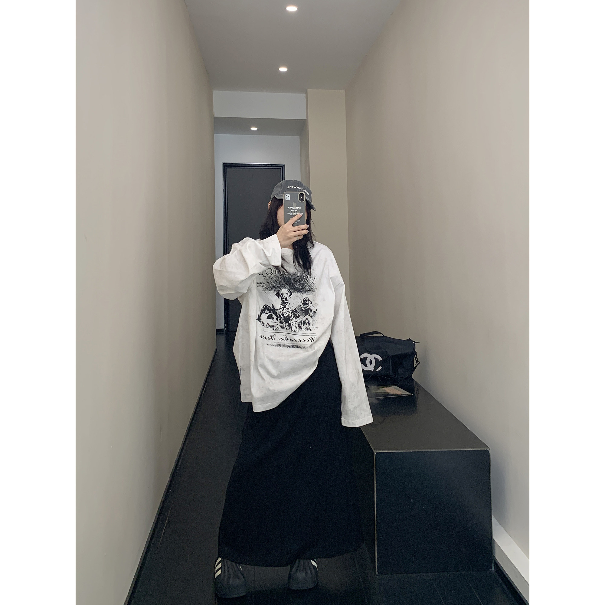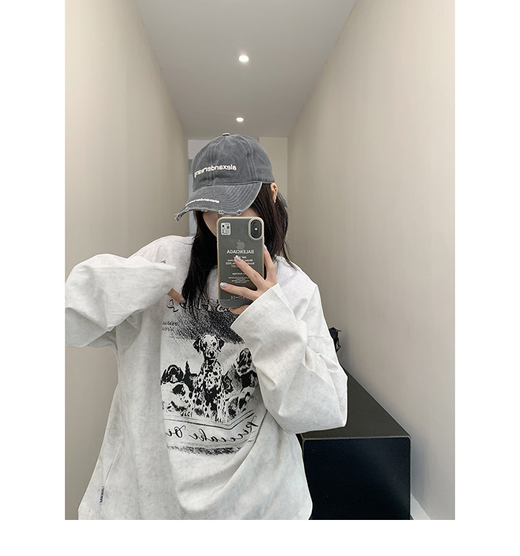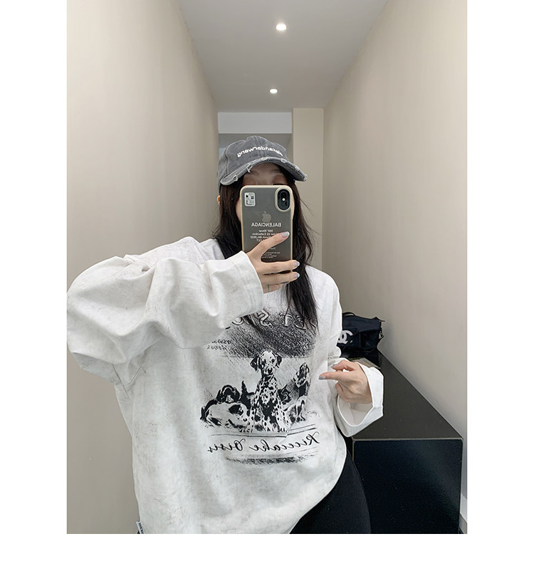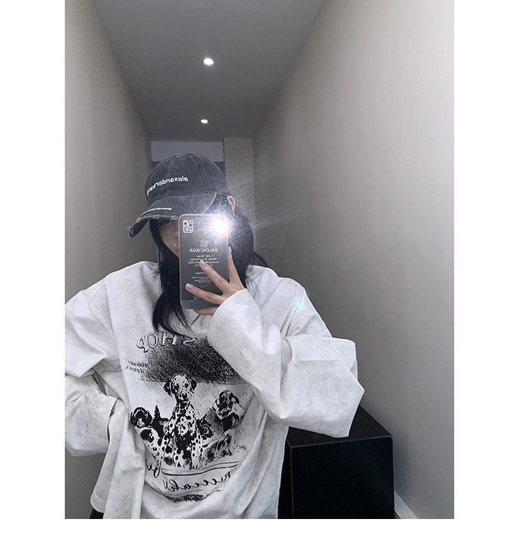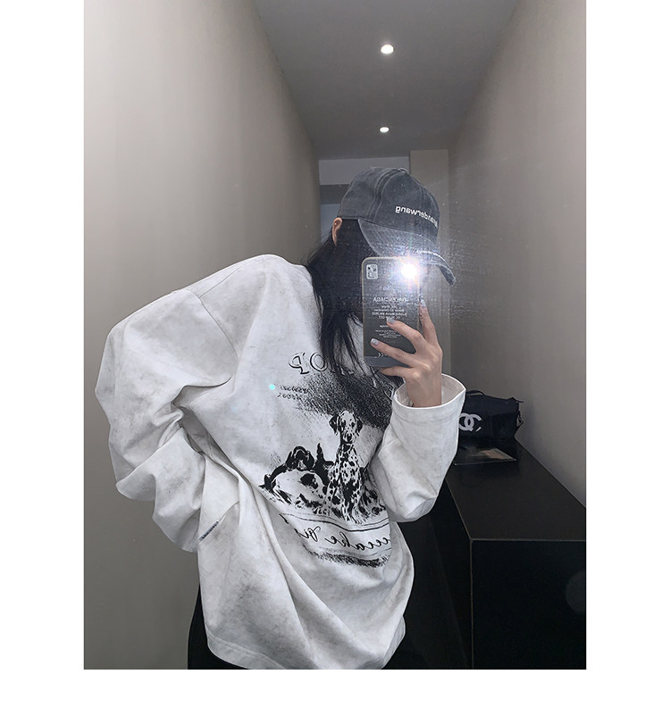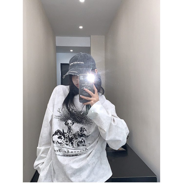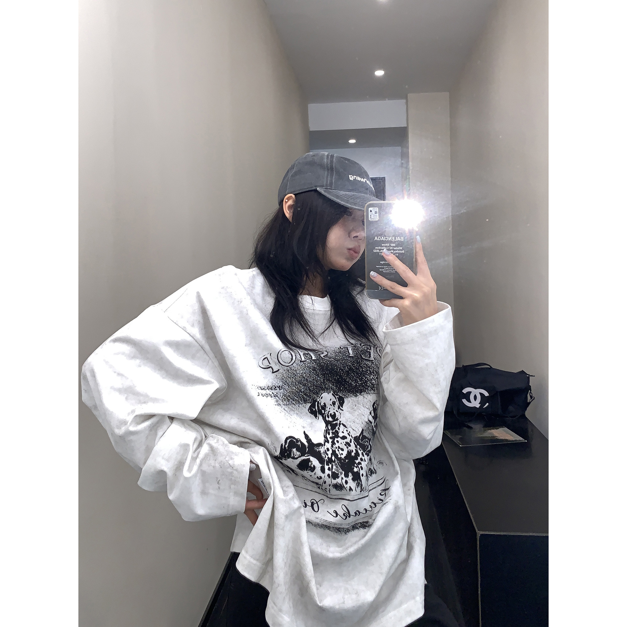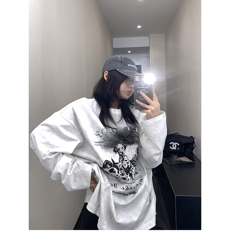 【トップス】ヴィンテージ調 小犬モチーフ フードパーカー 春秋 男女兼用 ゆったり カジュアル【FCシリーズ】