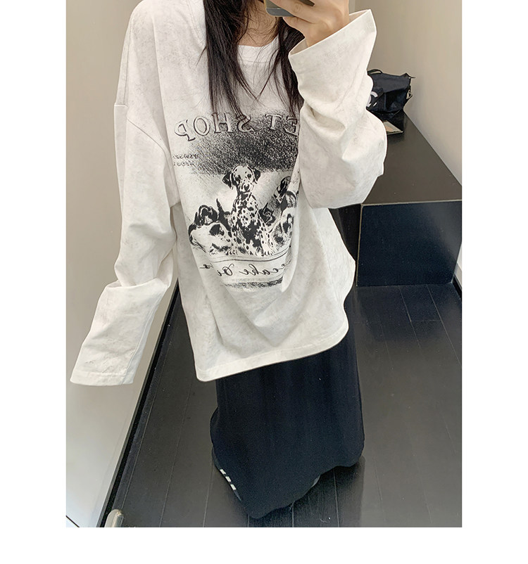 【トップス】レトロ デザイン 小犬柄 クルーネック ニット レディース ゆったり ルーズ 着回し セーター【FCシリーズ】