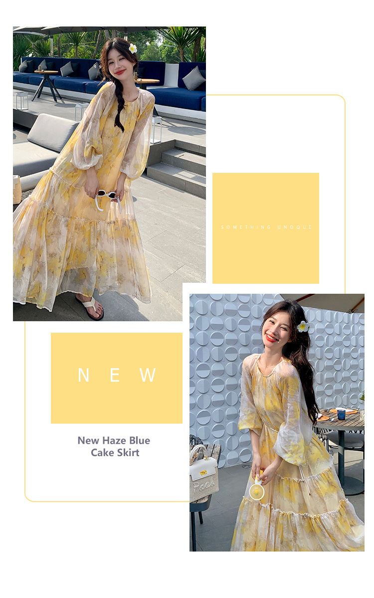 【商品名】【ワンピース】花柄 長袖ワンピース レディース 高級感 細見え リゾート風 フェミニン ロングビーチドレス【SHシリーズ】