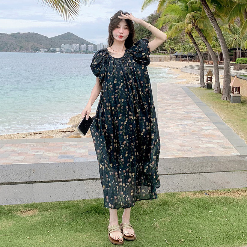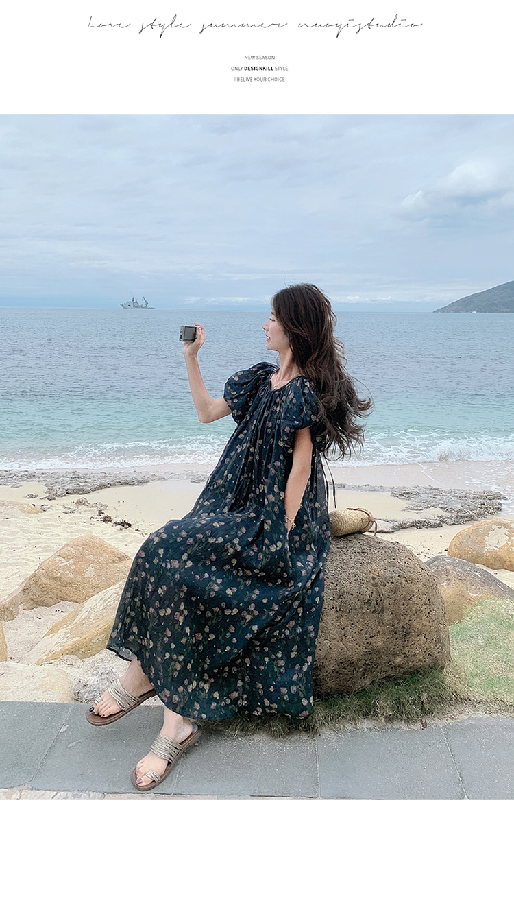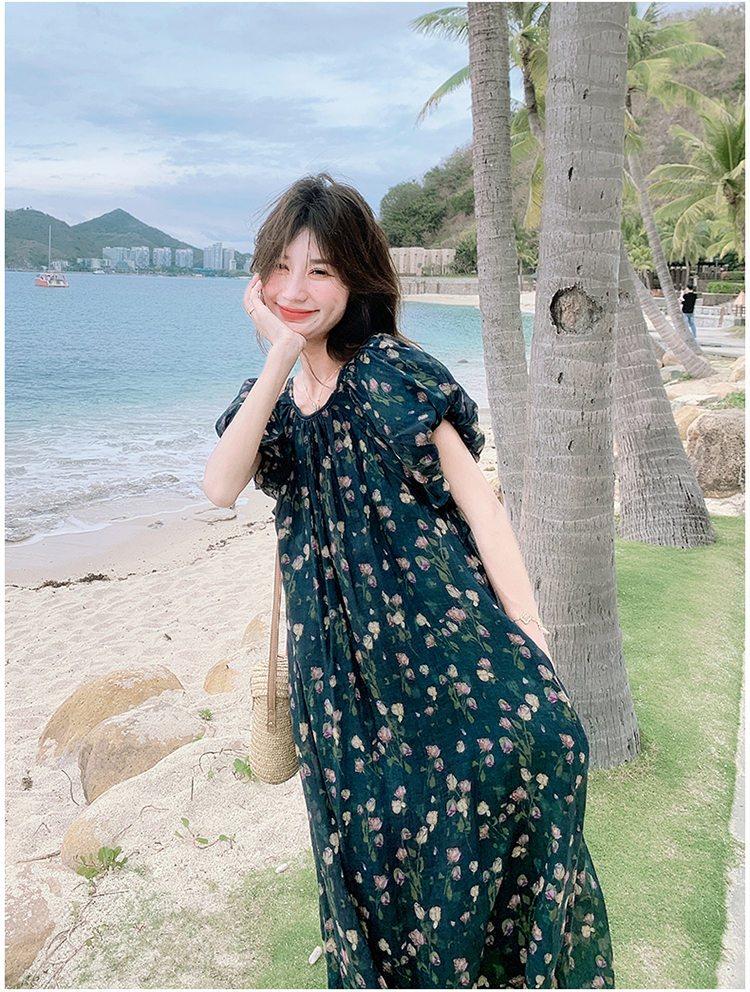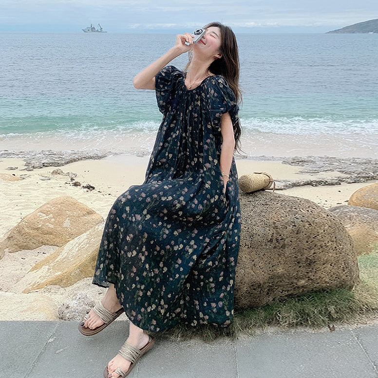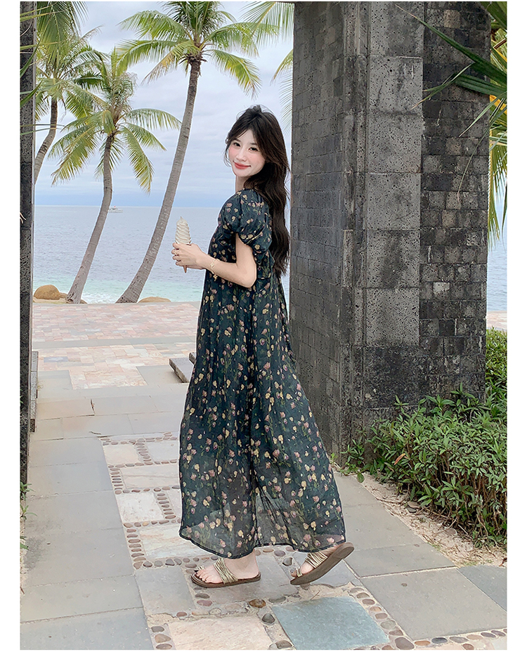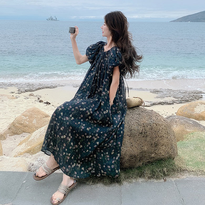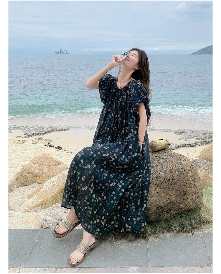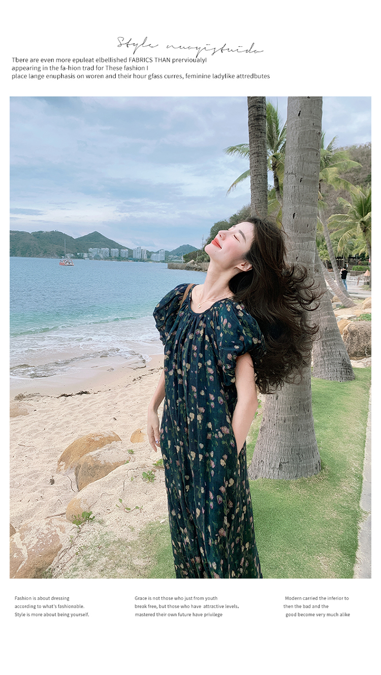 【ワンピース】ビーチリゾート風 リラックス感 花柄 半袖ワンピース レディース 個性的で美しいロングドレス【SHシリーズ】