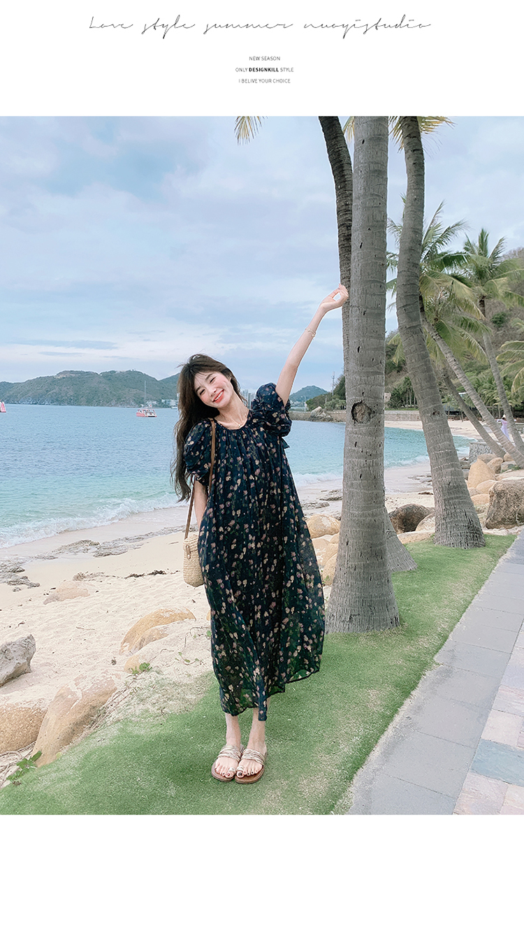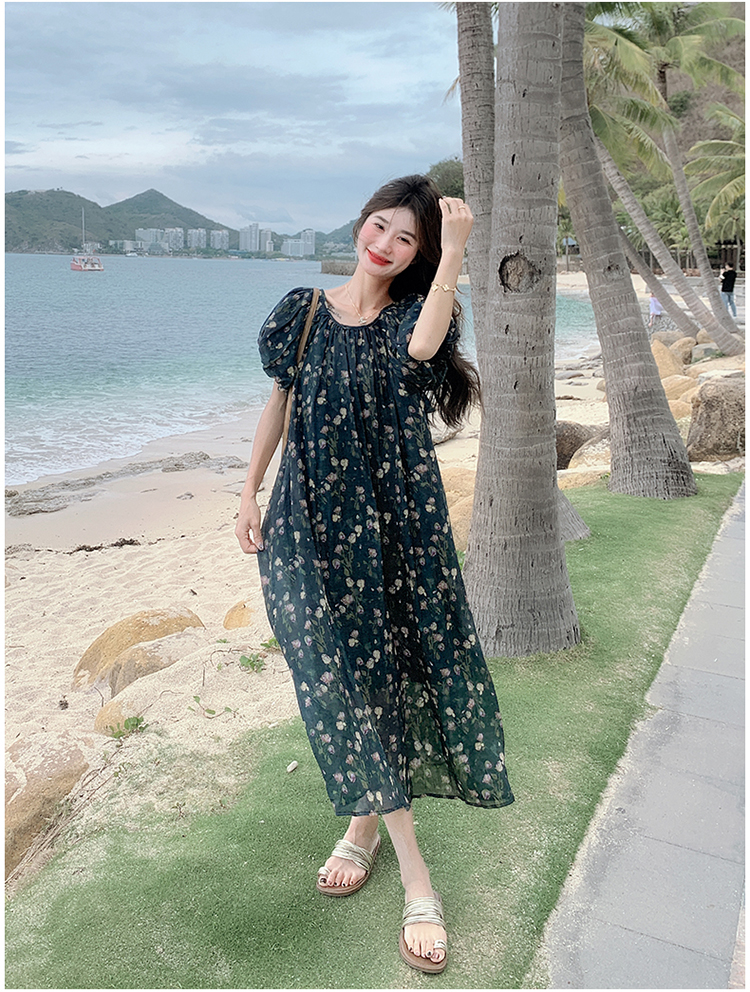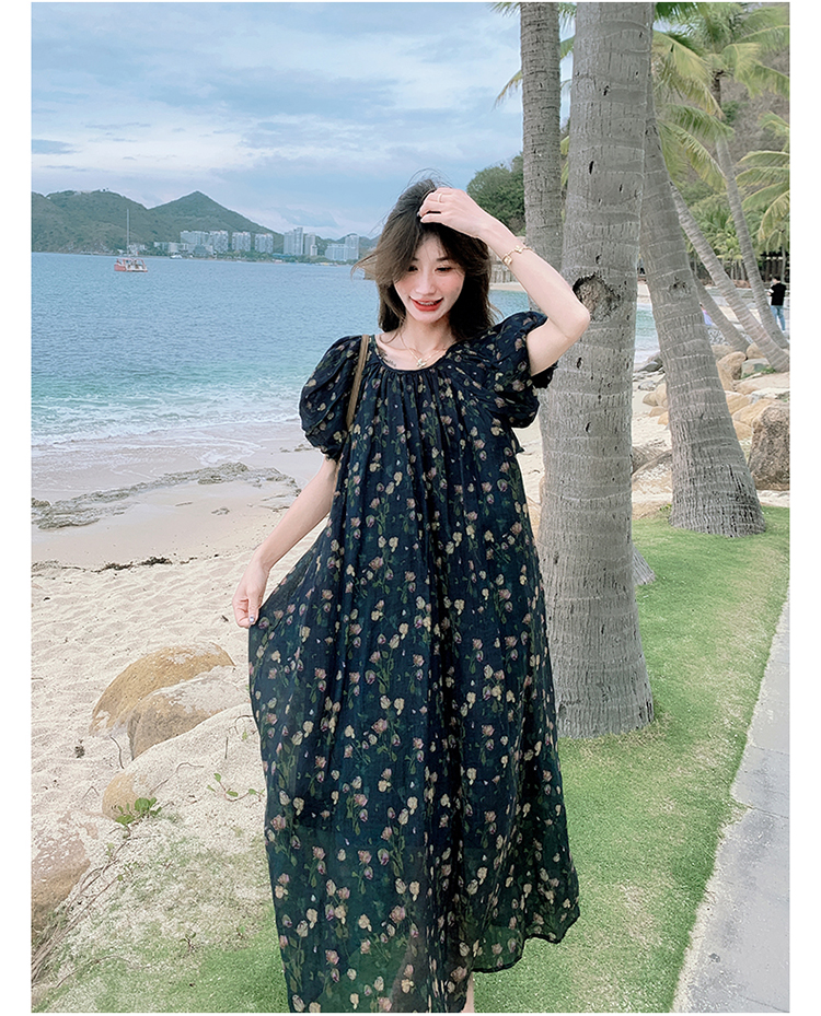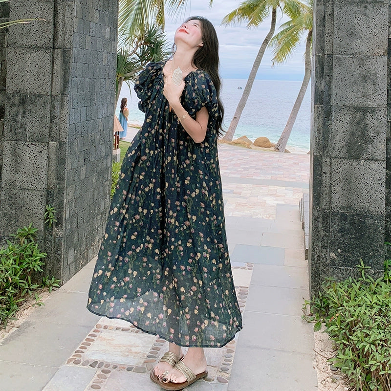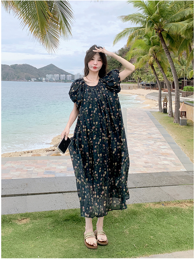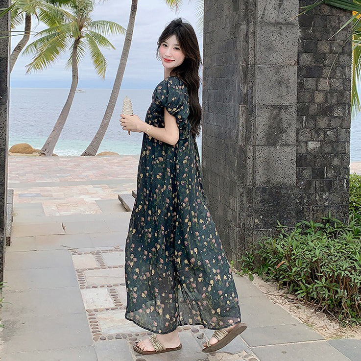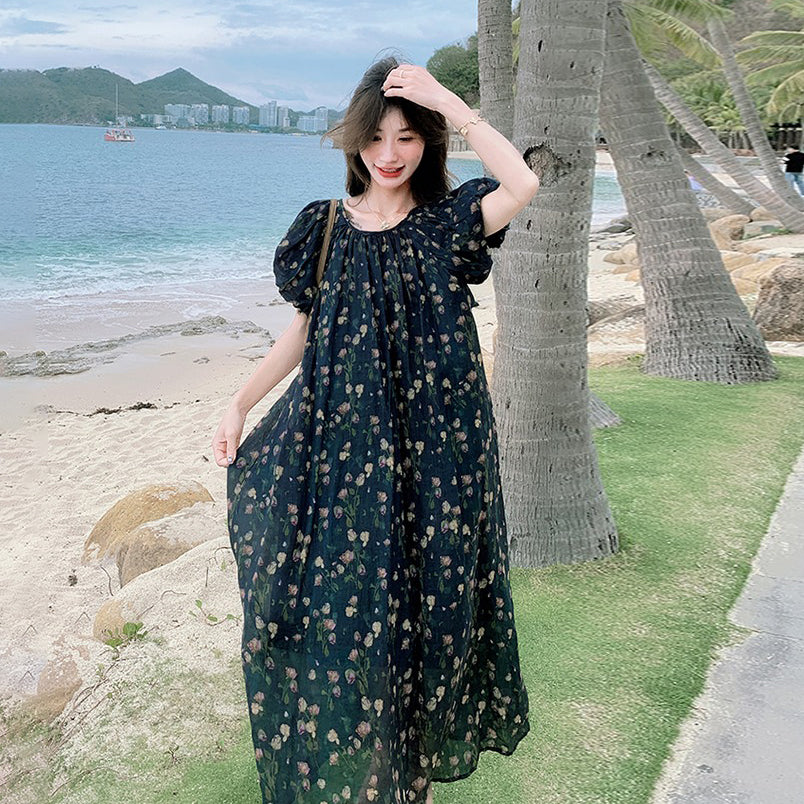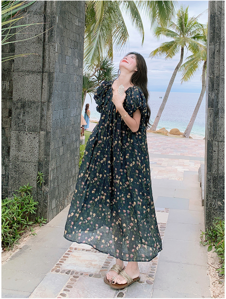 【ワンピース】ビーチリゾート風 リラックス感 花柄 半袖ワンピース レディース 個性的で美しいロングドレス【SHシリーズ】