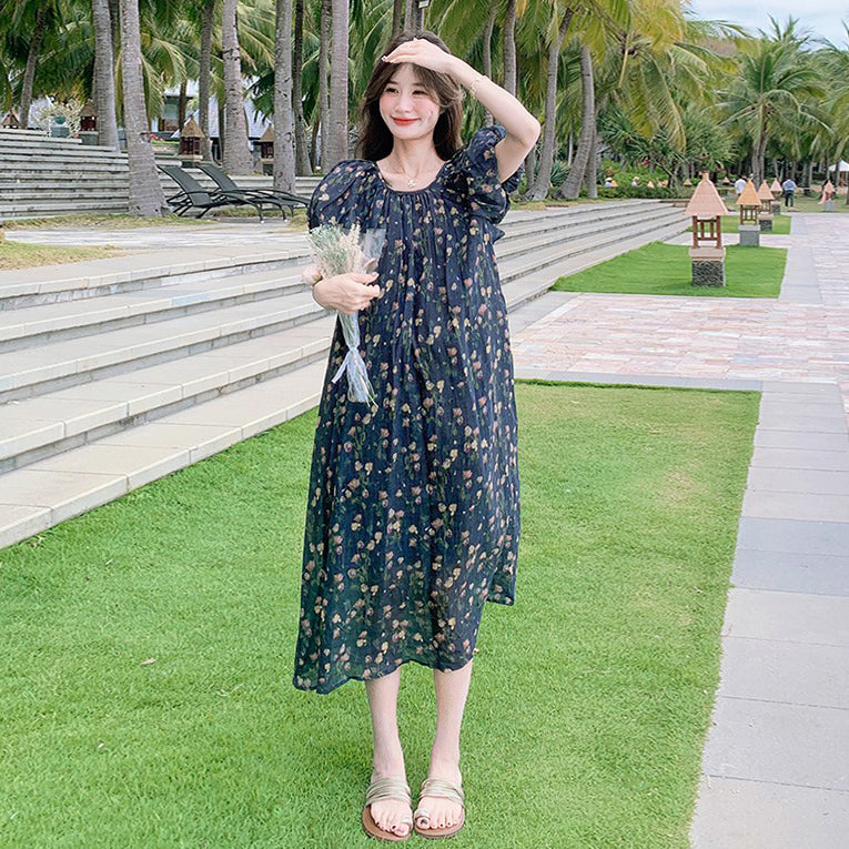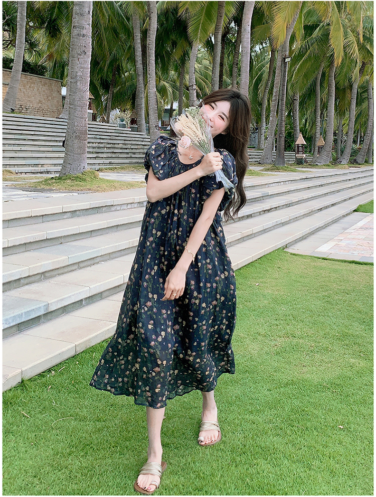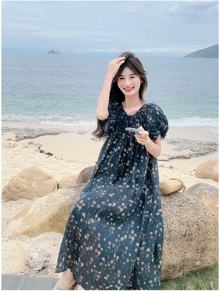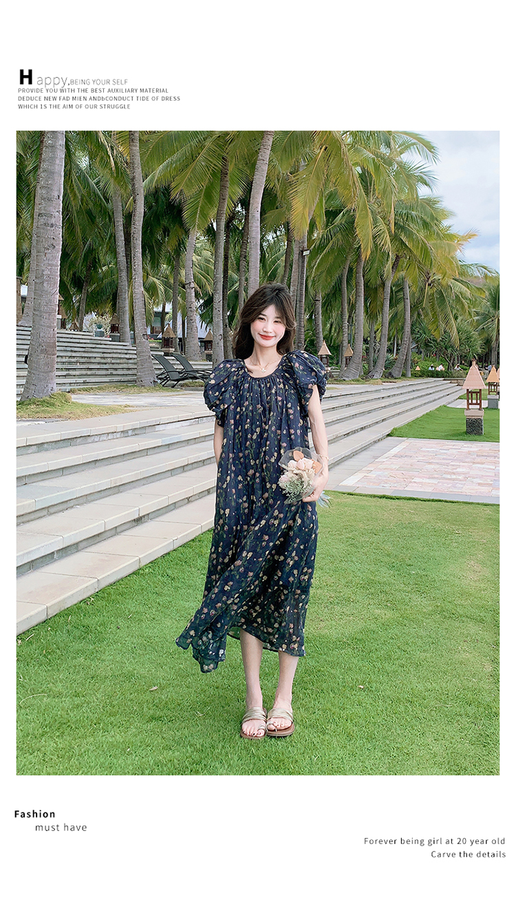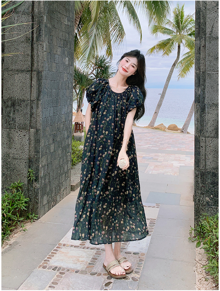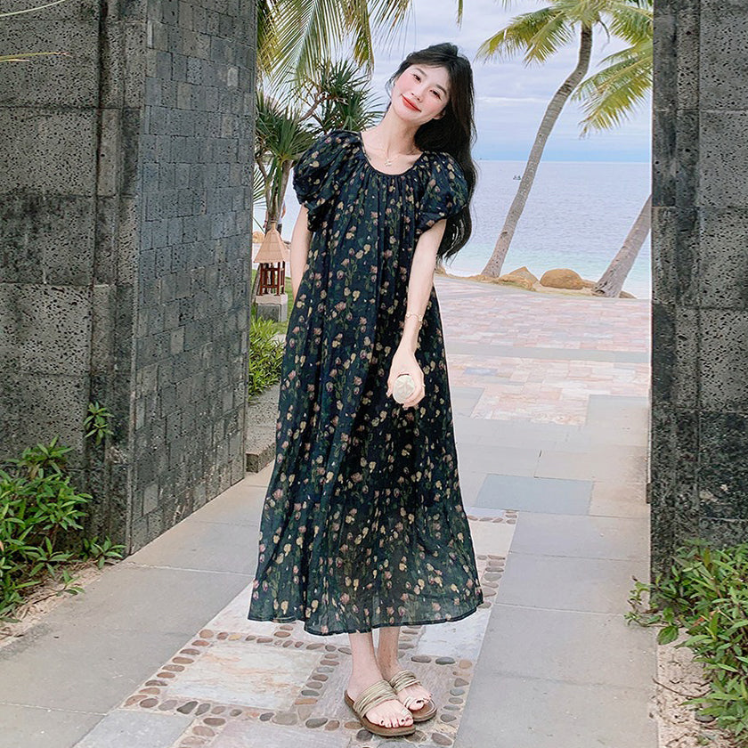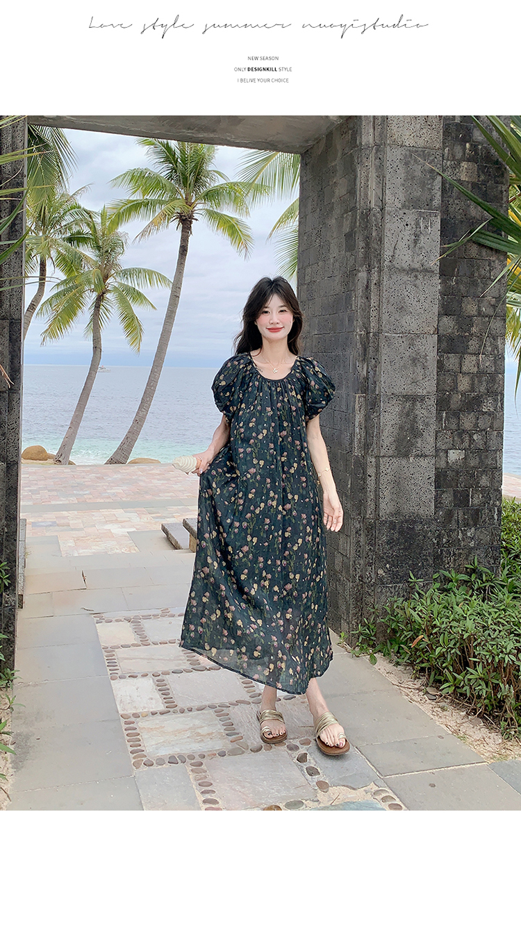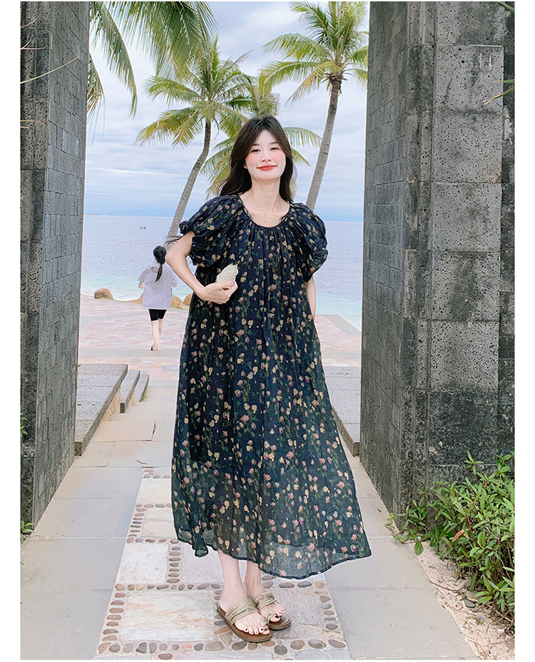 【ワンピース】ビーチリゾート風 リラックス感 花柄 半袖ワンピース レディース 個性的で美しいロングドレス【SHシリーズ】