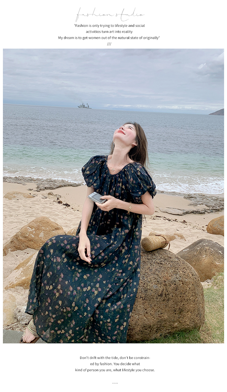 【商品名】【ワンピース】ビーチリゾート風 リラックス感 花柄 半袖ワンピース レディース 個性的で美しいロングドレス【SHシリーズ】