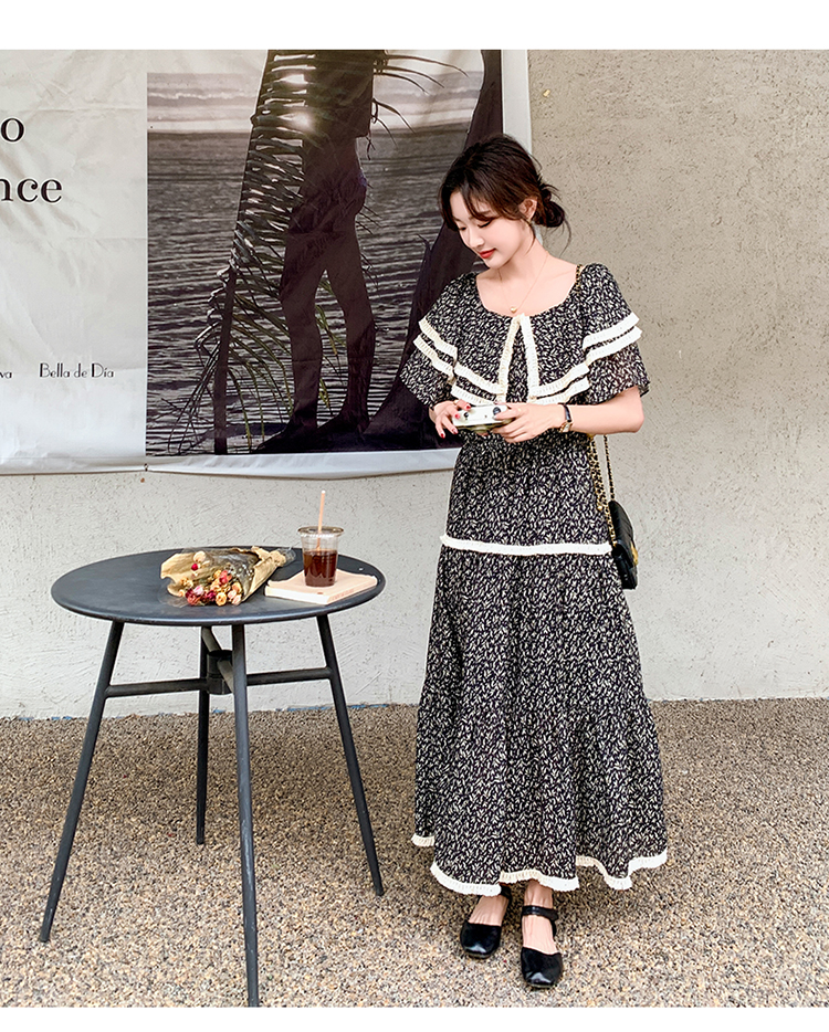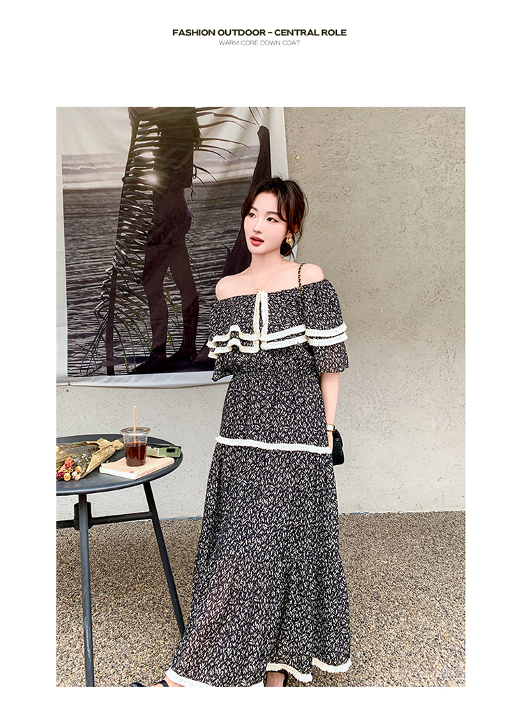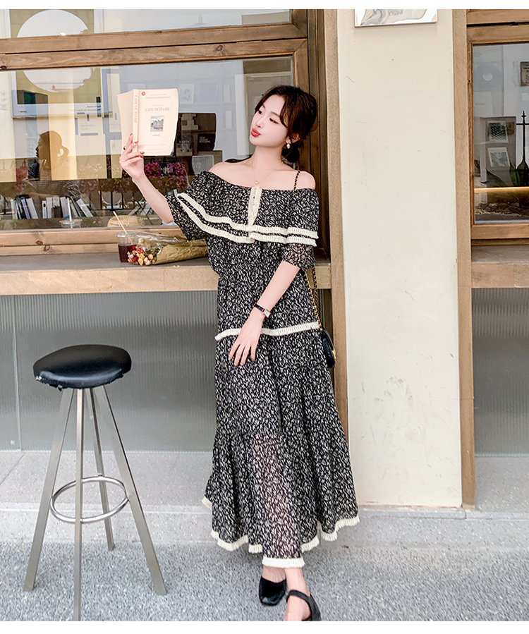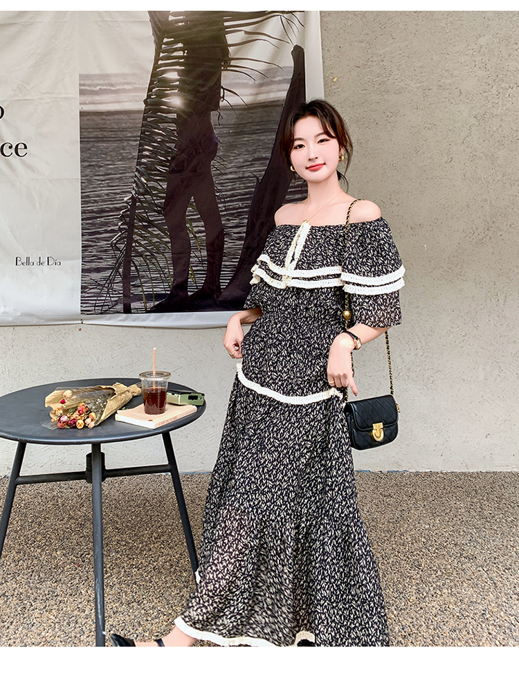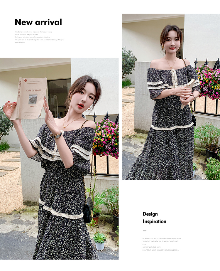 【ワンピース】オフショル花柄シフォン 半袖ワンピース レディース 夏 個性的で美しい エレガント 高級感 リゾート風ロングドレス【SHシリーズ】