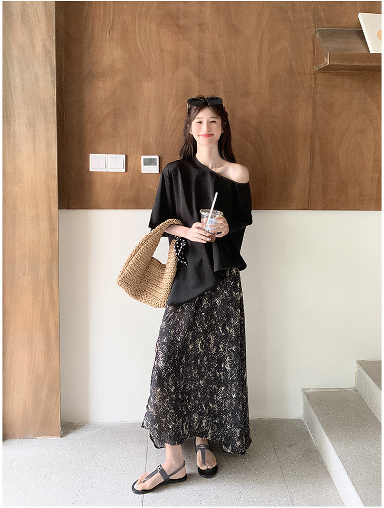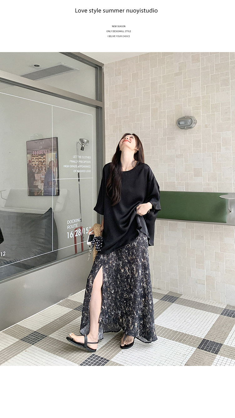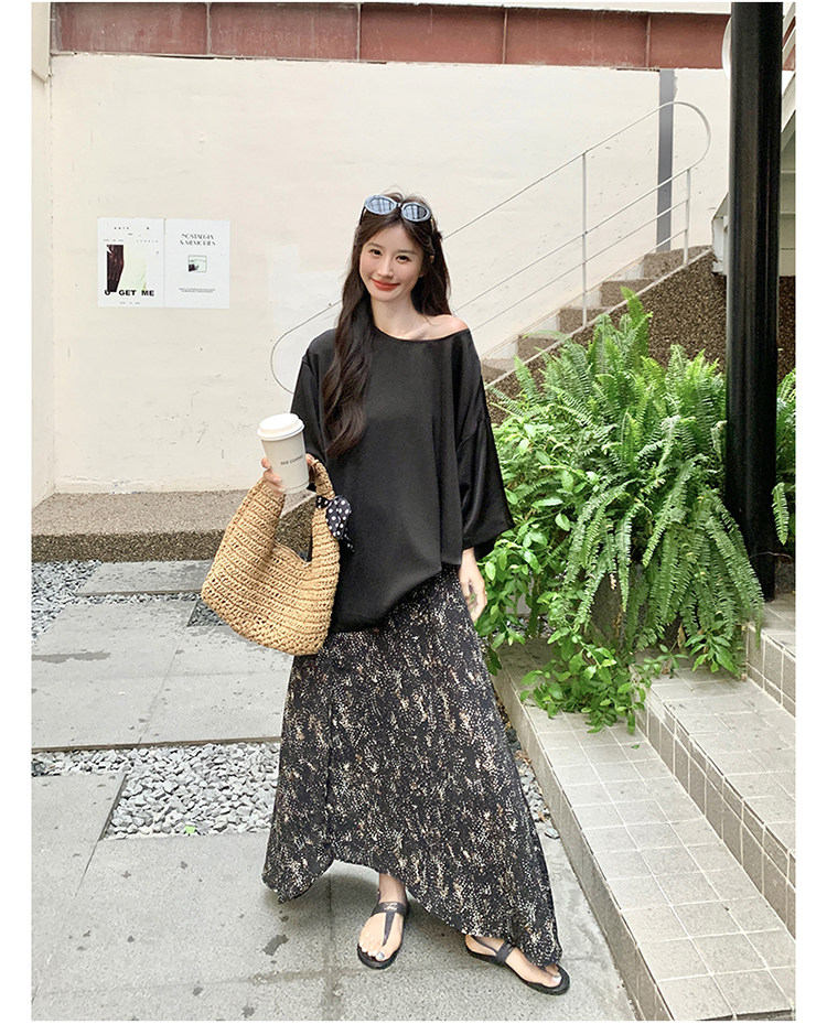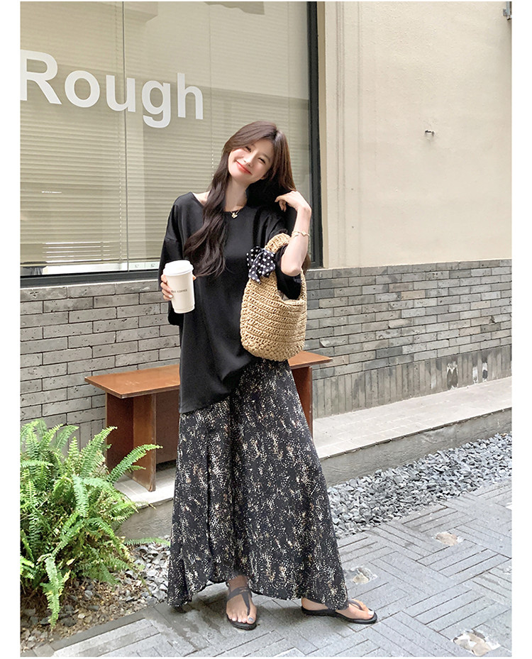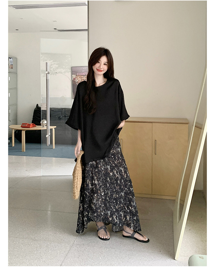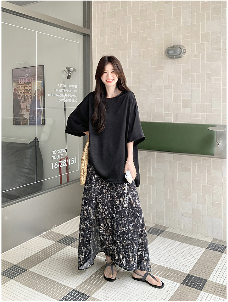 2点セット!【セットアップ】韓国風 ルーズ リラックス感 Tシャツ + 花柄スカート 上下セット レディース 夏 超人気 おしゃれ 旅行【SHシリーズ】