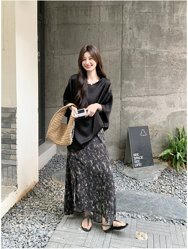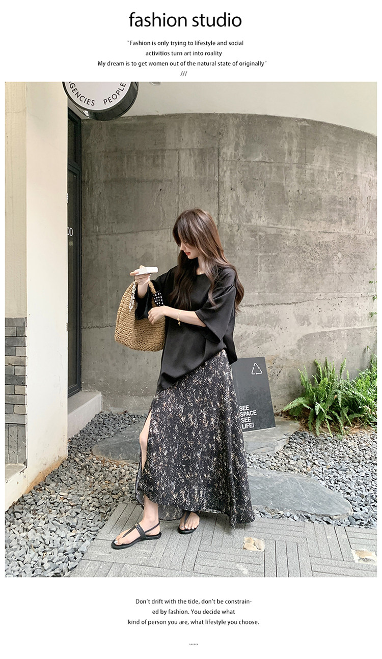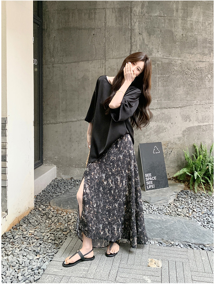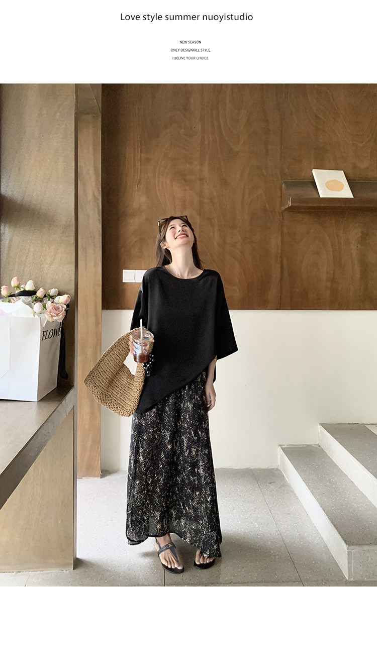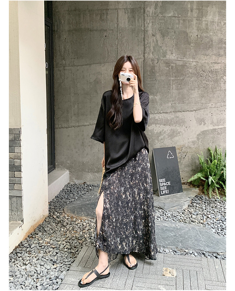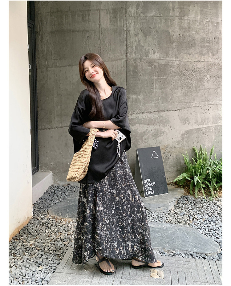 2点セット!【セットアップ】韓国風 ルーズ リラックス感 Tシャツ + 花柄スカート 上下セット レディース 夏 超人気 おしゃれ 旅行【SHシリーズ】