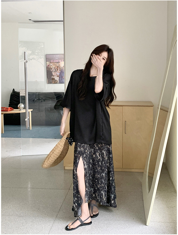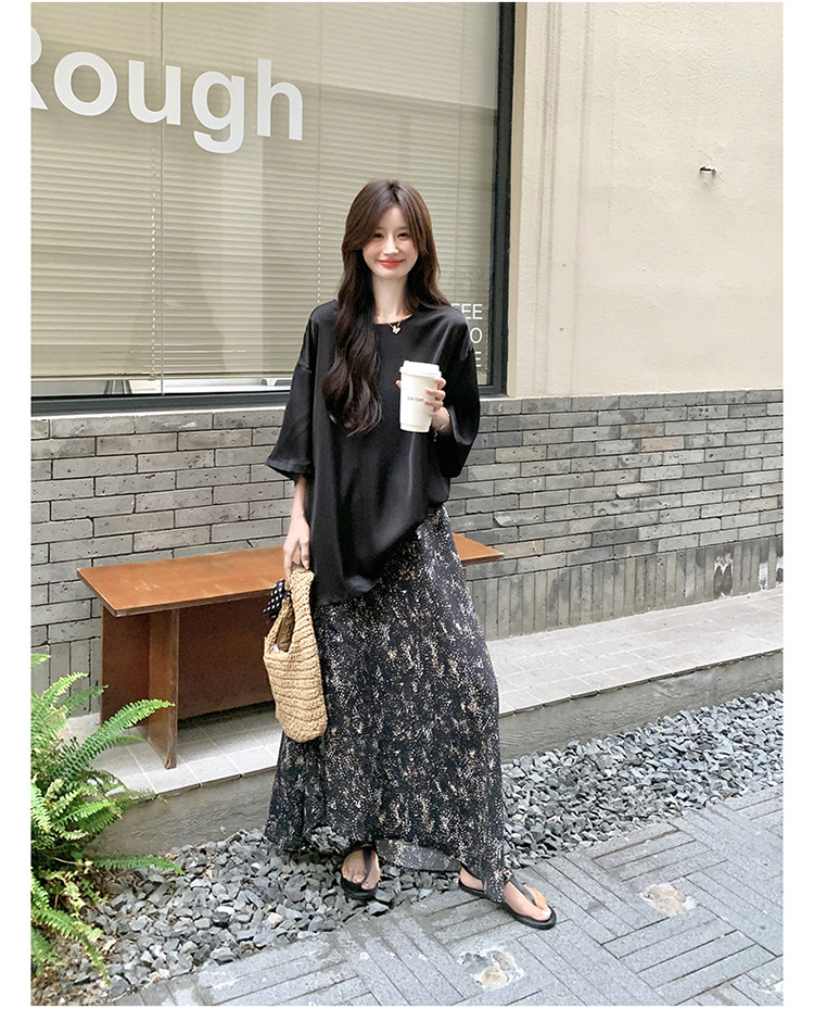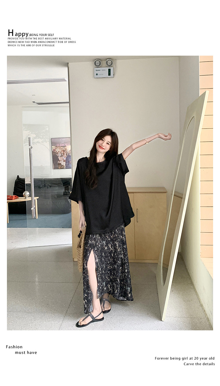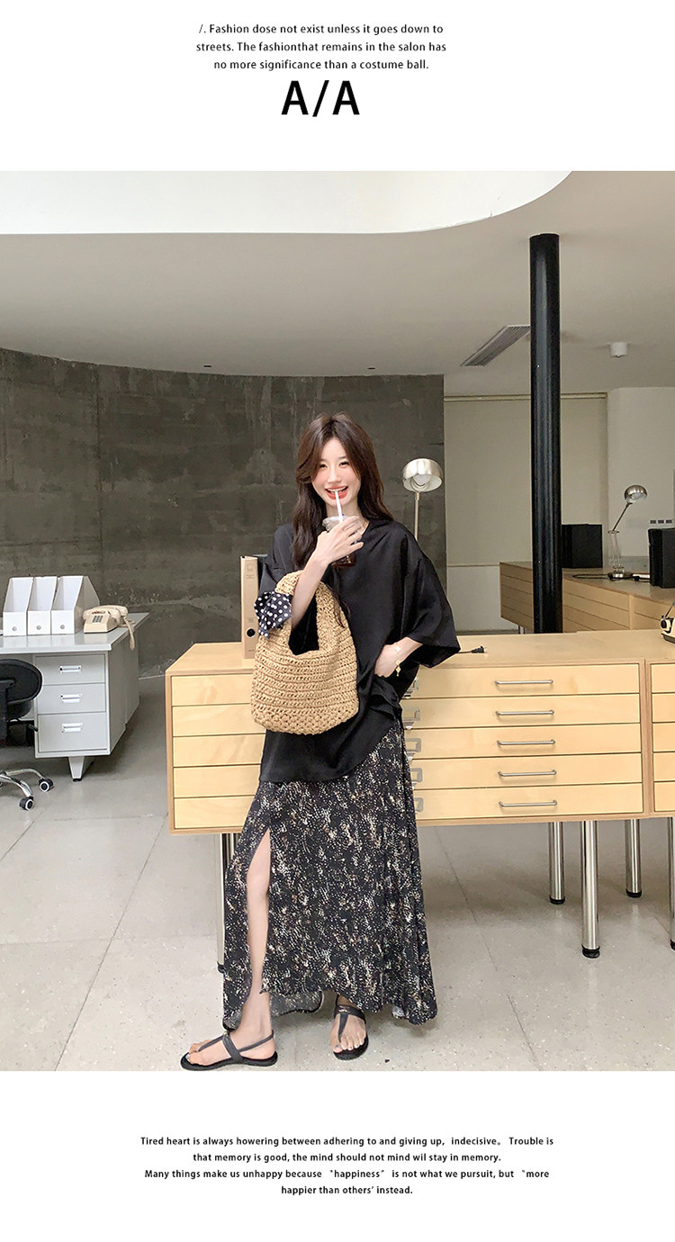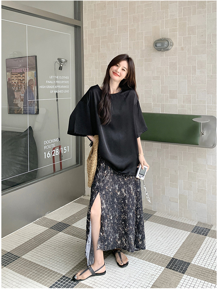 2点セット!【セットアップ】韓国風 ルーズ リラックス感 Tシャツ + 花柄スカート 上下セット レディース 夏 超人気 おしゃれ 旅行【SHシリーズ】