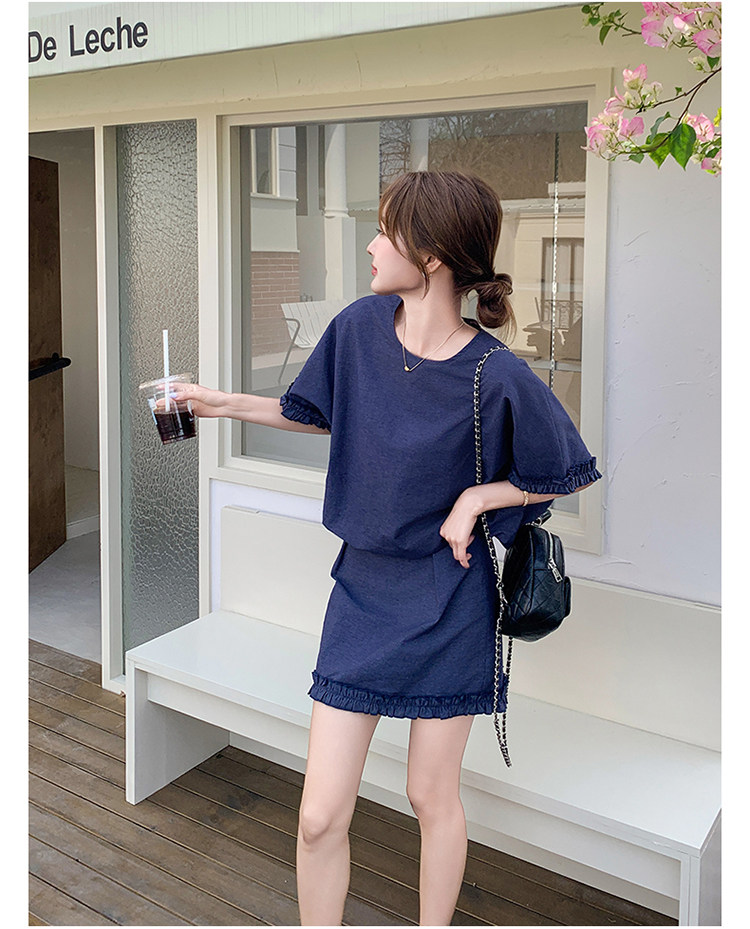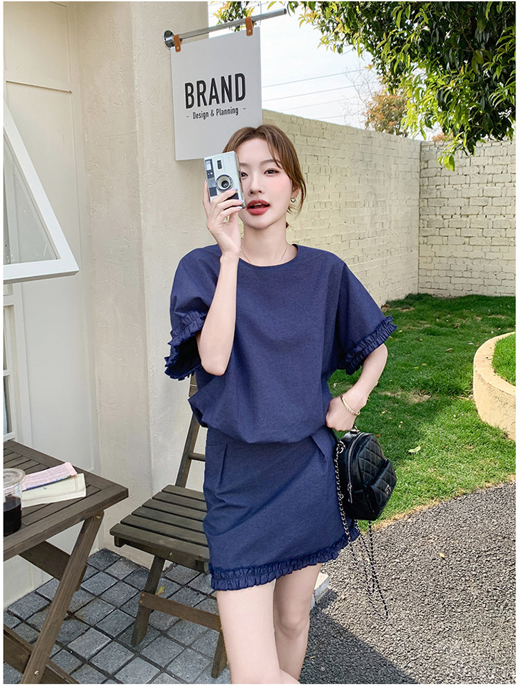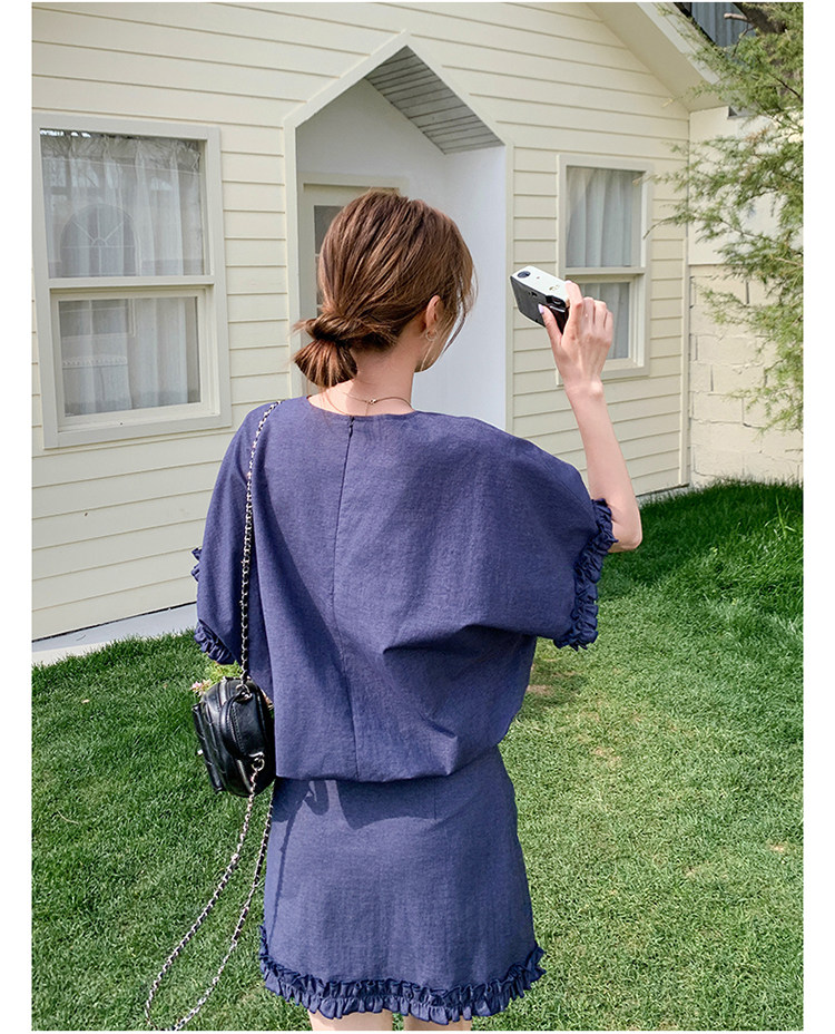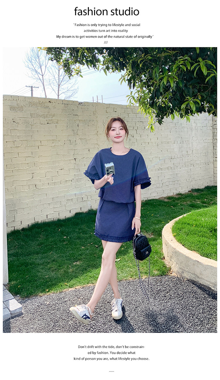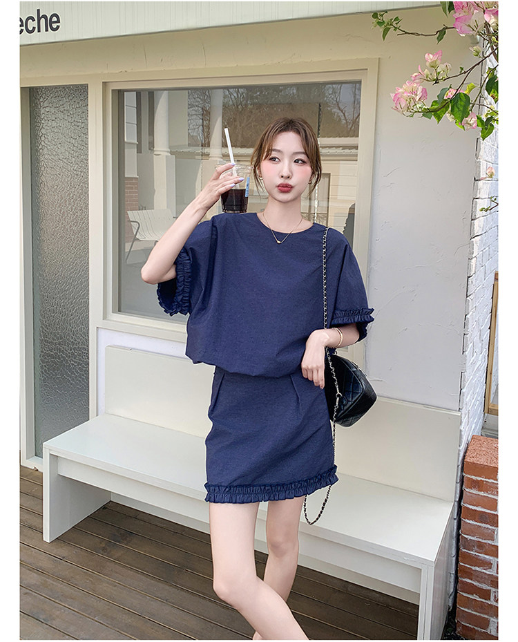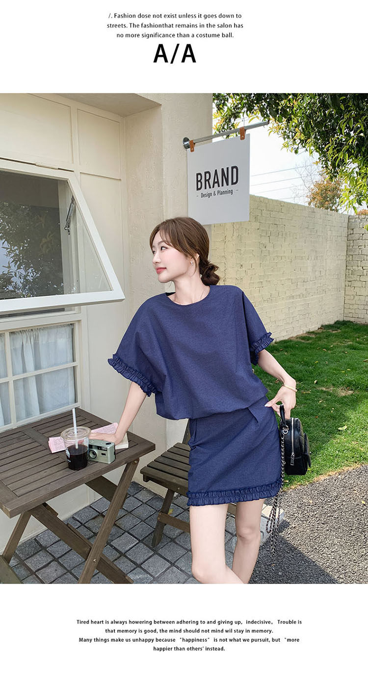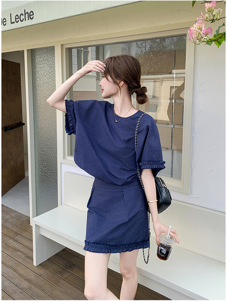 2点セット!【セットアップ】 OOTDコーデ ネイビー花柄袖トップス+ミニスカート 上下セット レディース カジュアル 若見え人気セットアップ【JZシリーズ】