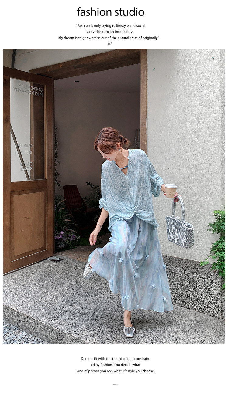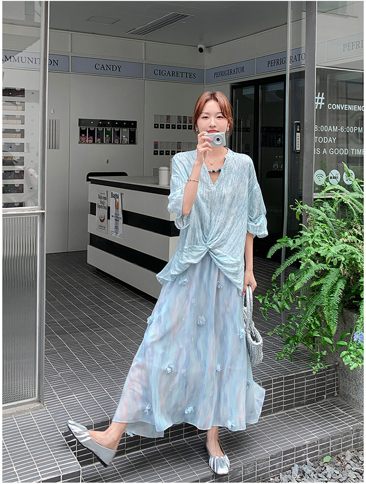 2点セット!【セットアップ】夏 フレンチヴィンテージ ブラウス+スカート 上下セット レディース【SHシリーズ】