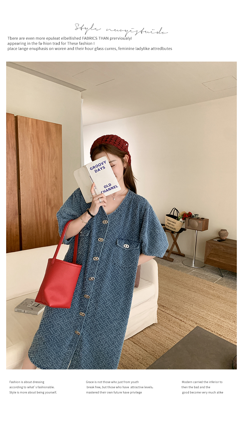 【商品名】【ワンピース】夏 リラックス感 Vネック デニム半袖ワンピース 薄手 レディース ゆったりカジュアルロング丈【JZシリーズ】