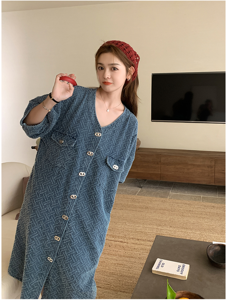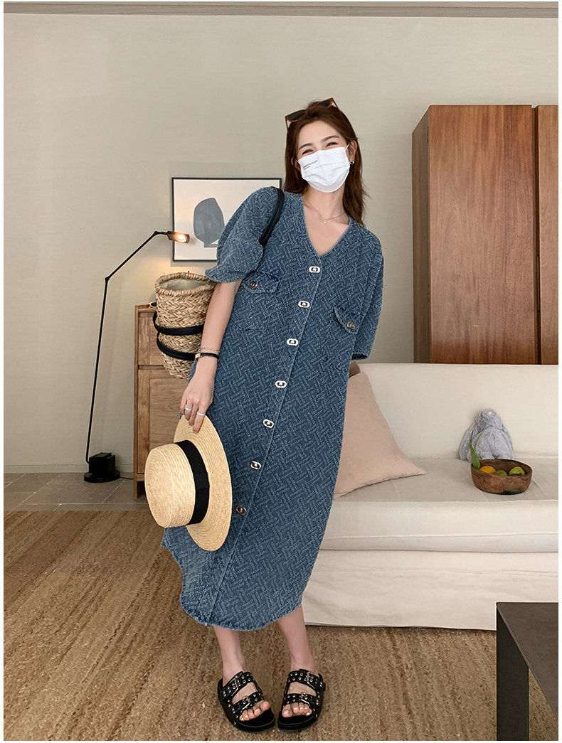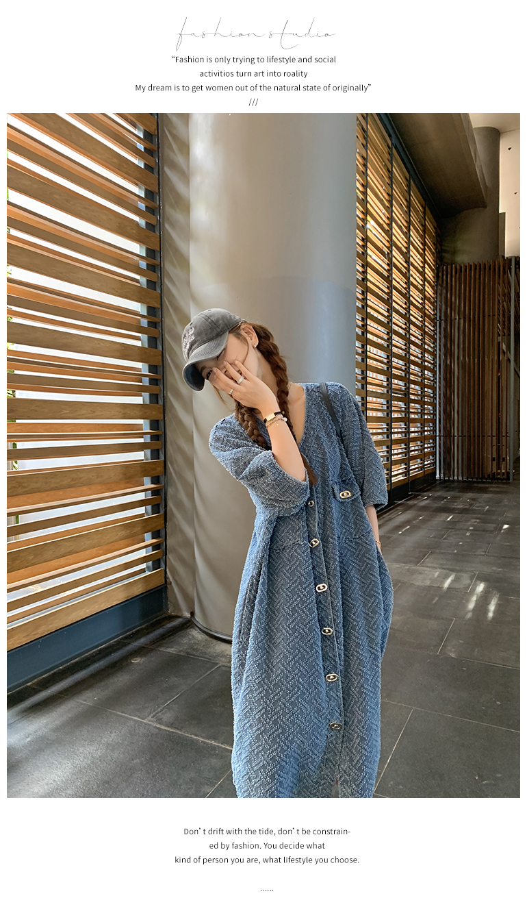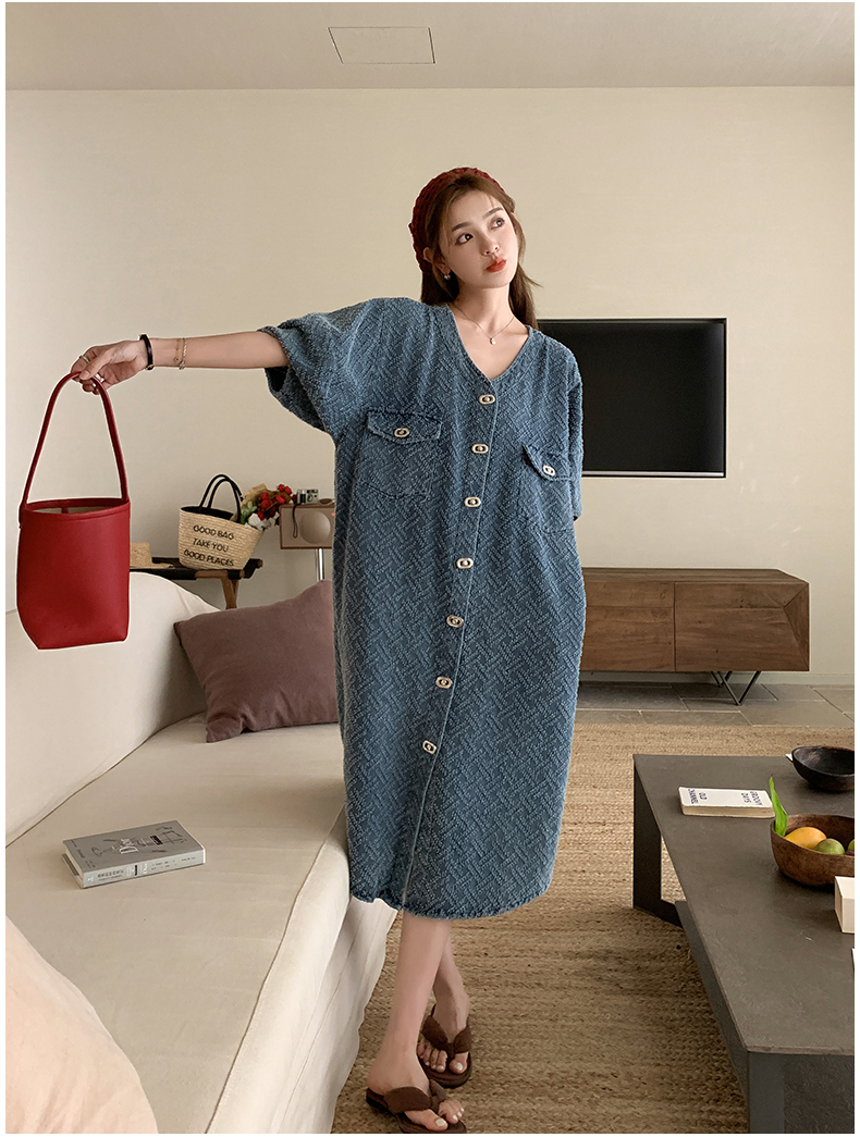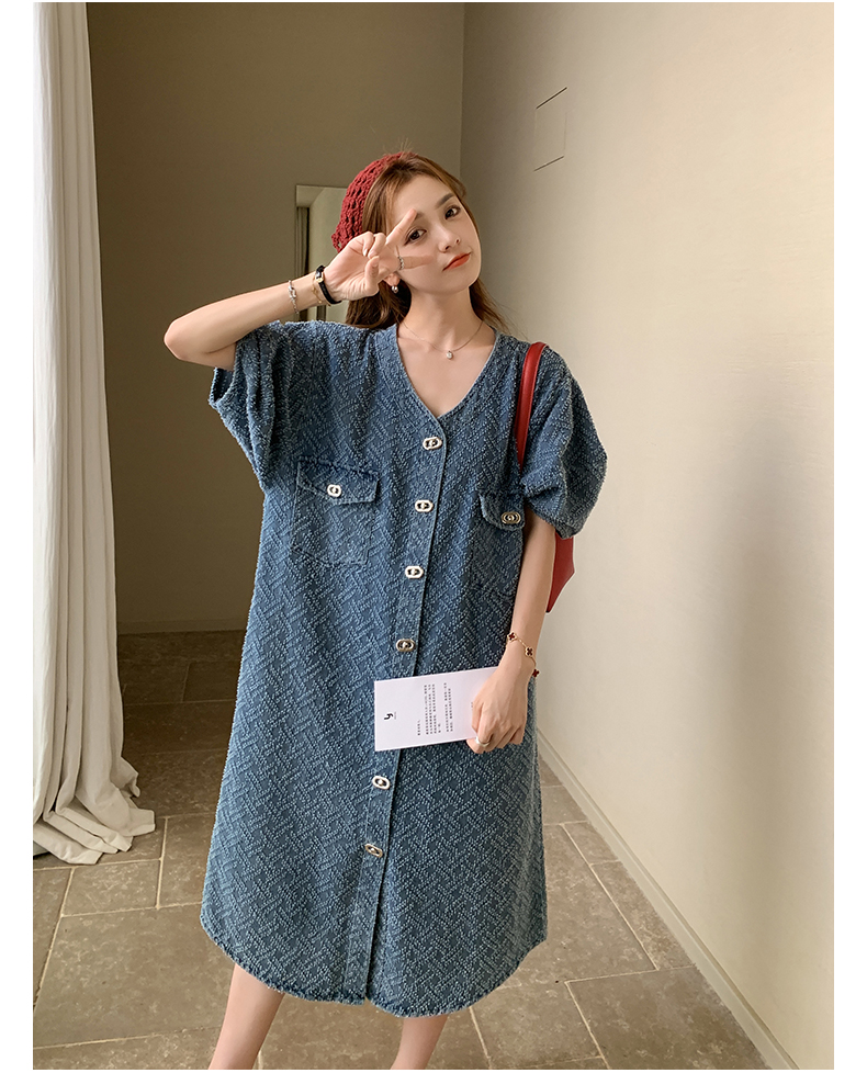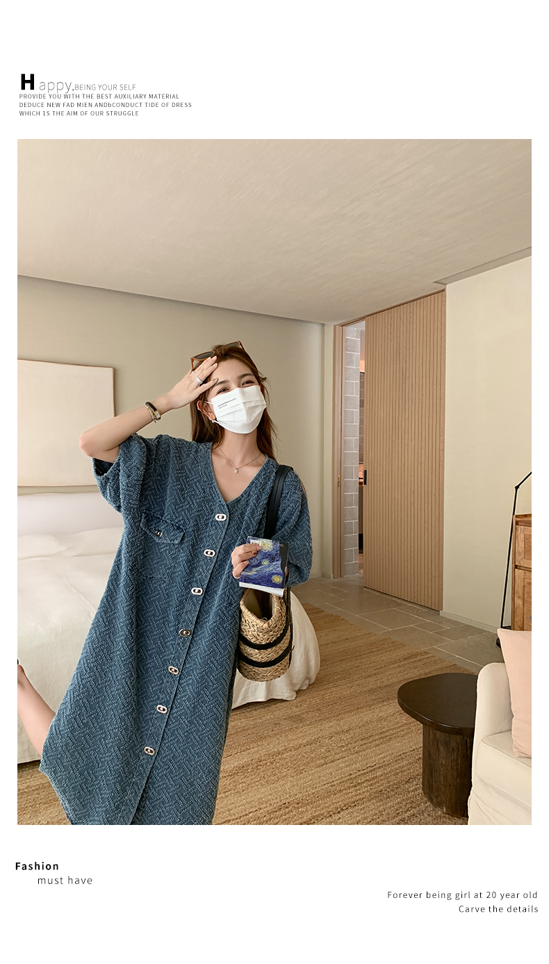 【ワンピース】夏 リラックス感 Vネック デニム半袖ワンピース 薄手 レディース ゆったりカジュアルロング丈【JZシリーズ】