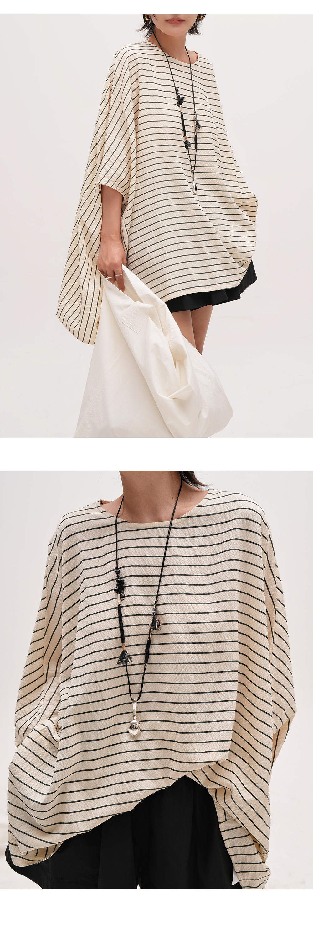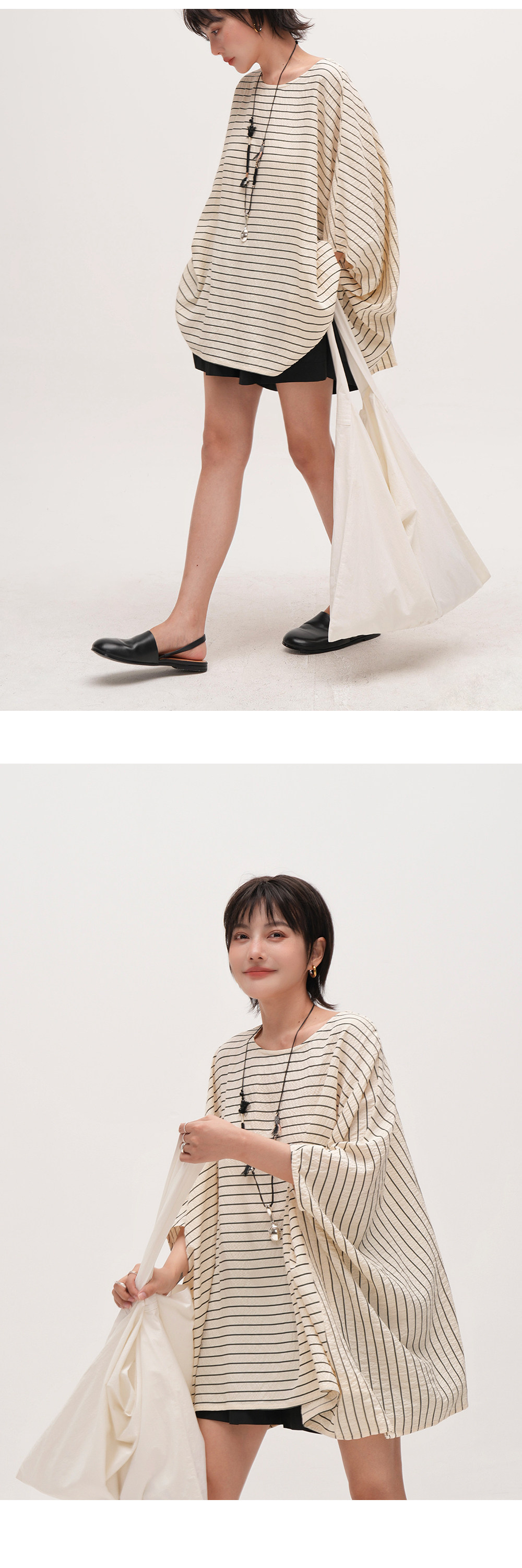 【商品名】【トップス】夏用 薄手 大きいサイズ ルーズ レトロストライプ 長袖Tシャツ レディース スリム見え 着回しやすい シアートップス【SHシリーズ】【JZシリーズ】