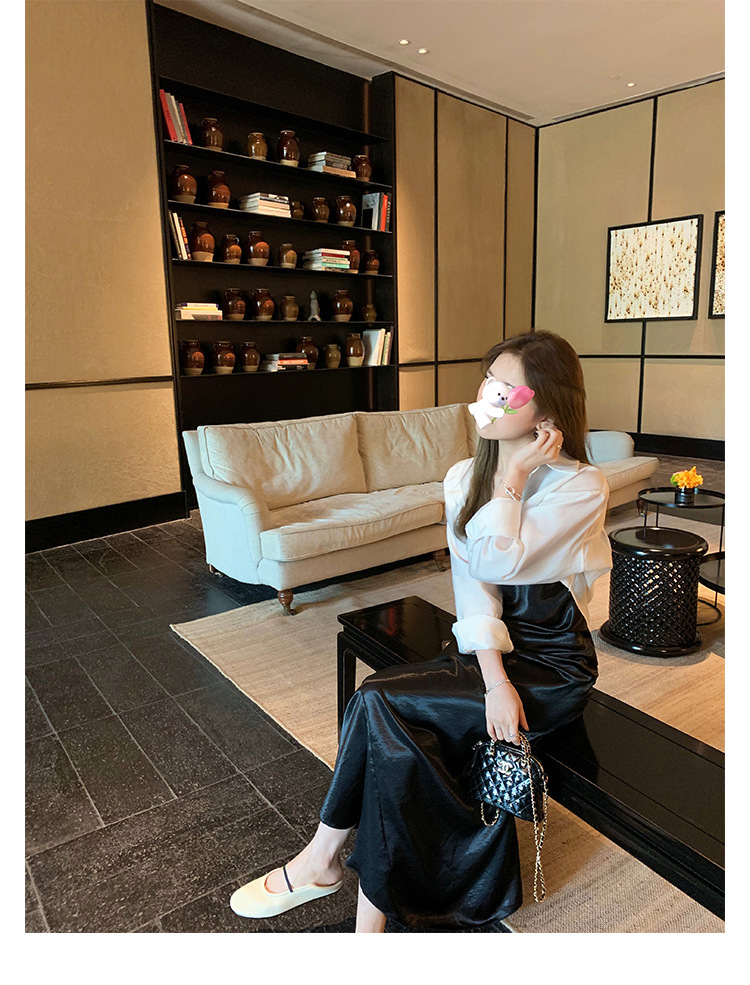 【ワンピース】韓国風 春秋新作 ゆったり大きめサイズ 体型カバー 花柄長袖ミディアムワンピース【SHシリーズ】