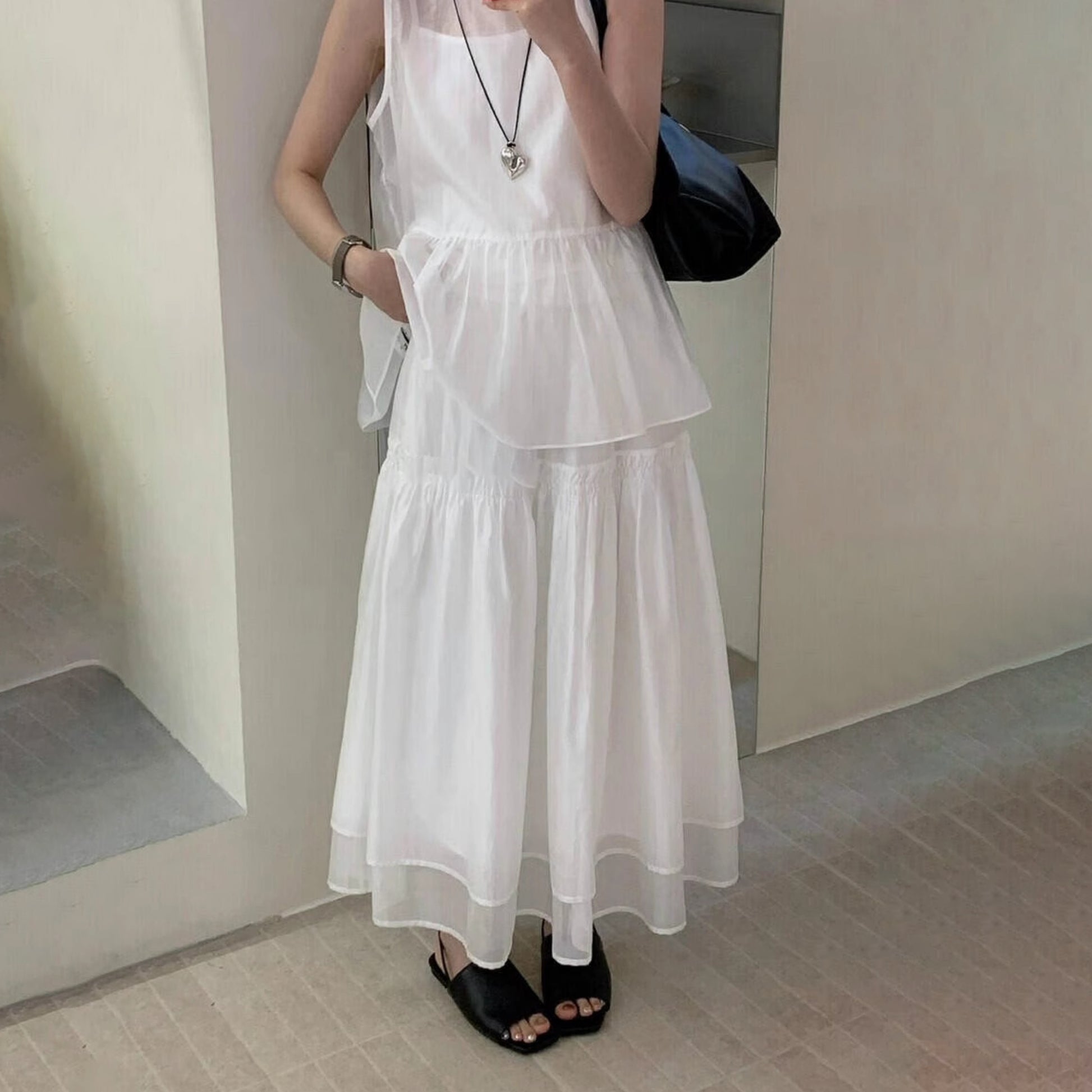 【ワンピース】春 秋 冬 オーガンジー切替 ゆったり ティアード ワンピース 【AHシリーズ】