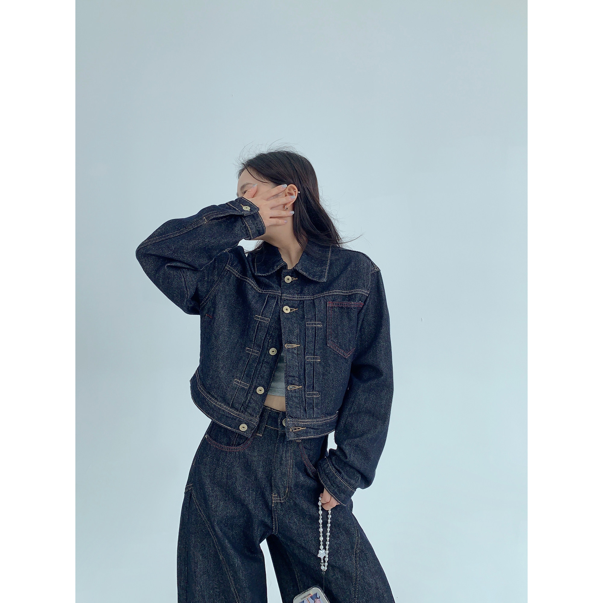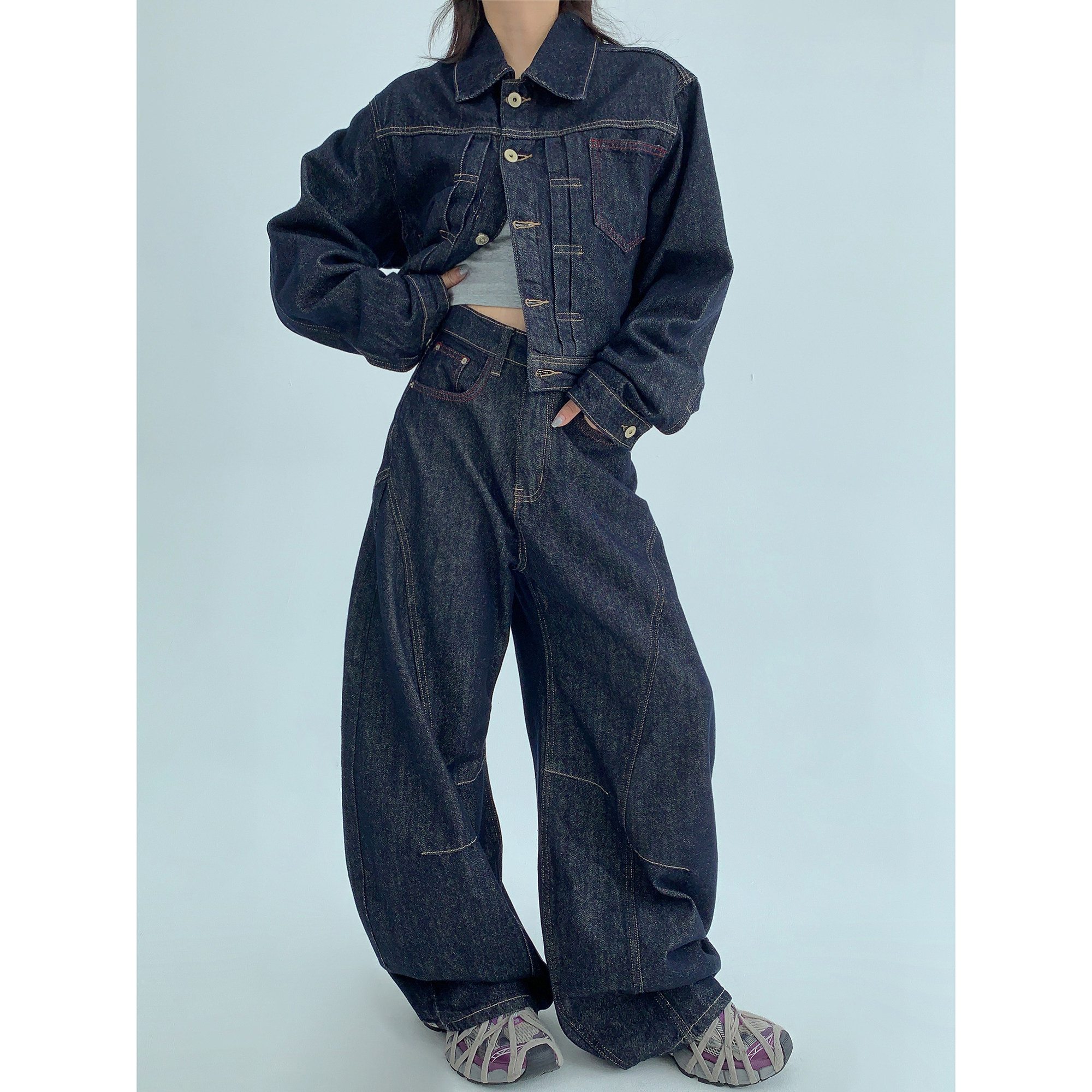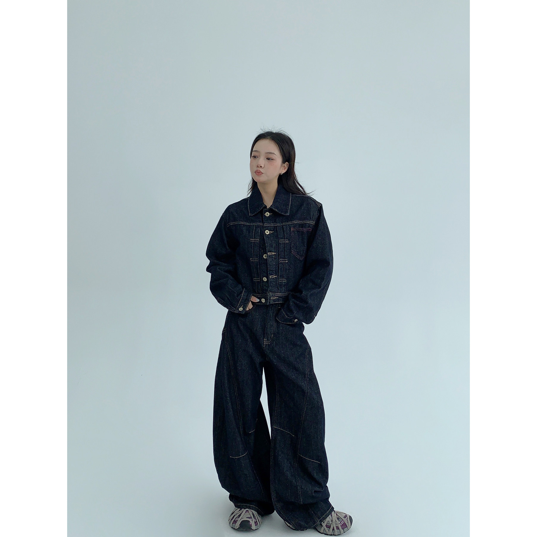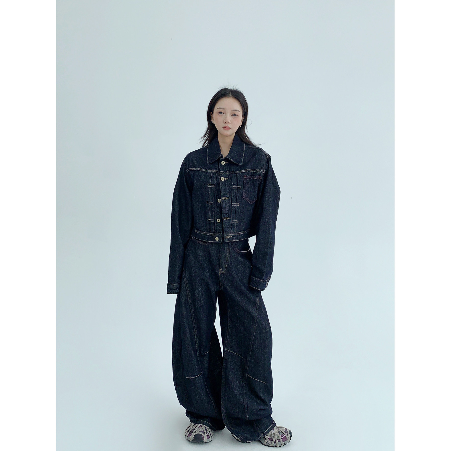 モデルさん:158cm / 40kg 着用サイズ:ジャケットS パンツXS