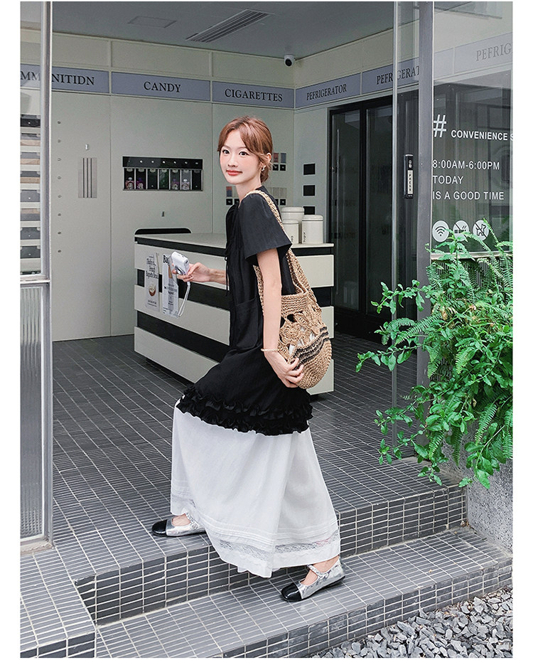 🛍️ 予約殺到!【ワンピース】 【7~15日内発送】透かし彫り カジュアル フィッシュテイルスカート 半袖 ワンピース【JZシリーズ】