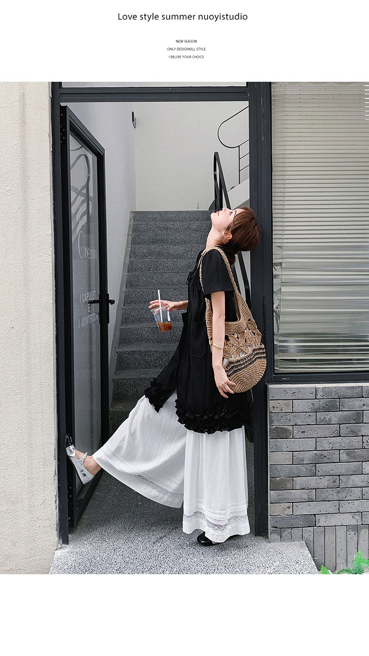【商品名】2点セット!【セットアップ】リラックス感 セットアップ フリル Vネックトップス+ワイドパンツ 上下セット 気質よく細見えカジュアルスタイル【JZシリーズ】