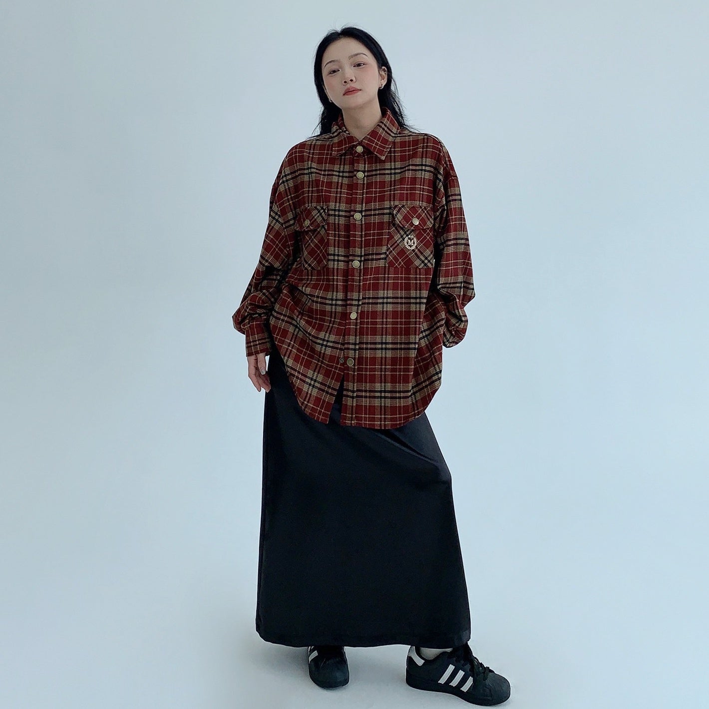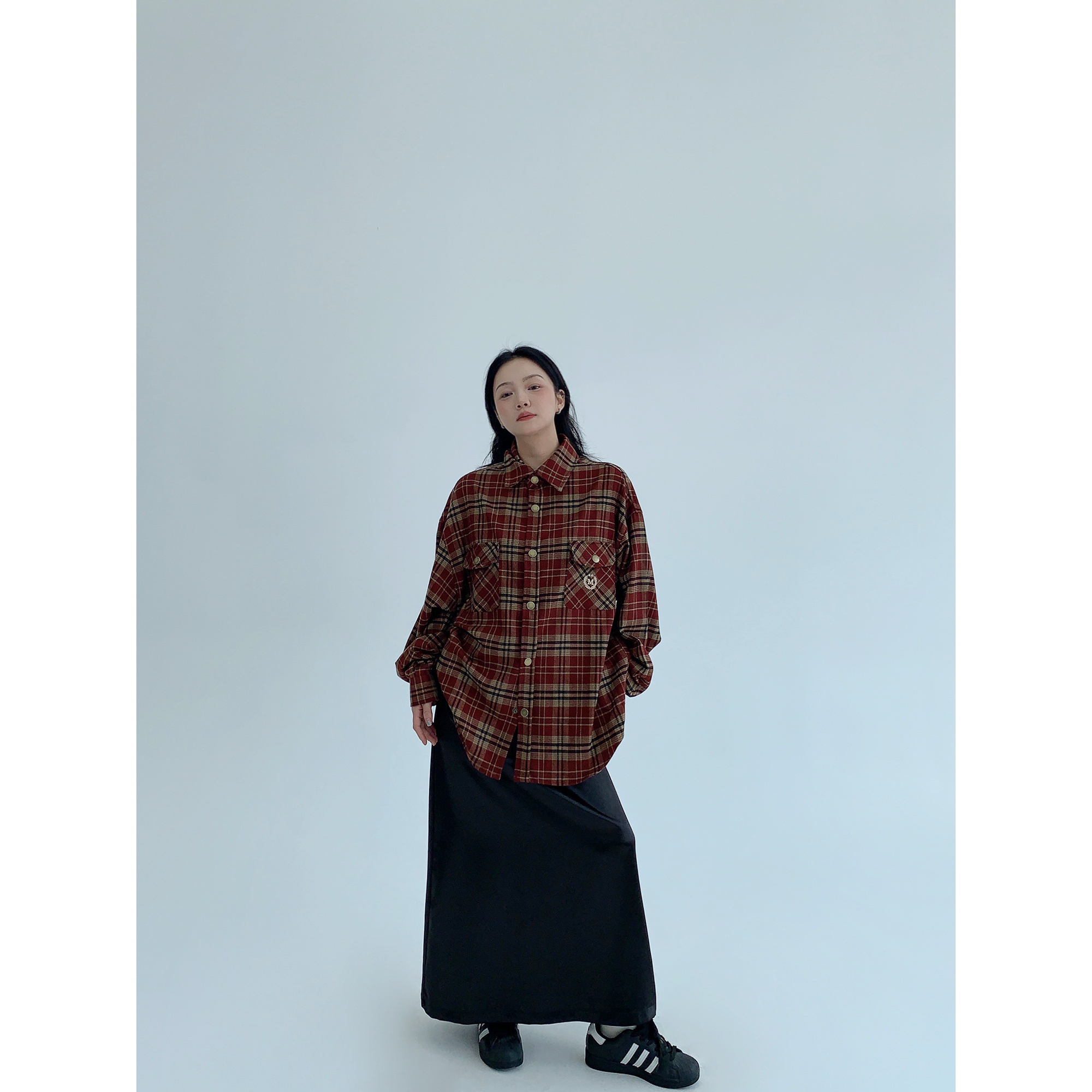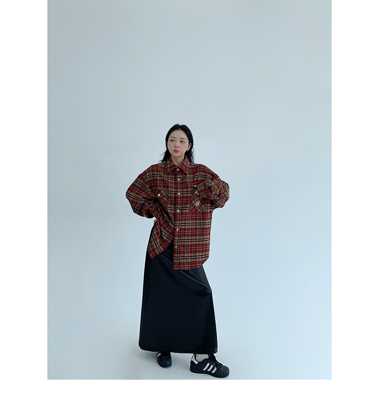 【ワンピース】起毛素材 チェック柄 レトロ クルーネック 長袖 ワンピース 【JZシリーズ】