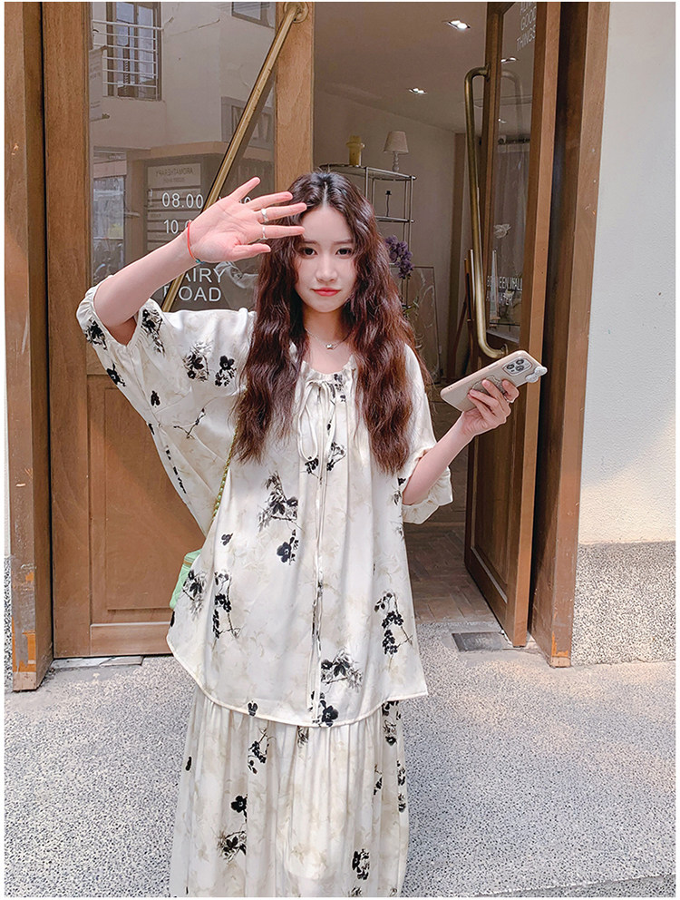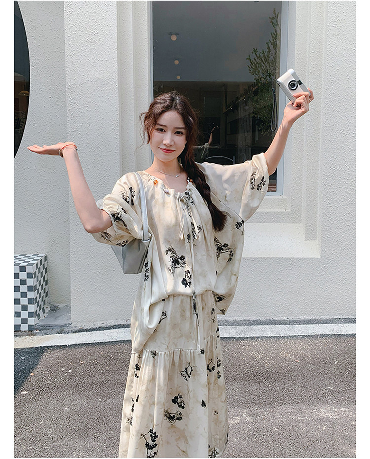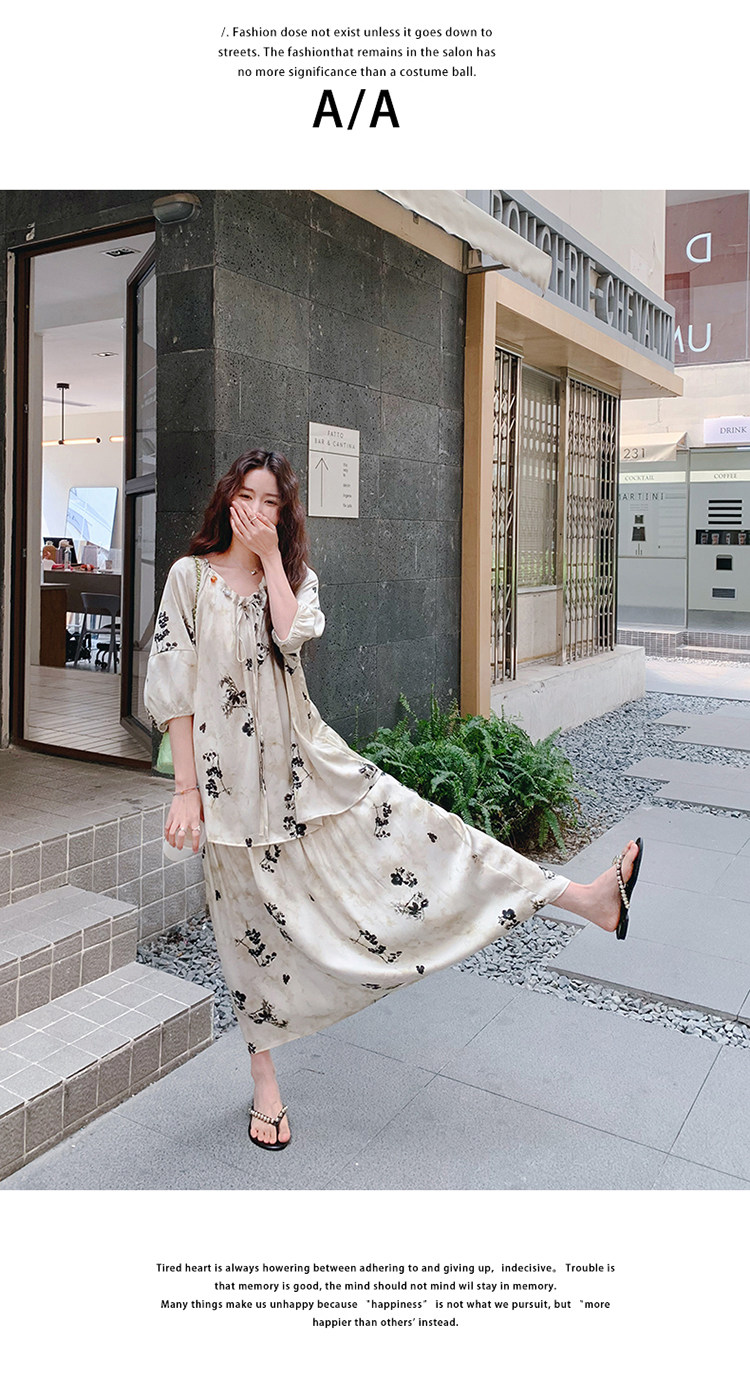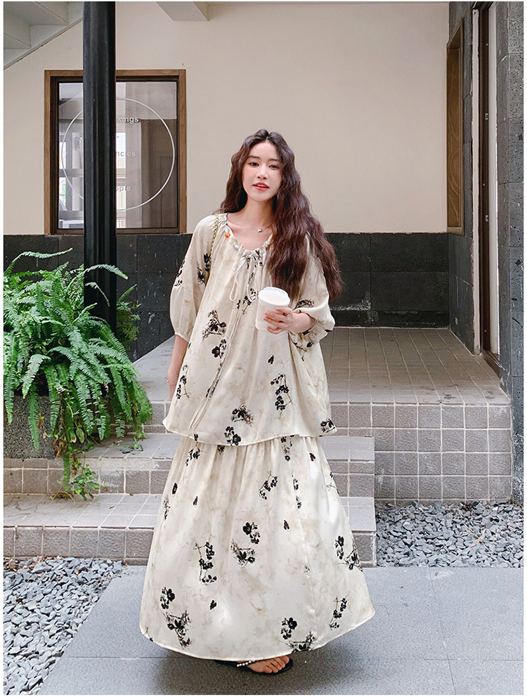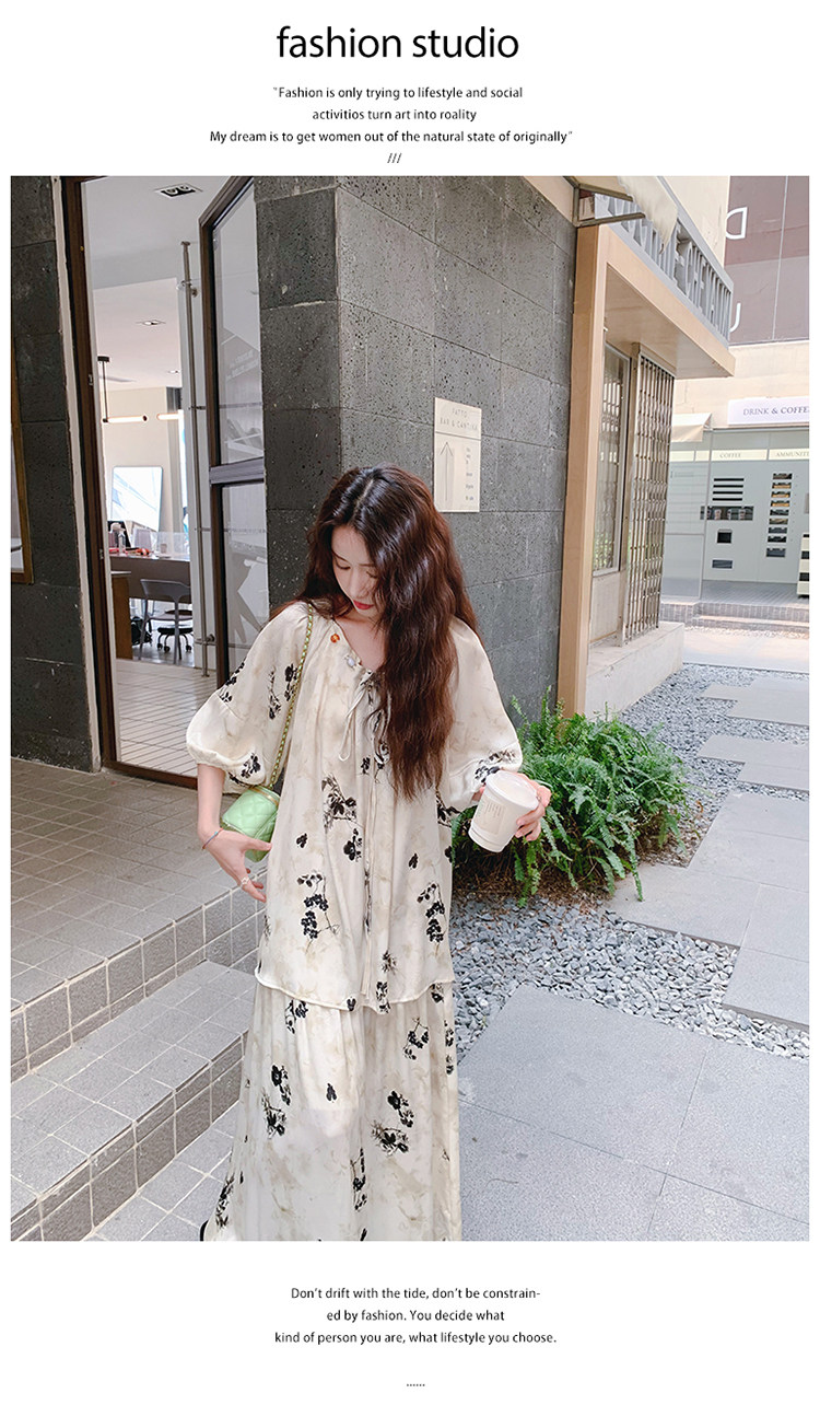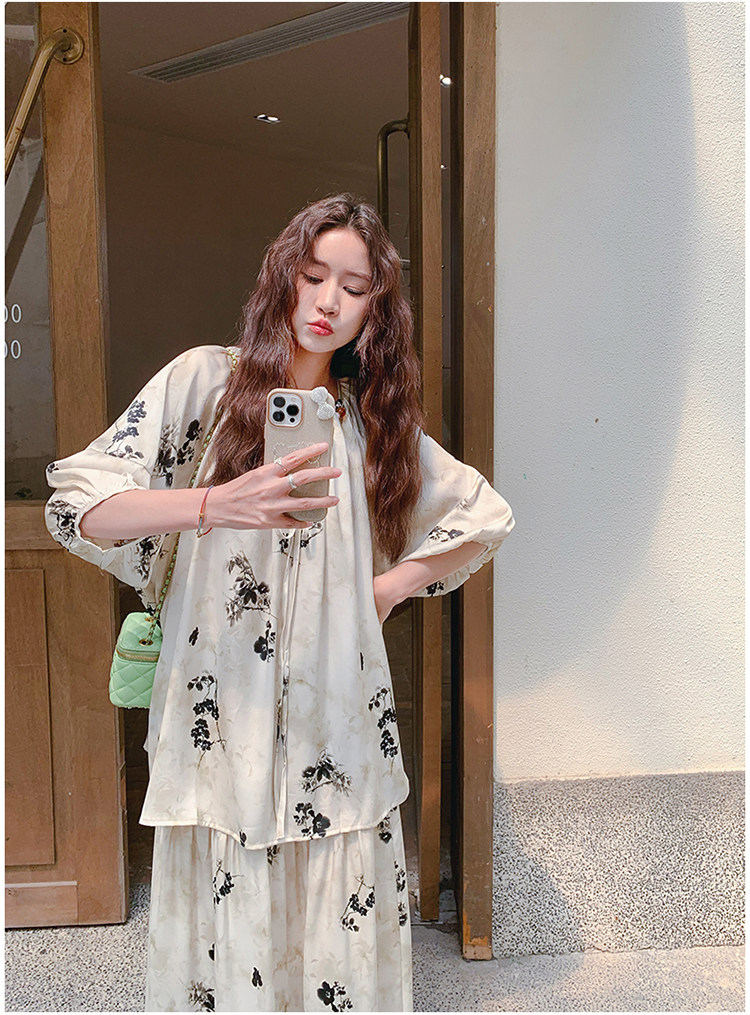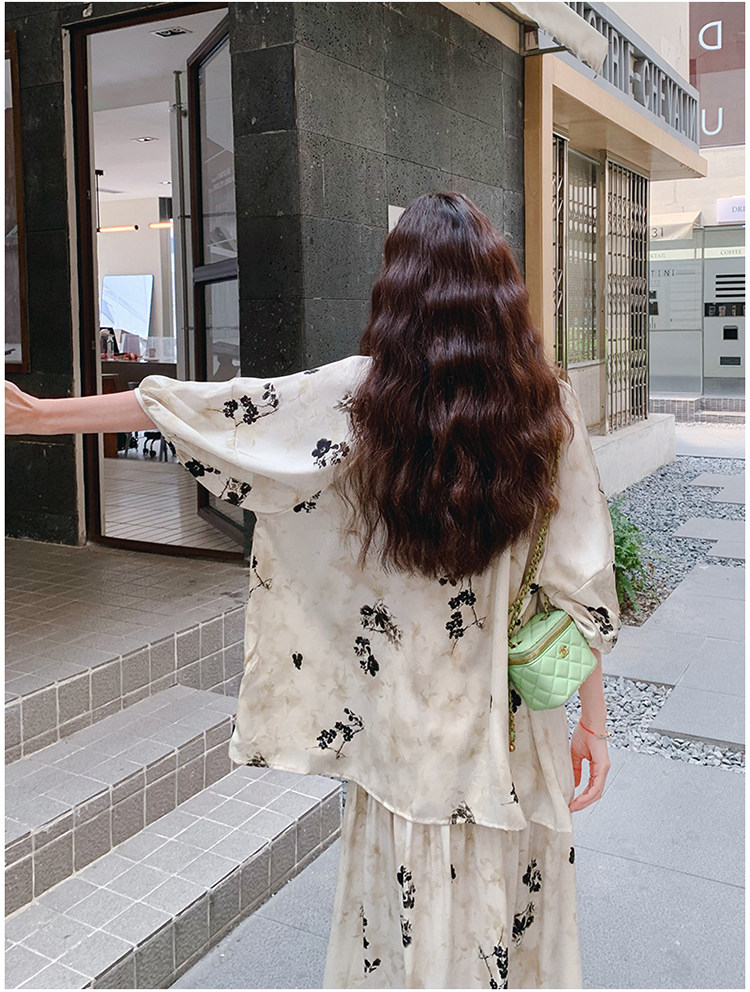 2点セット!【セットアップ】 清涼感アート風 セットアップ レディース ファッショナブル 個性派 高級感 ブラウス+スカート 上下セット【SHシリーズ】