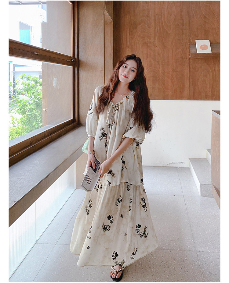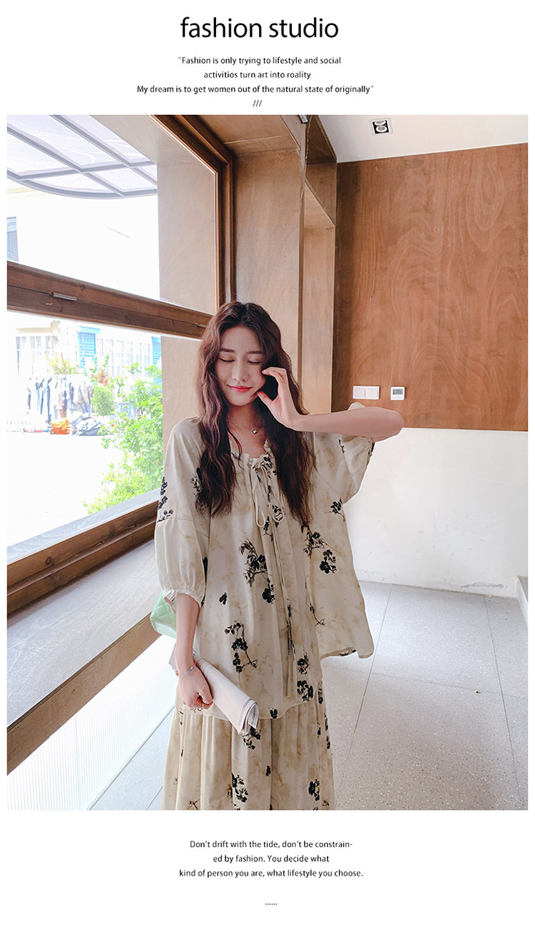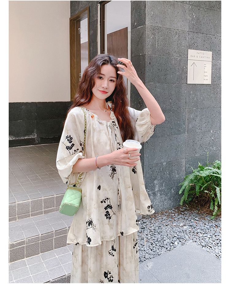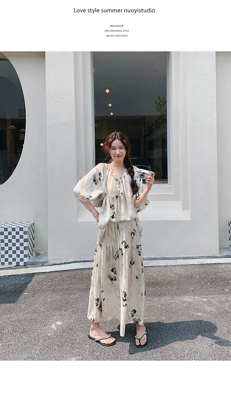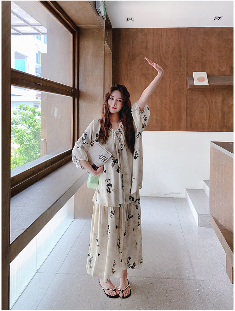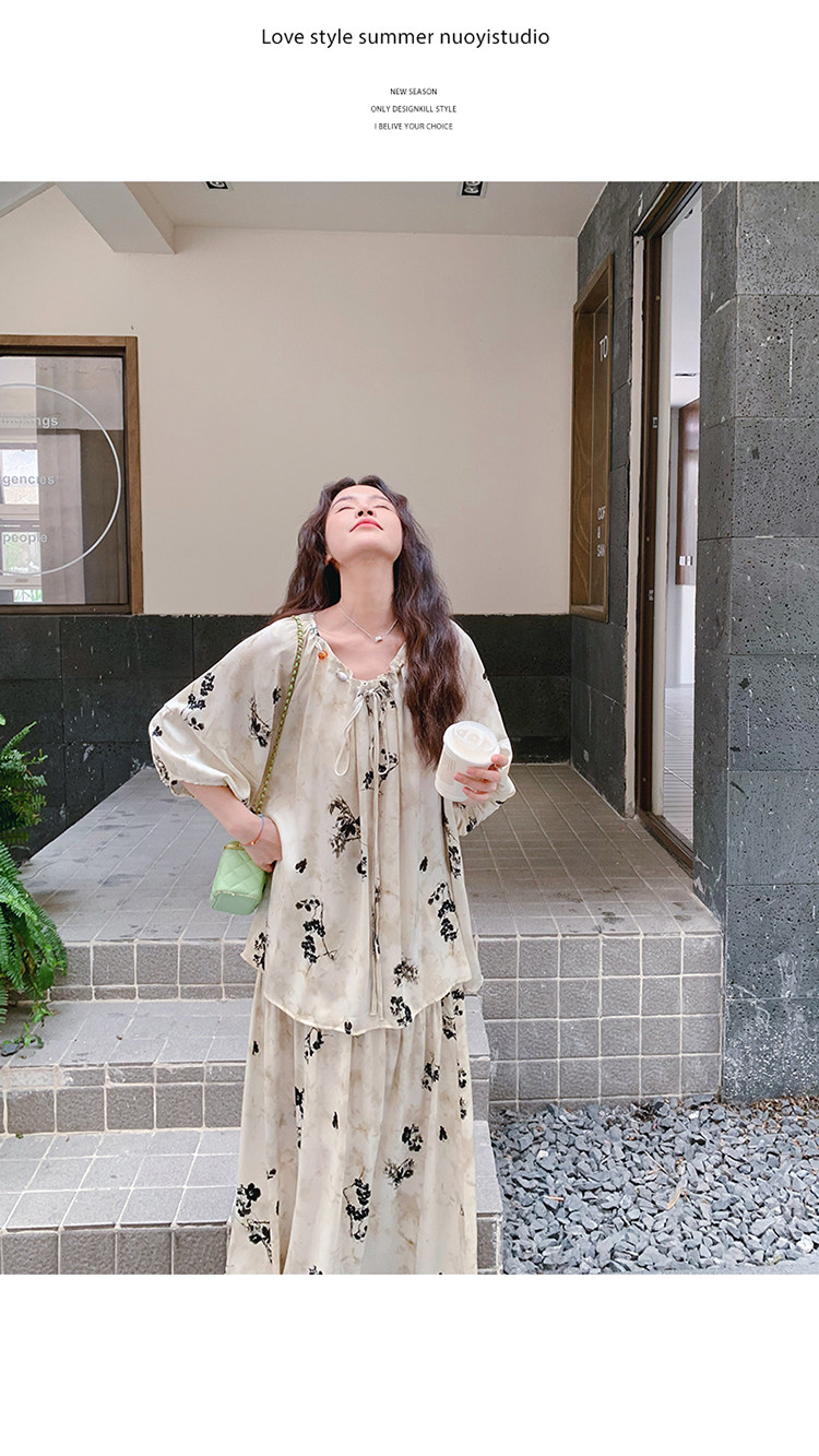 2点セット!【セットアップ】 清涼感アート風 セットアップ レディース ファッショナブル 個性派 高級感 ブラウス+スカート 上下セット【SHシリーズ】