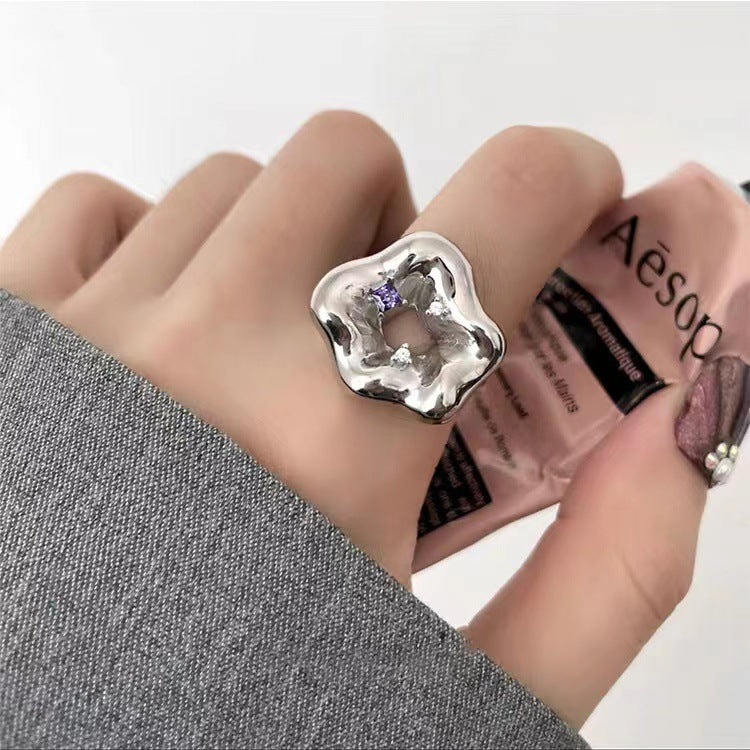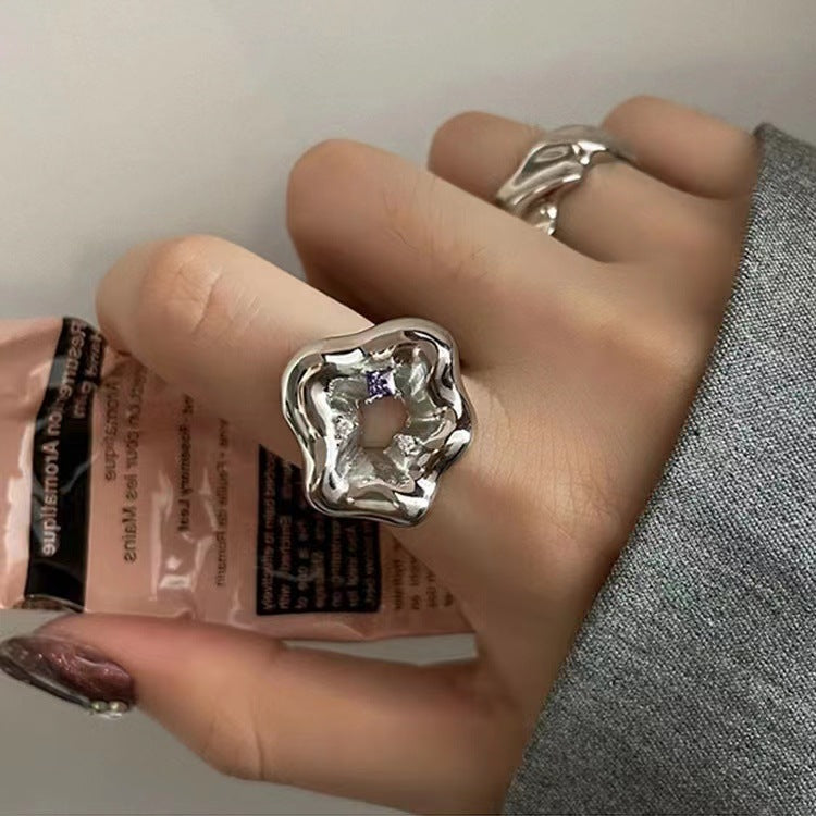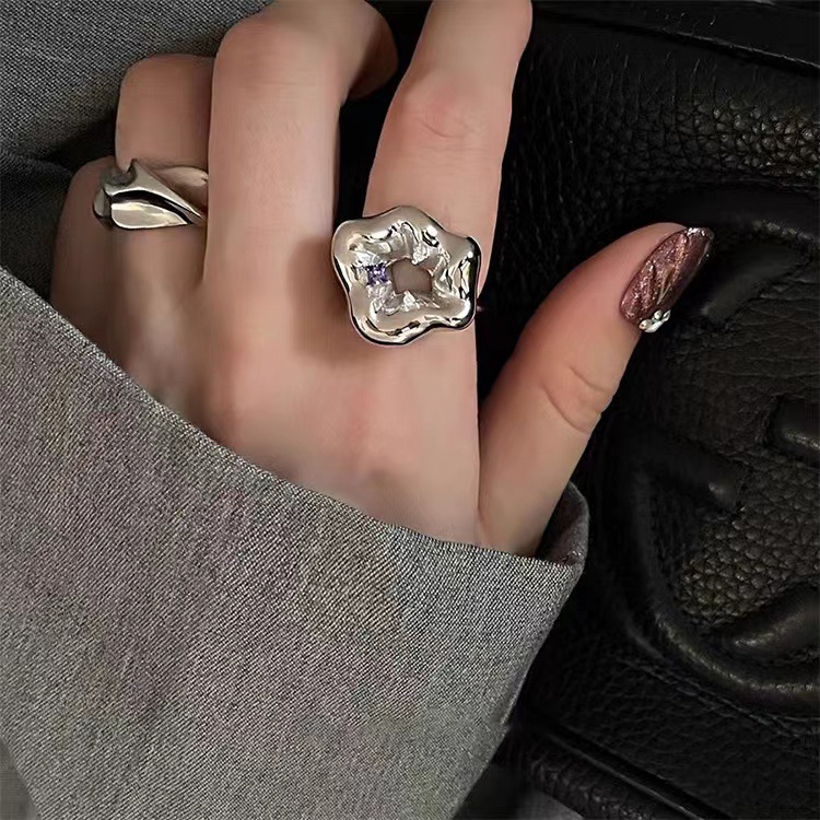 【グッズ】不規則メタルフラワー オープンリング レディース 韓国風 個性派 万能 上品 おしゃれ 指輪