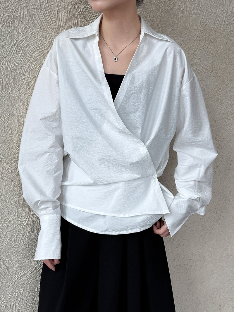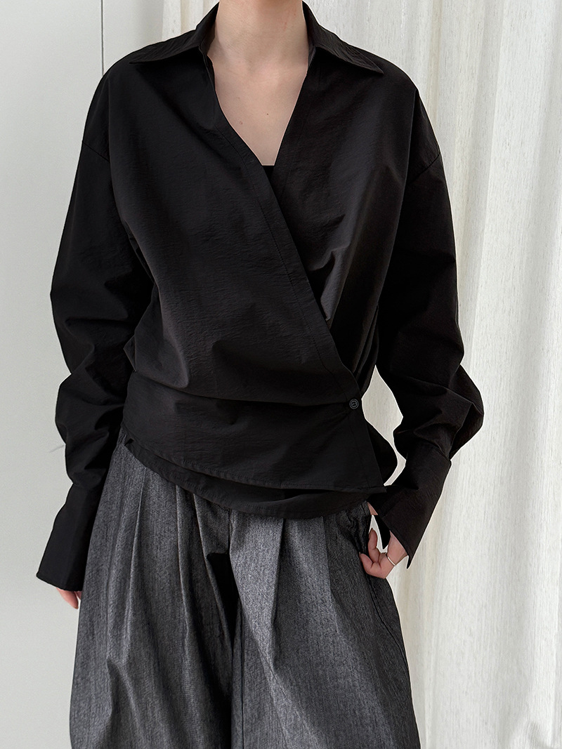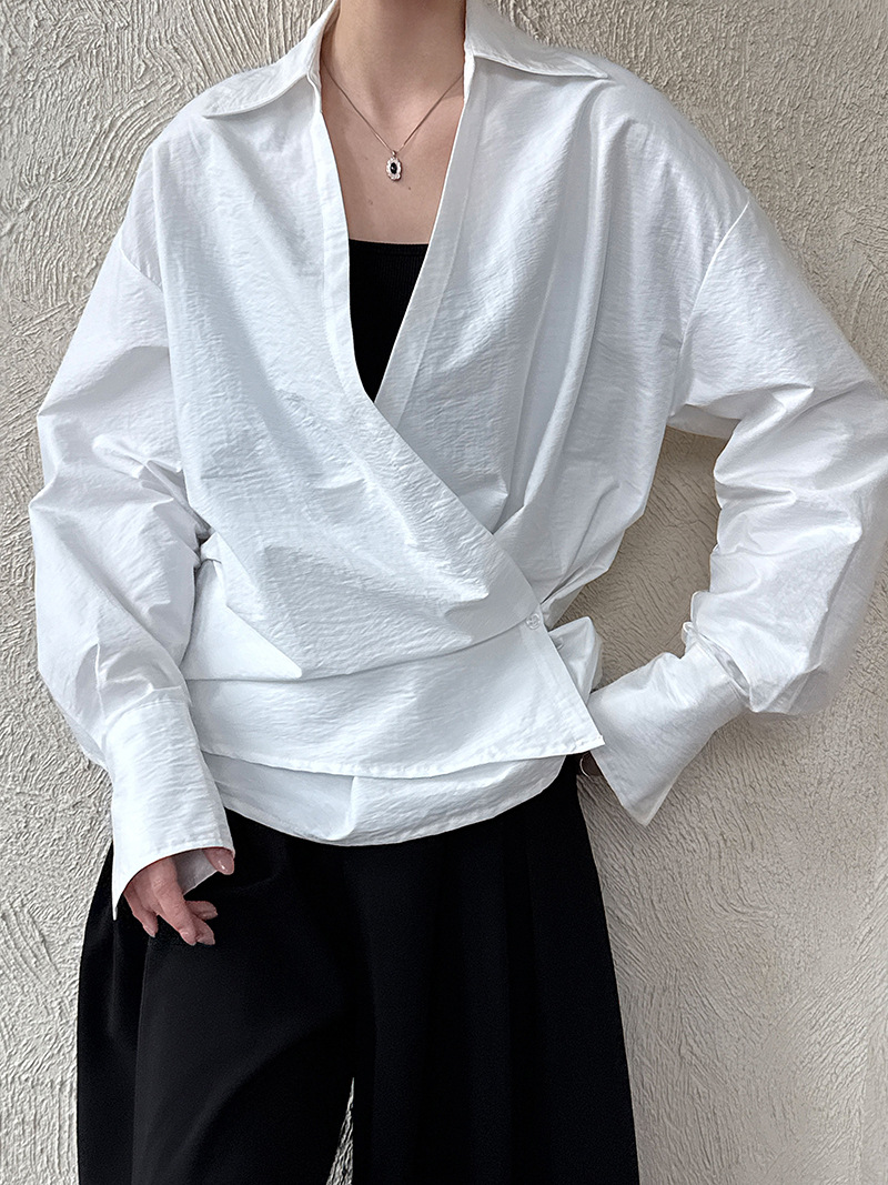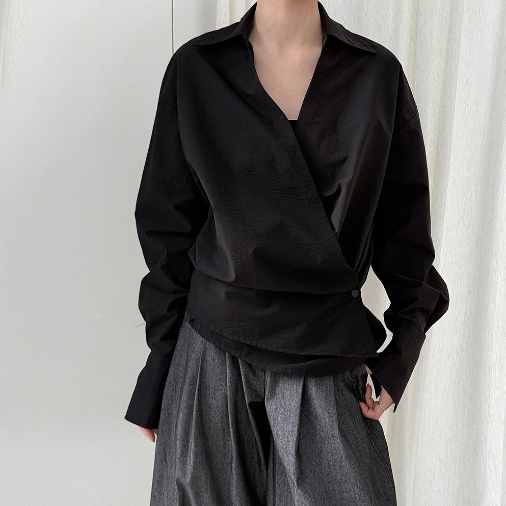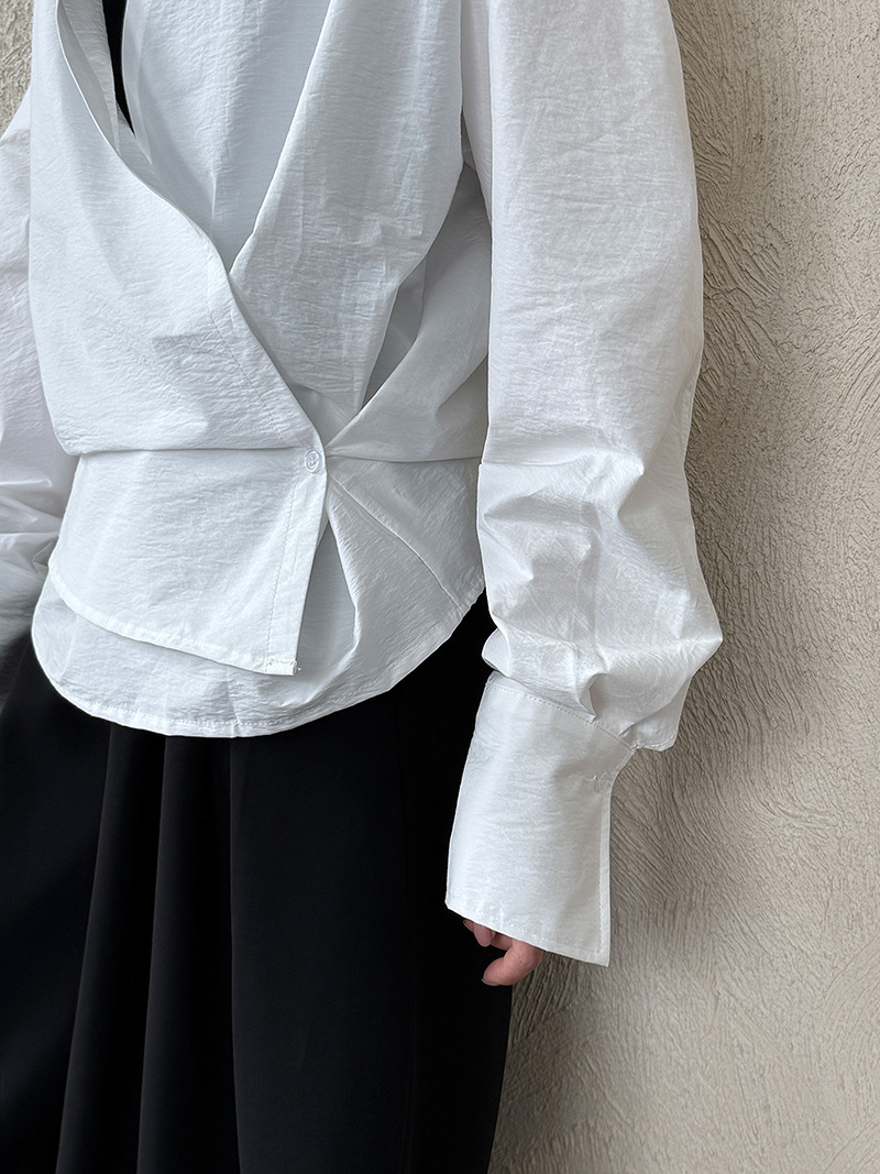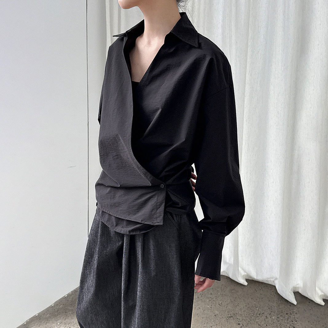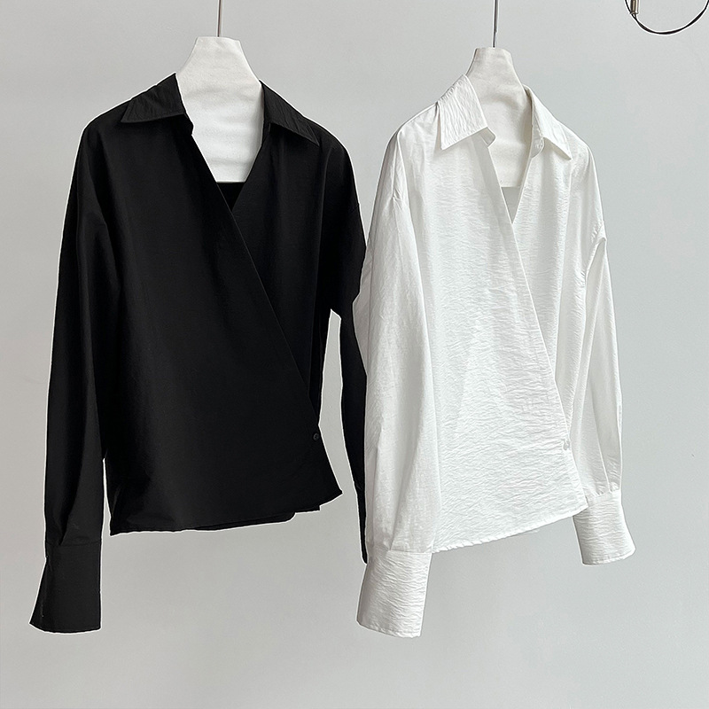 【トップス】Vネック ウエストマークシャツ レディース 韓国風ハイセンスブラウス【SNシリーズ】