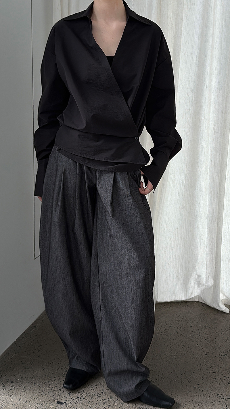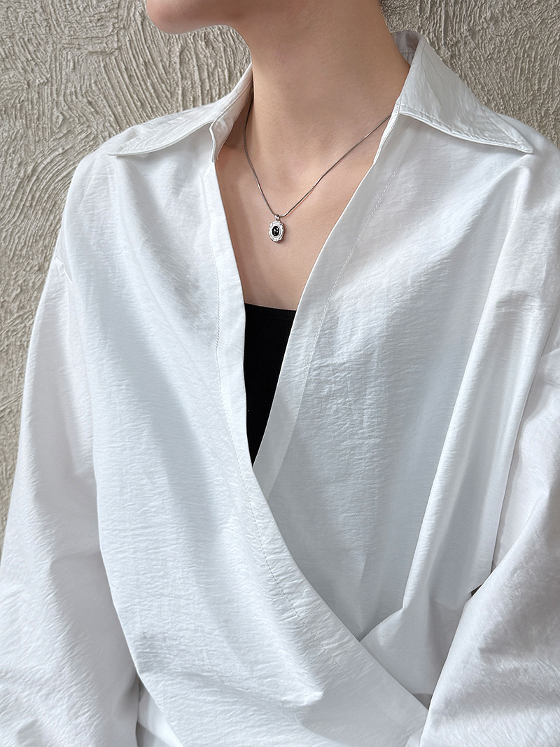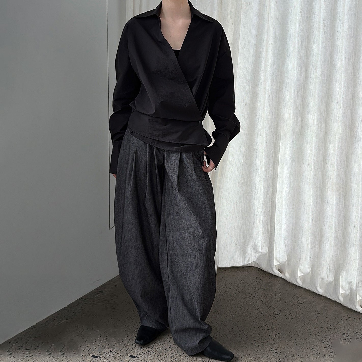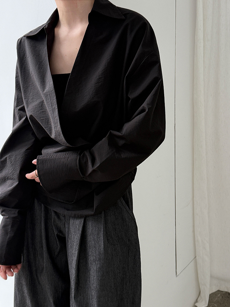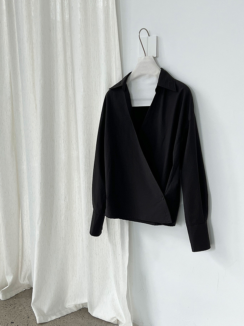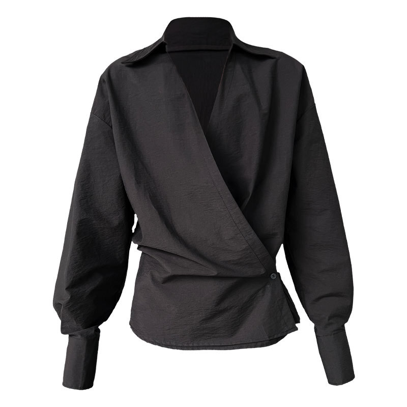 【トップス】Vネック ウエストマークシャツ レディース 韓国風ハイセンスブラウス【SNシリーズ】