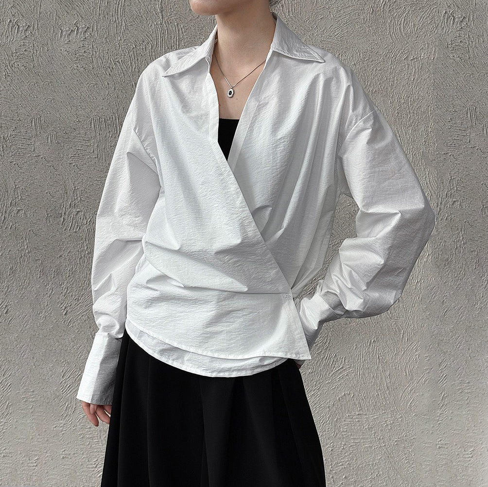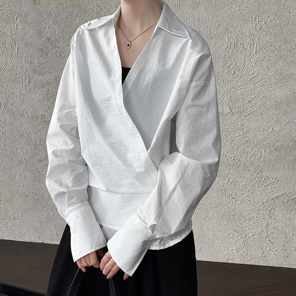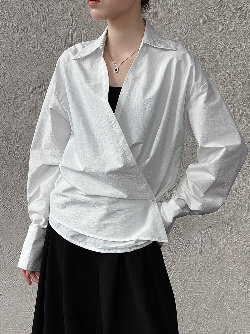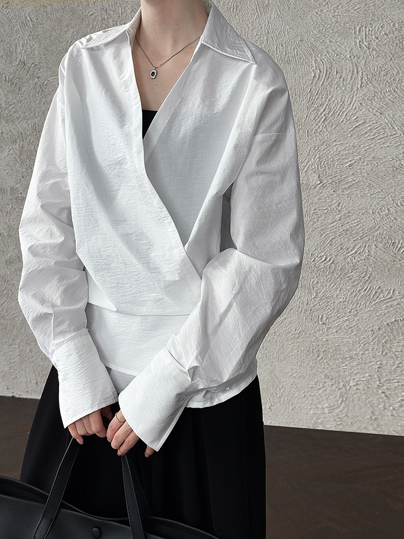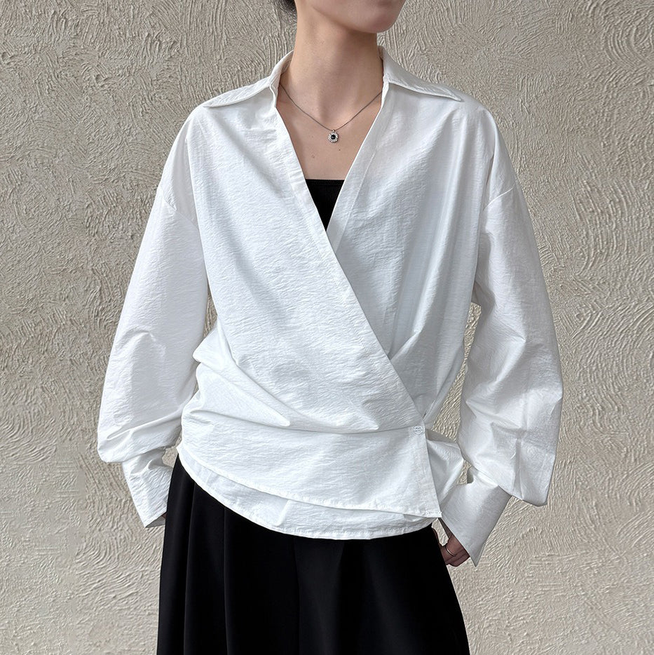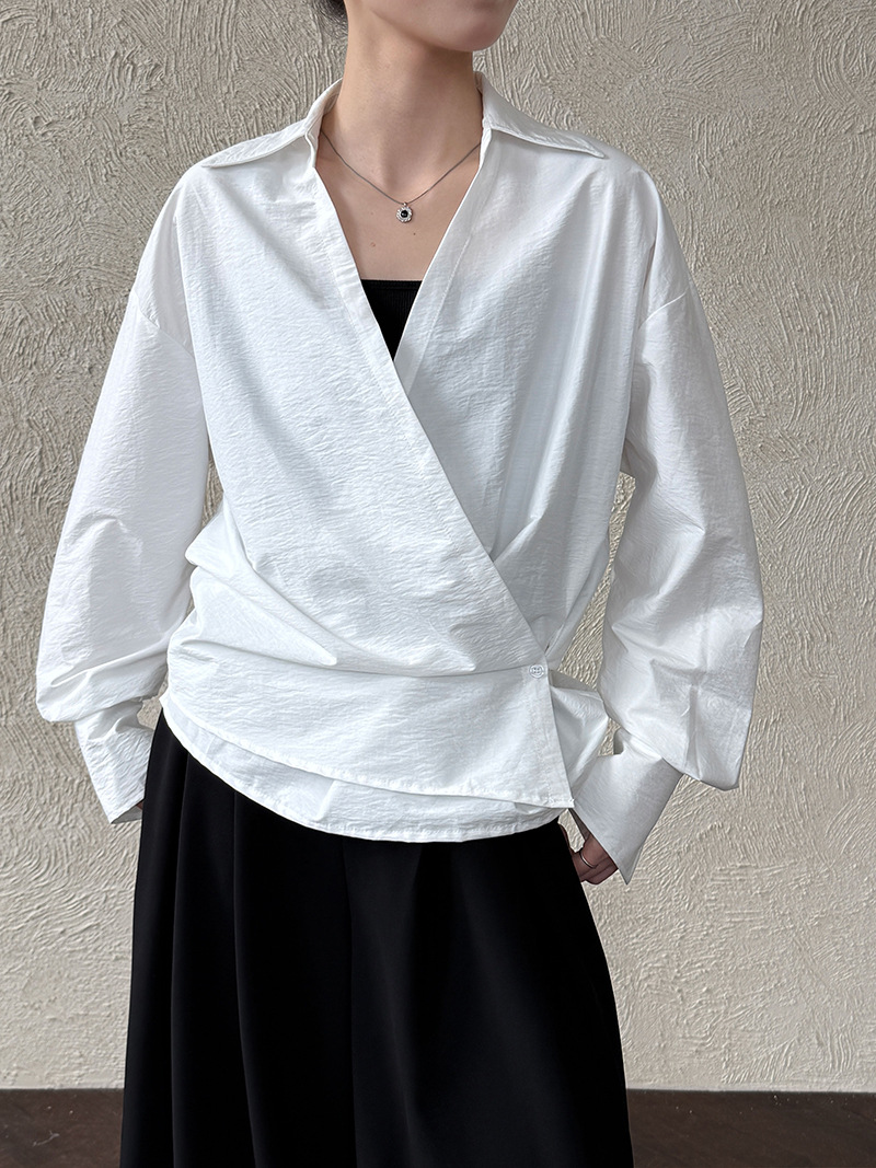 【商品名】【トップス】Vネック ウエストマークシャツ レディース 韓国風ハイセンスブラウス【SNシリーズ】