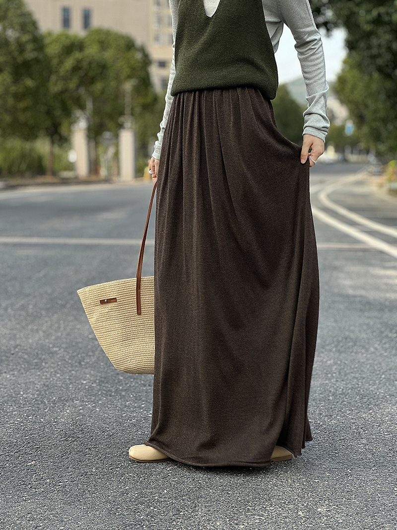 【ボトムス】ハイセンス ニットスカート レディース ウエストゴム 細見えムード感ロングスカート【JZシリーズ】