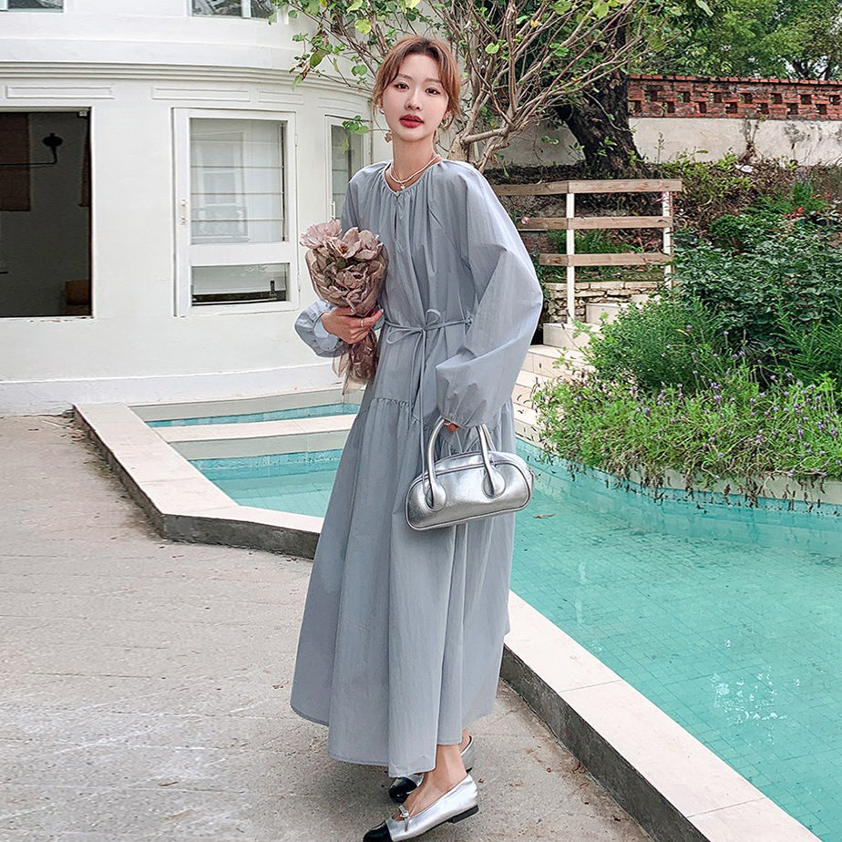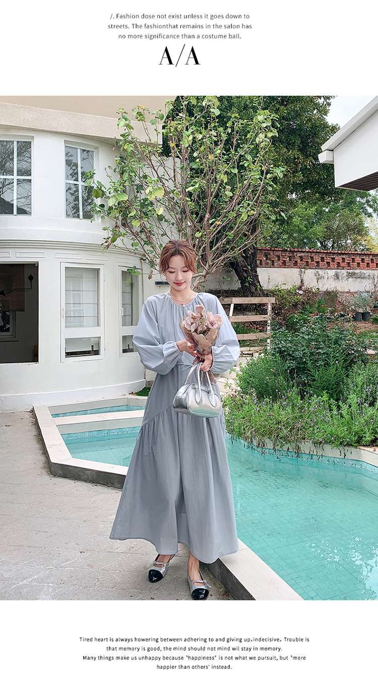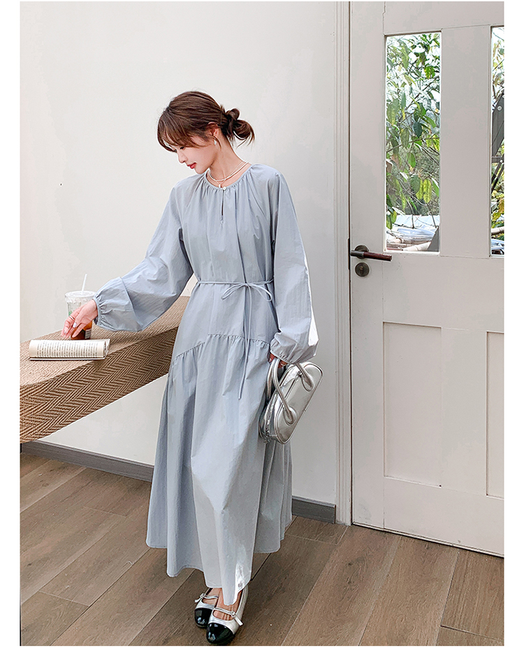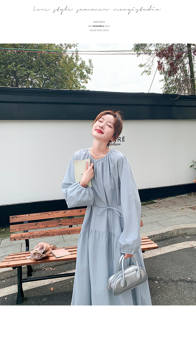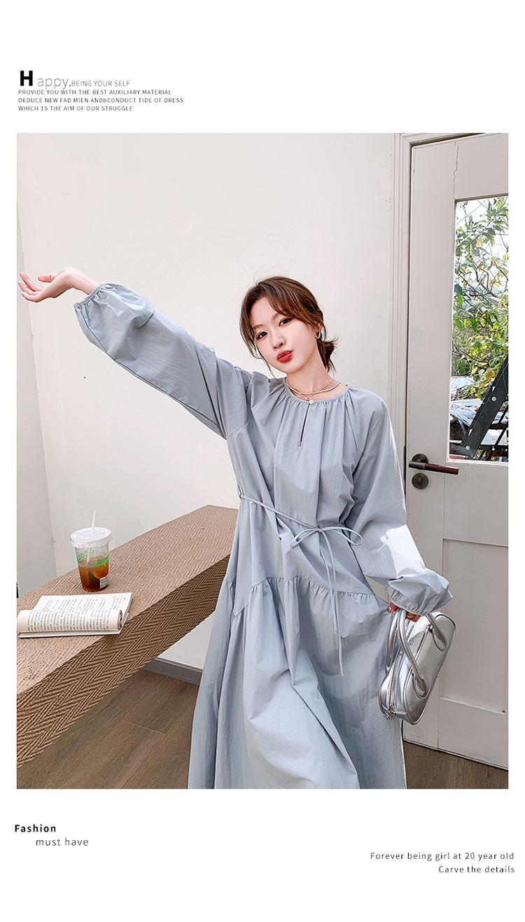 【ワンピース】フレンチ 長袖ワンピース レディース 秋新作 上品で可愛い リラックス感 ウエストマーク ロングドレス【JZシリーズ】