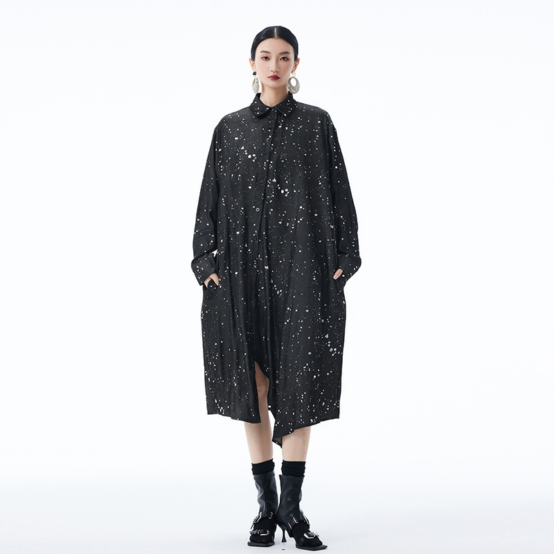 【ワンピース】フレンチレトロ 切替デザイン 大ポケット 長袖 ワンピース 秋新作 ゆったり 【JZシリーズ】
