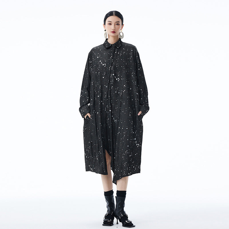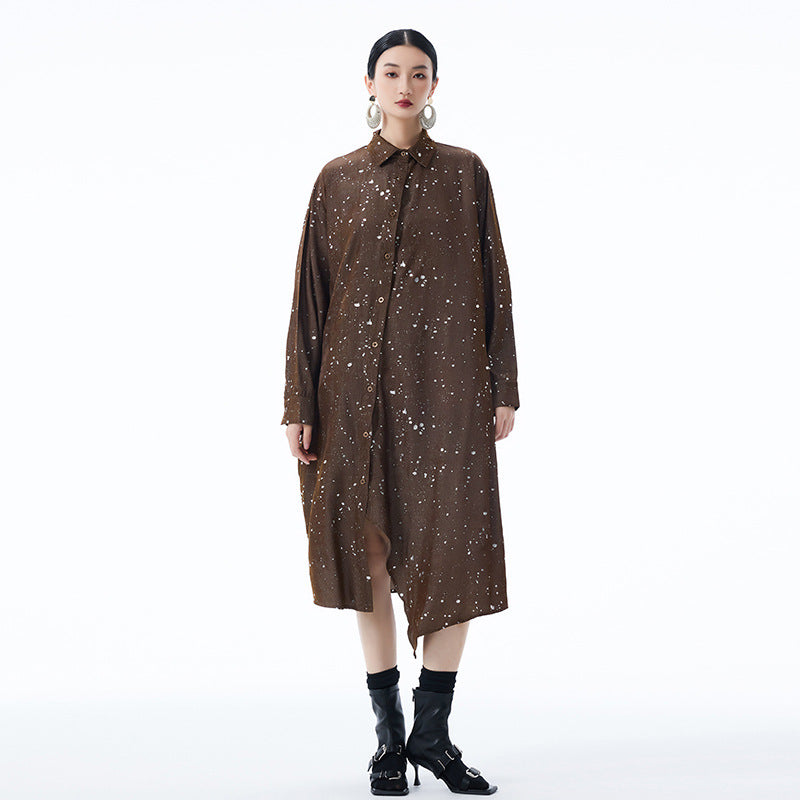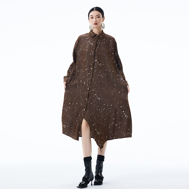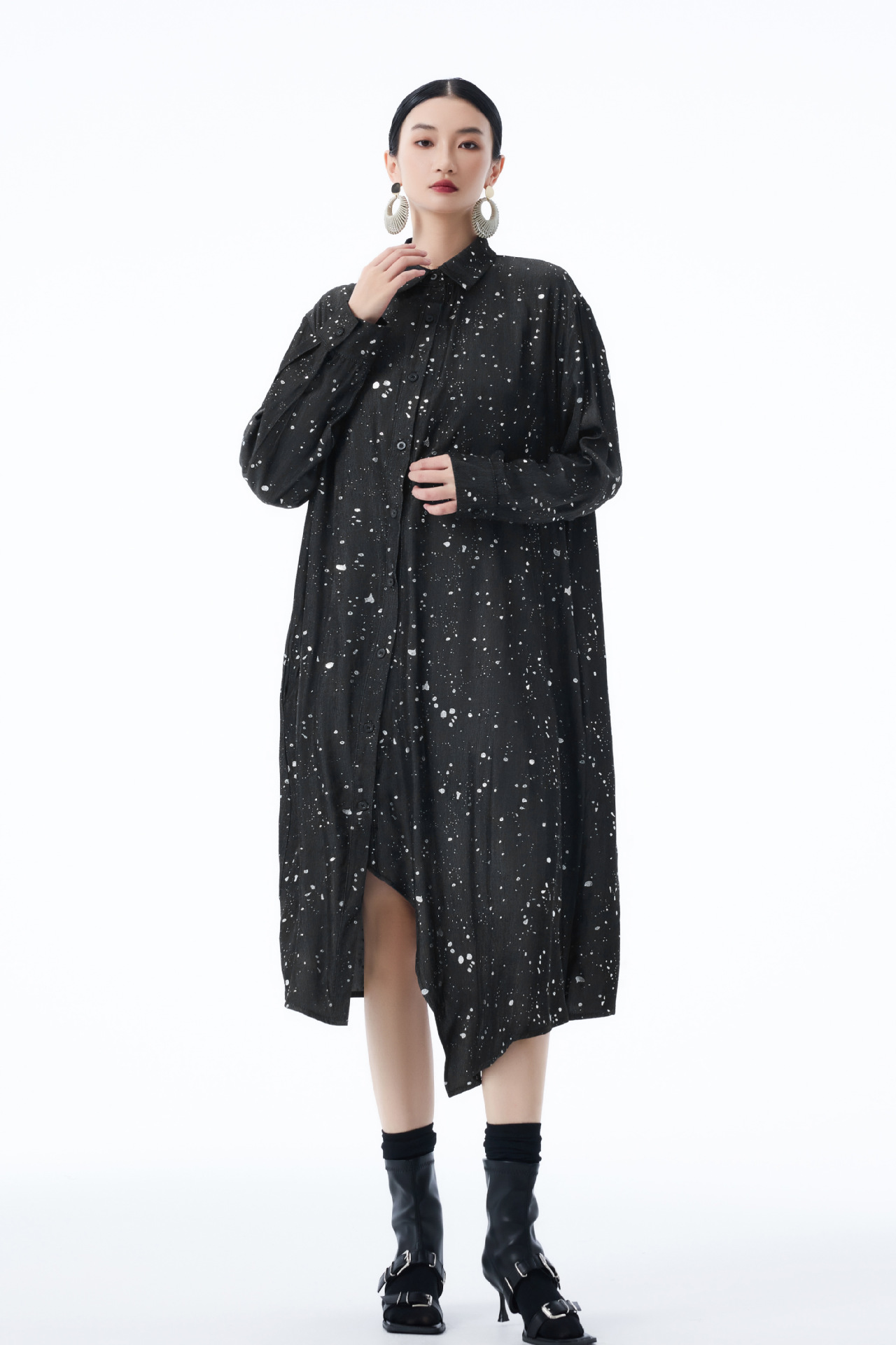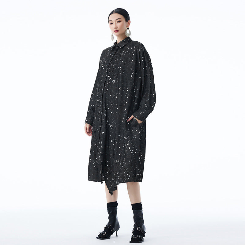 【商品名】【ワンピース】春 秋 冬 カジュアル 細見え ドット柄 長袖 ワンピース 【AHシリーズ】
