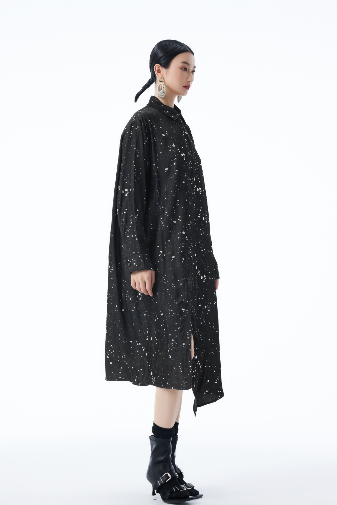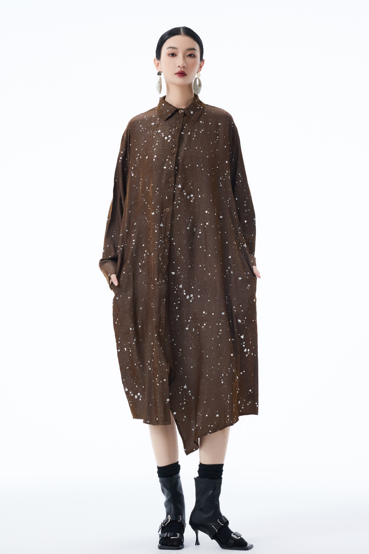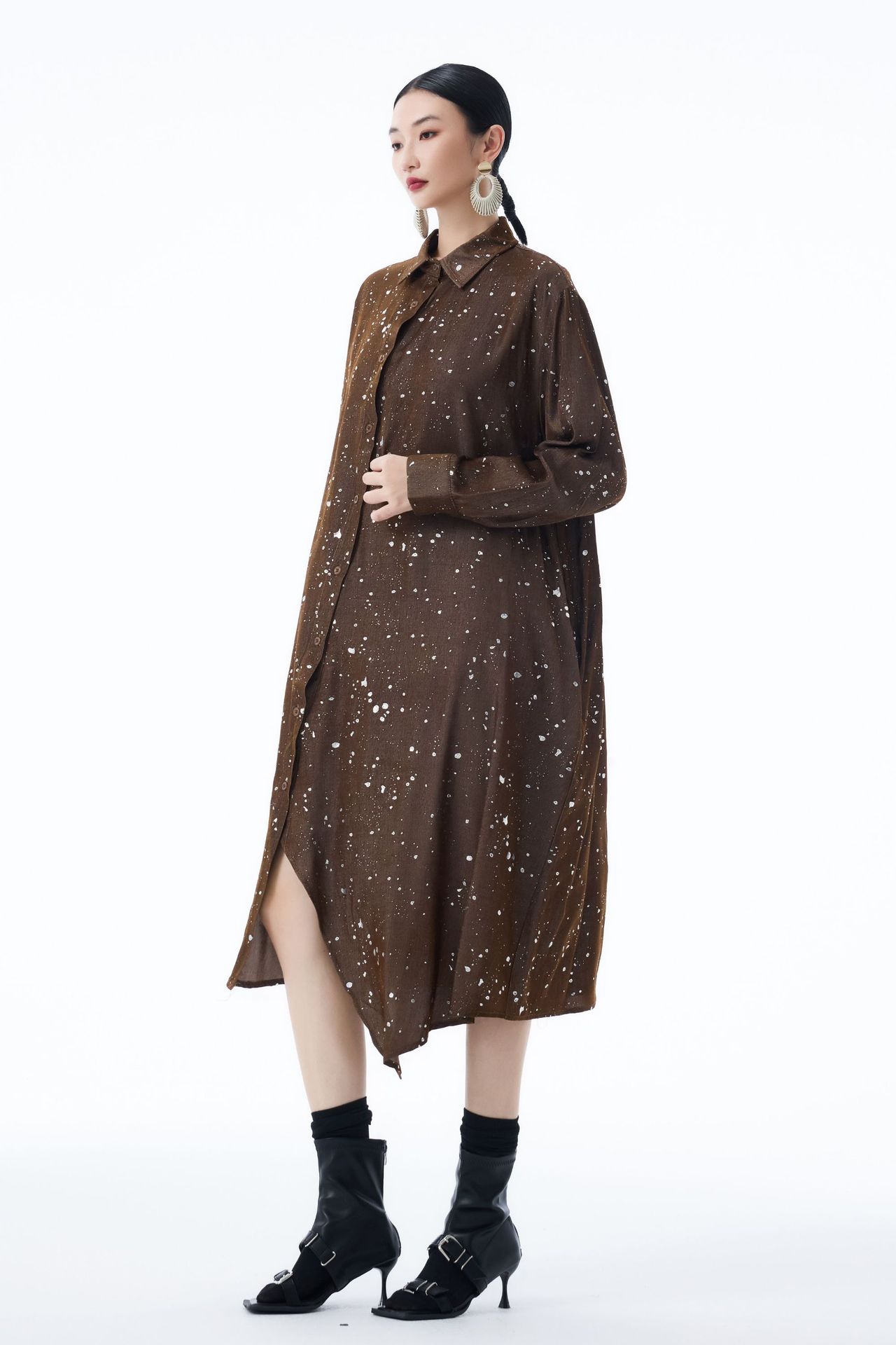 【商品名】【ワンピース】春 秋 冬 カジュアル 細見え ドット柄 長袖 ワンピース 【AHシリーズ】