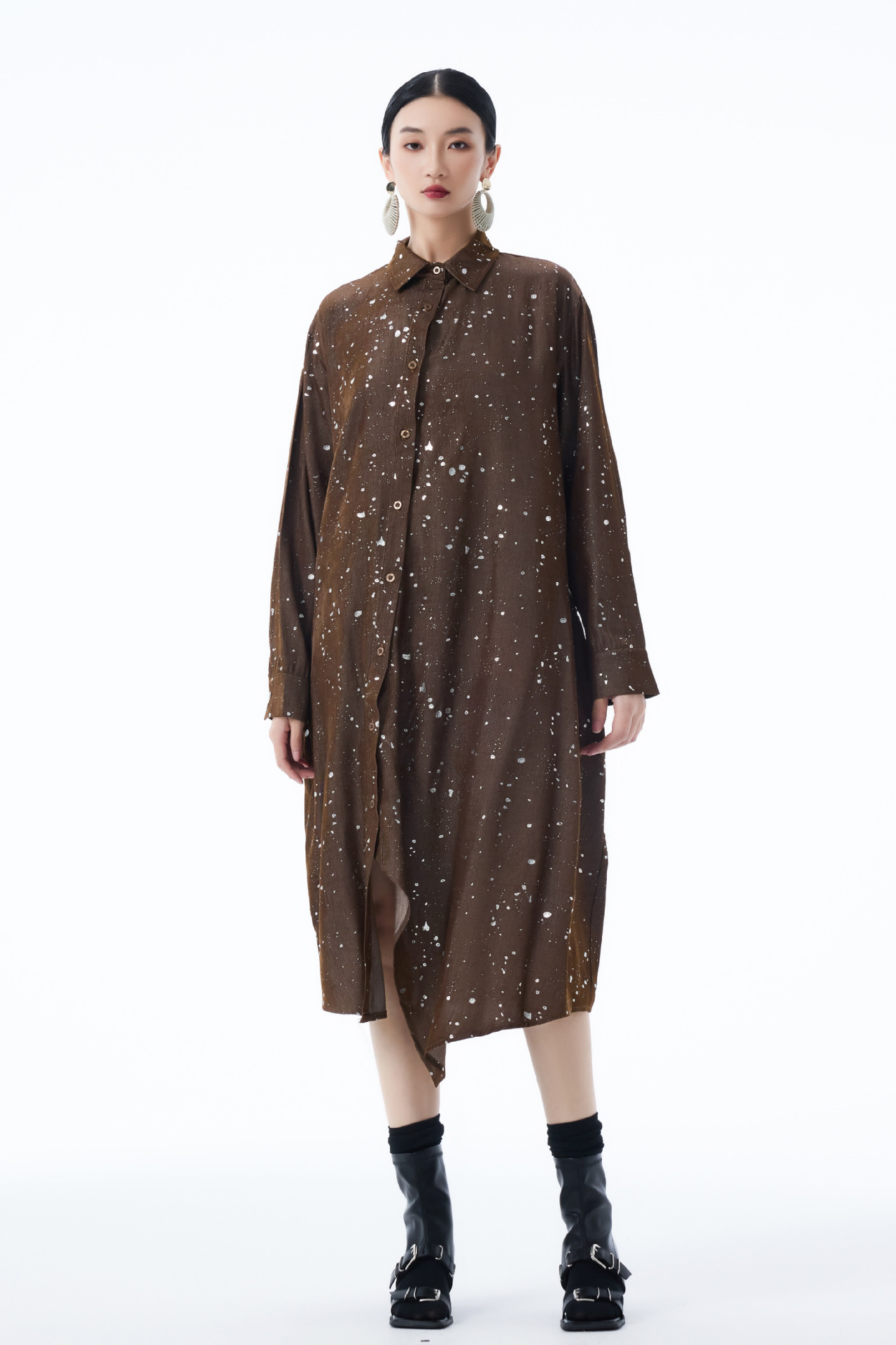 【ワンピース】春 秋 冬 刺繍 スイート 切り替え シャツ 長袖 ワンピース 【SHシリーズ】