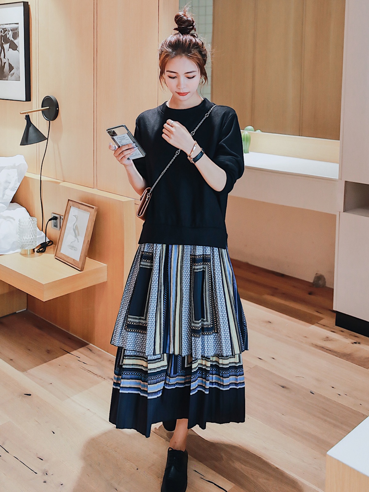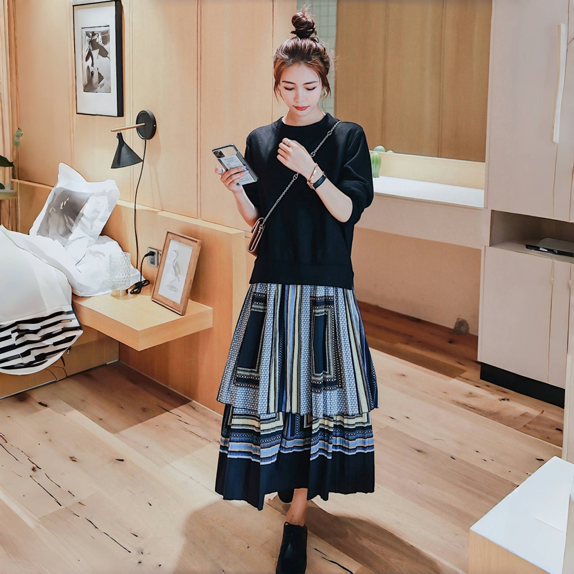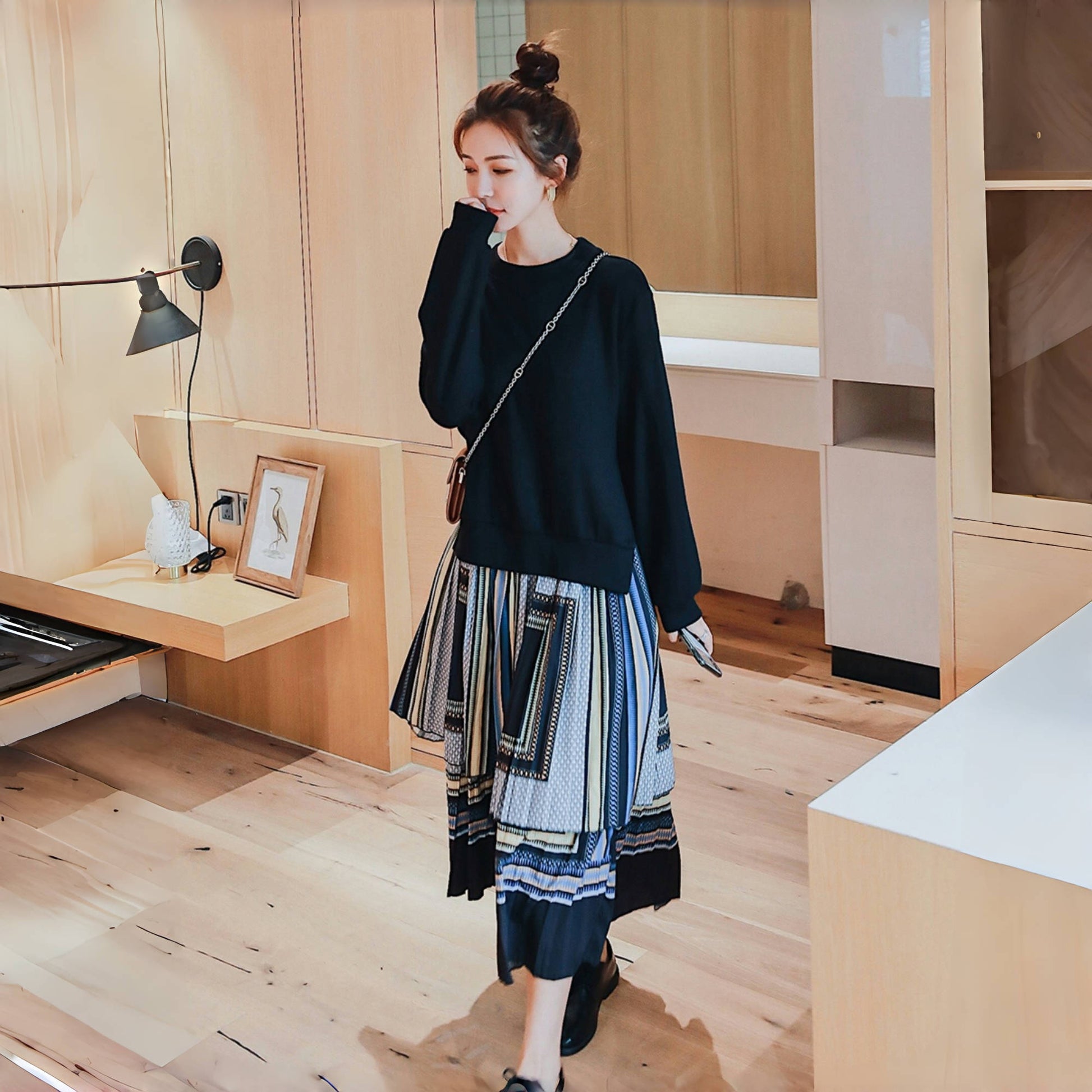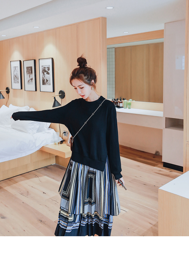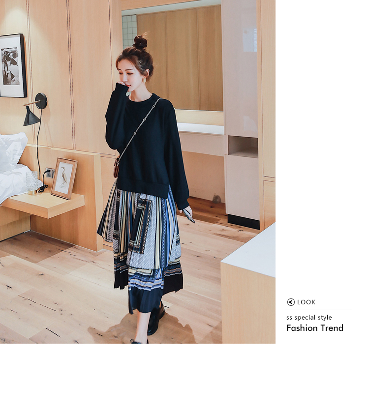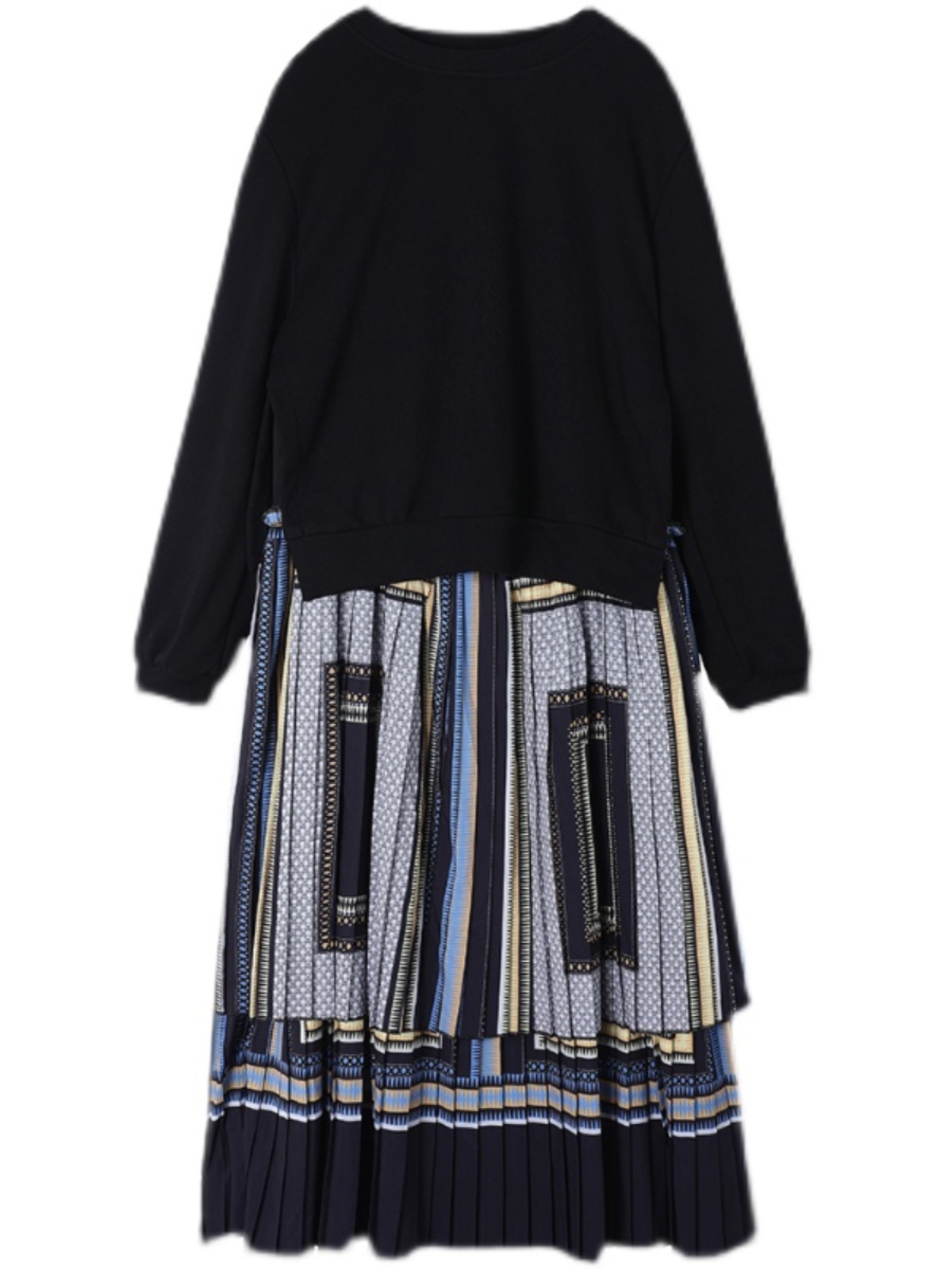 【商品名】【ワンピース】春 秋 冬 エスニック風 ドッキング風 スウェット ワンピース 【SHシリーズ】