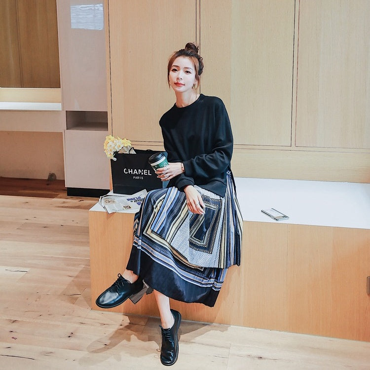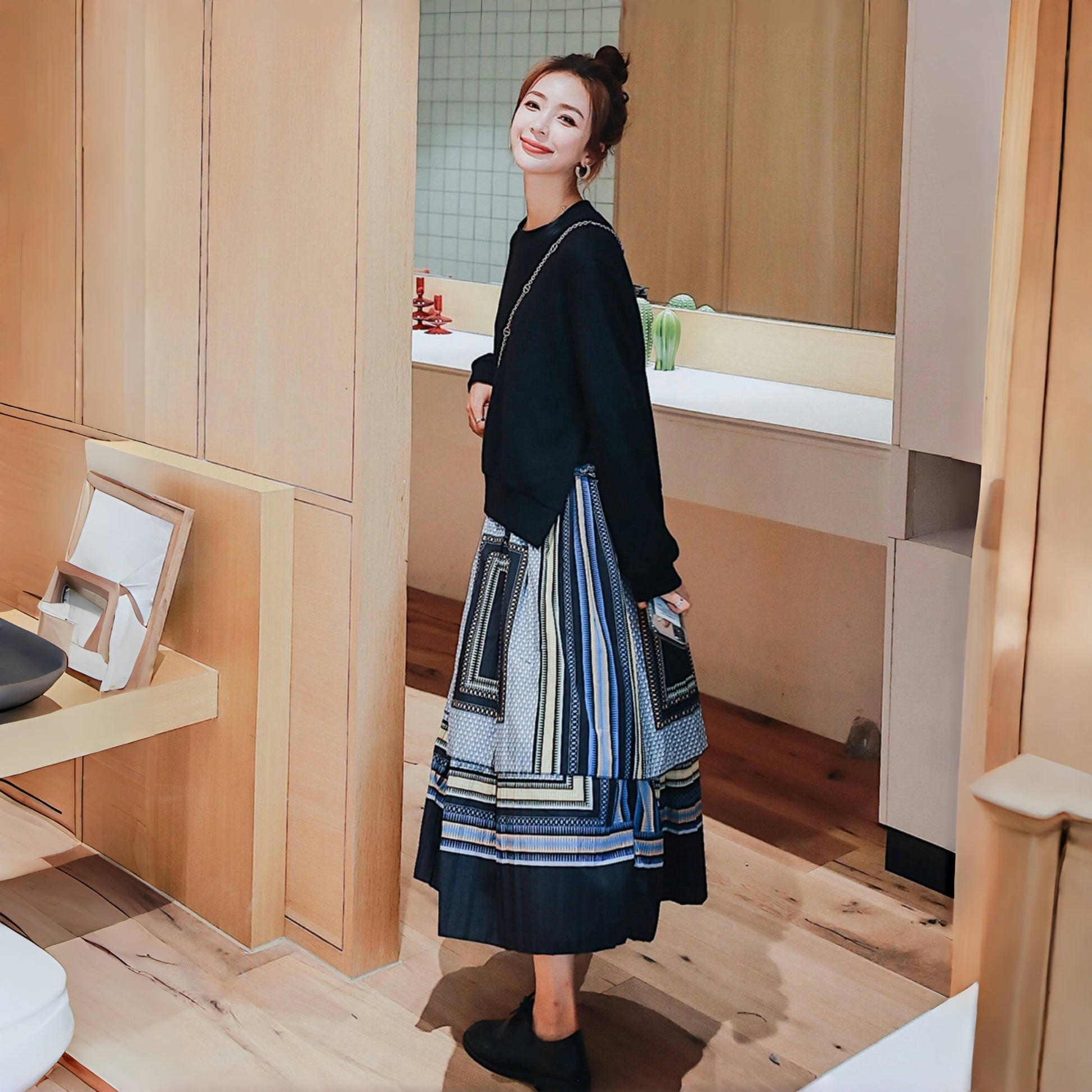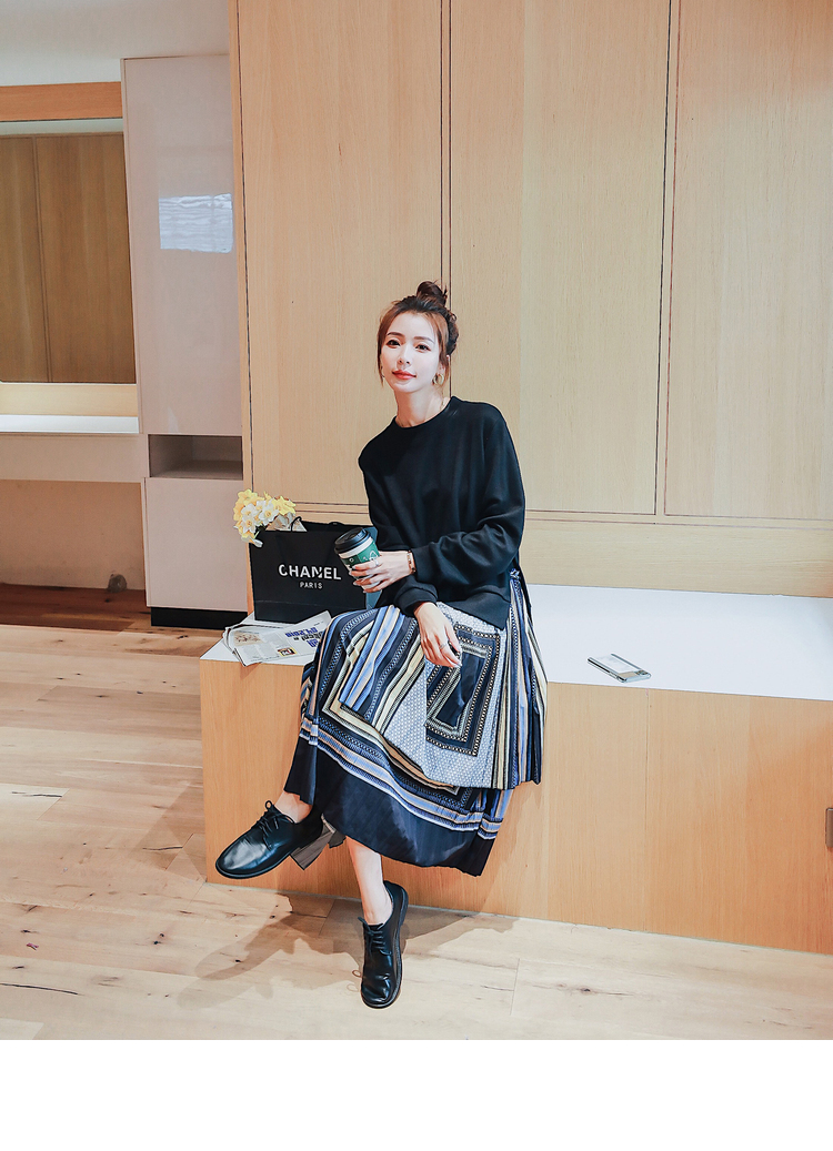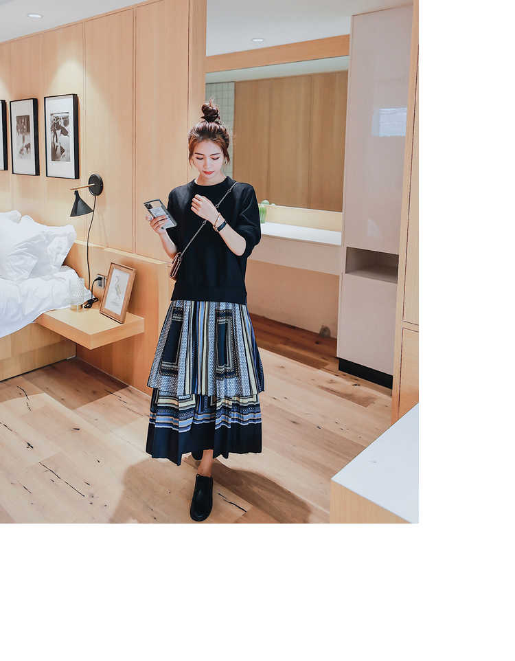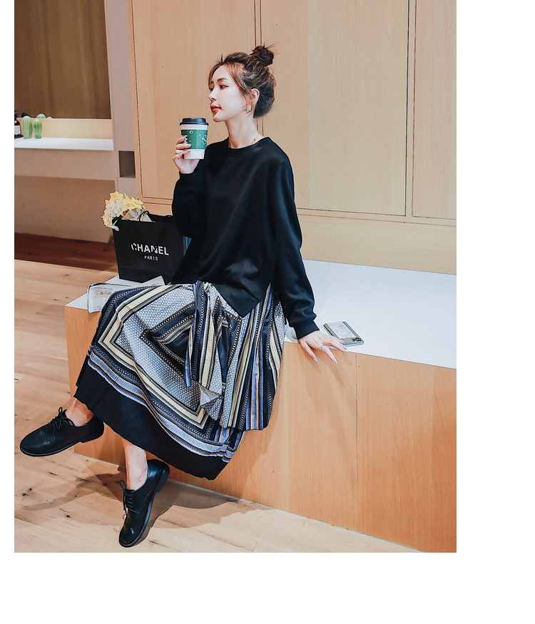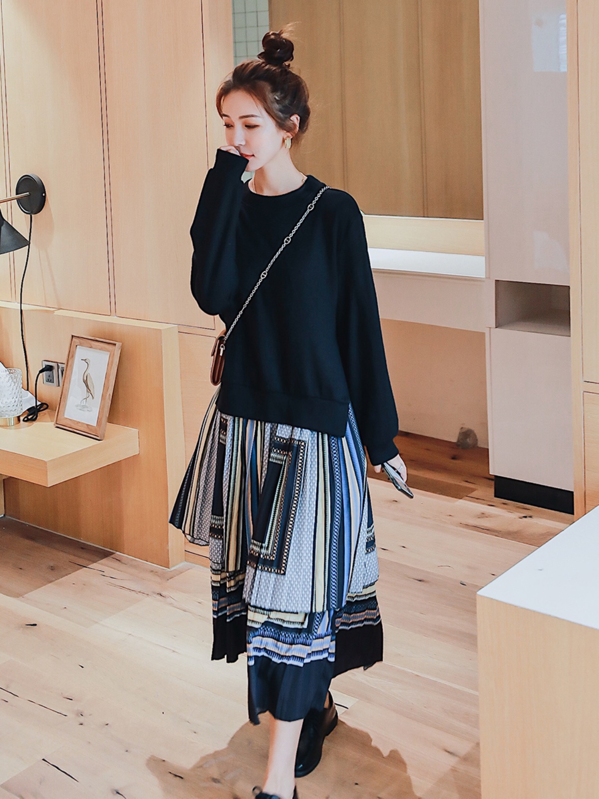 【商品名】【ワンピース】春 秋 冬 エスニック風 ドッキング風 スウェット ワンピース 【SHシリーズ】