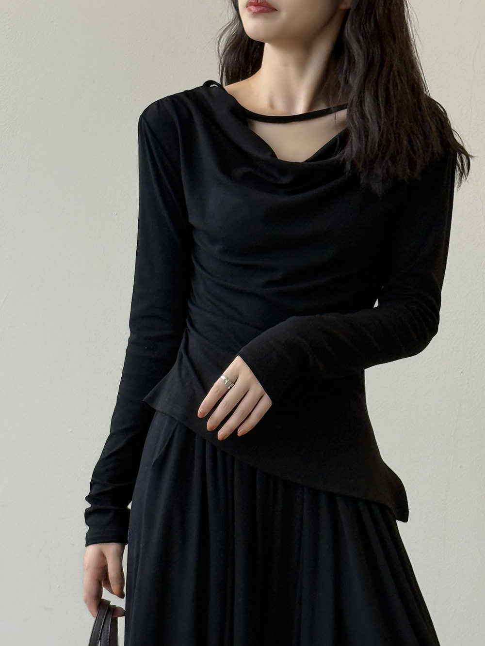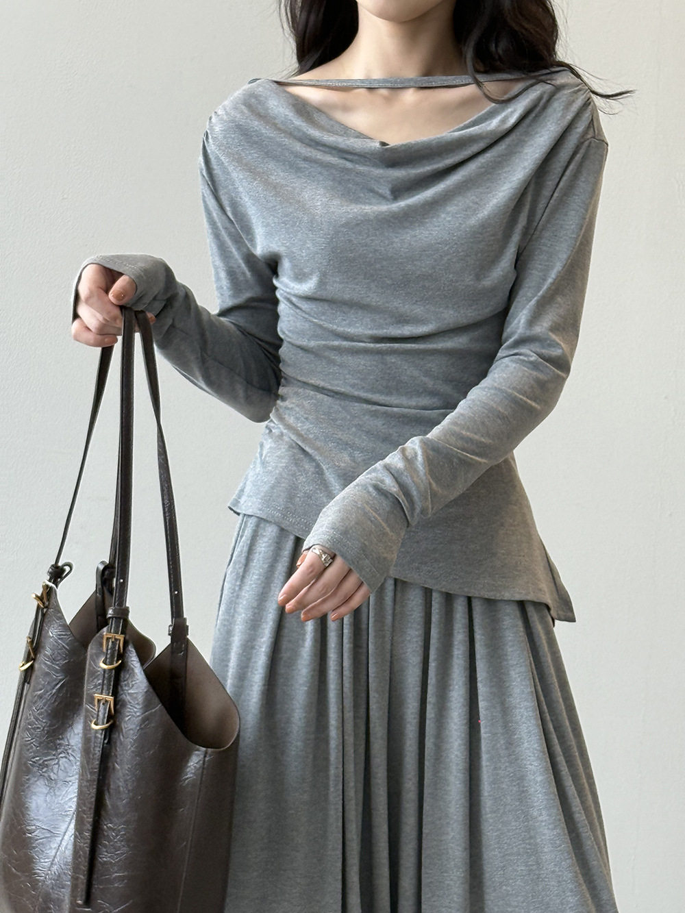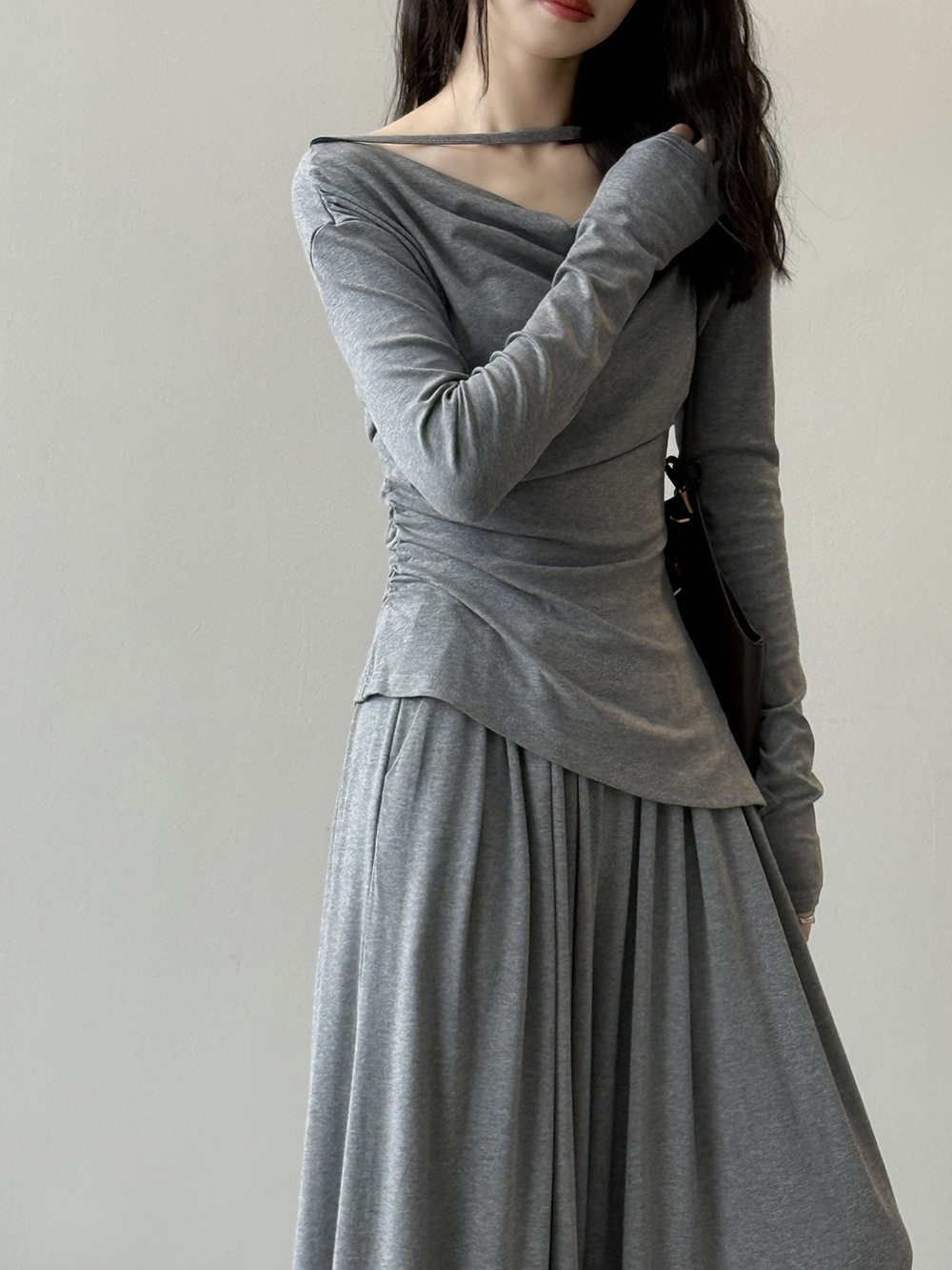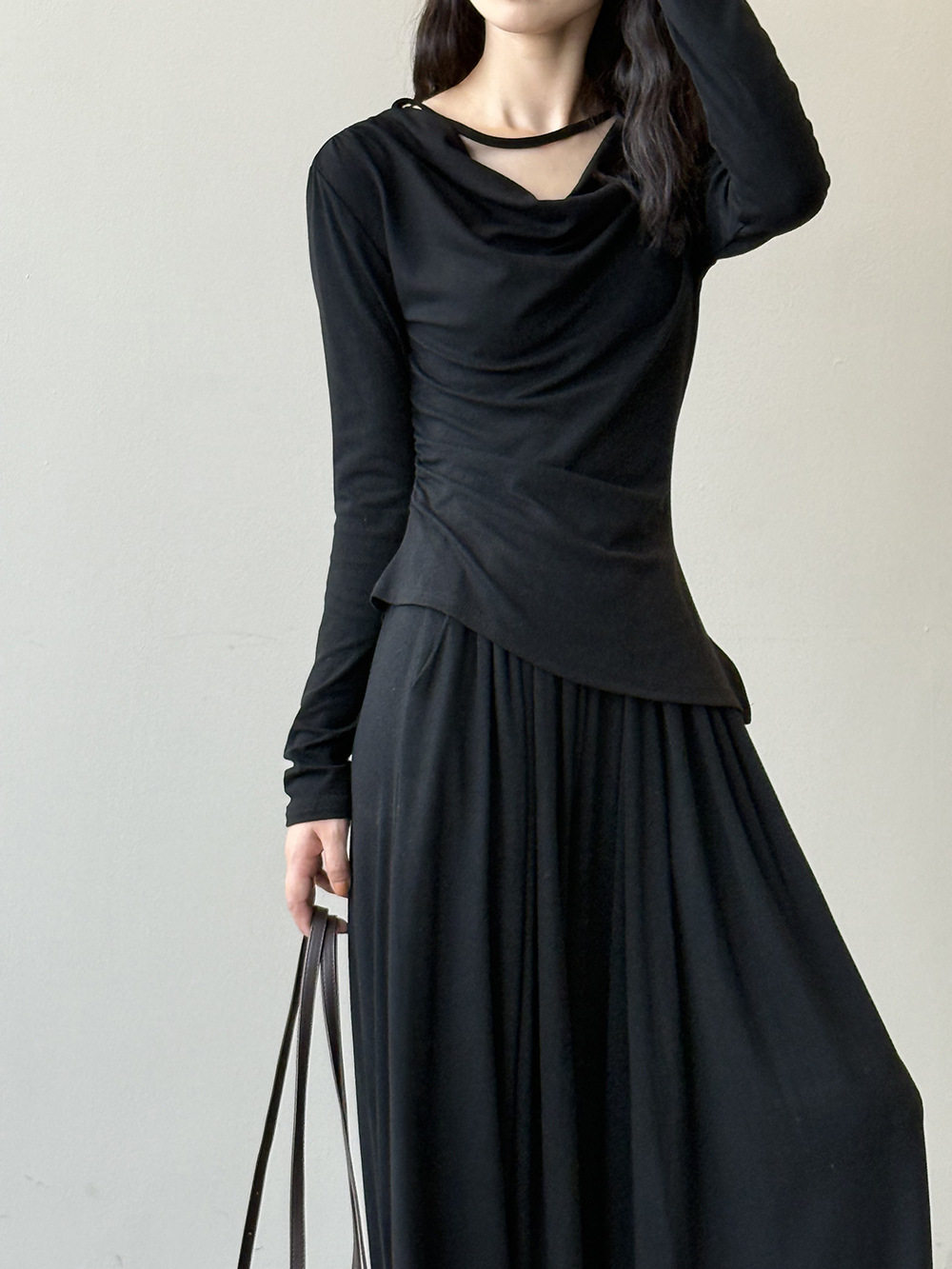 2点セット!【セットアップ】フレンチ ウエストマークTシャツ+ハイウエストドレープ感フルレングスパンツ レディース 秋 リラックス風 上下セット【JZシリーズ】