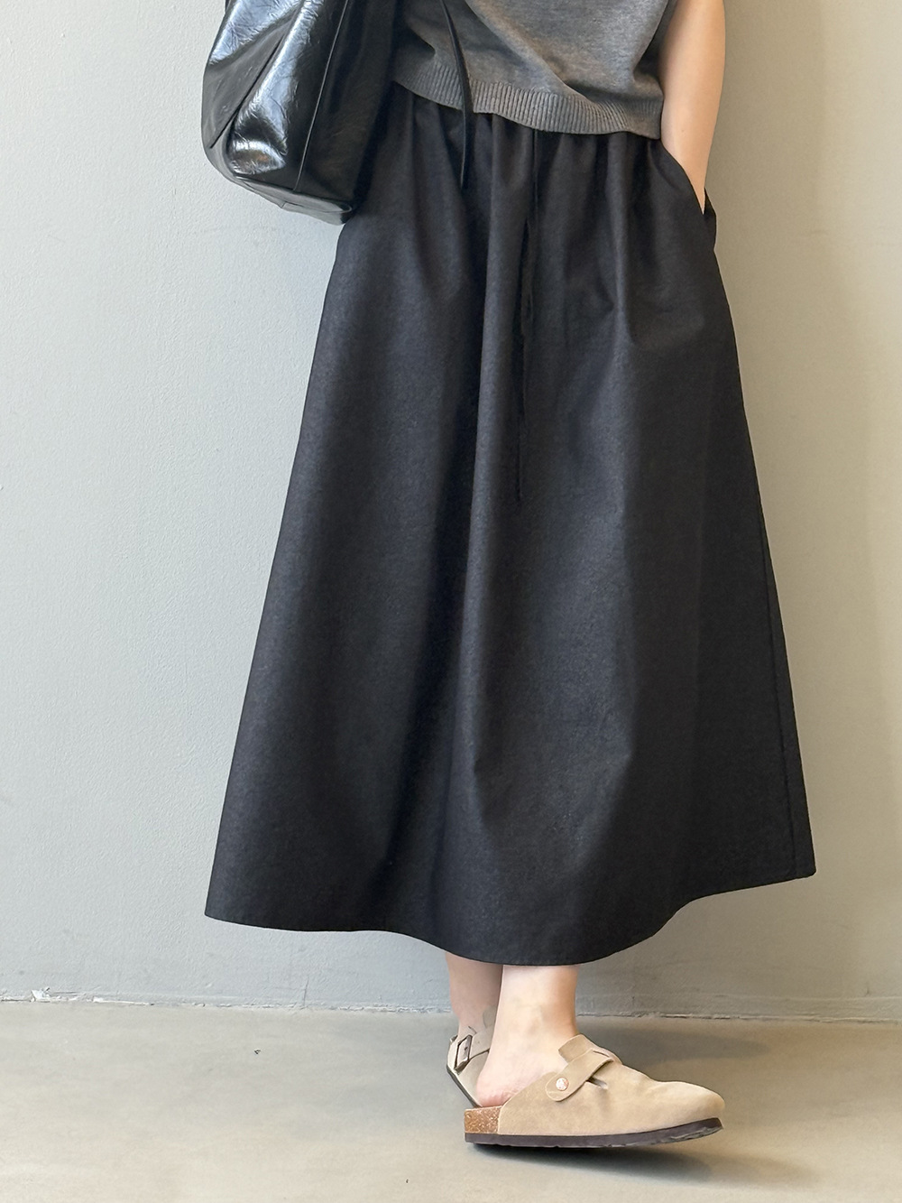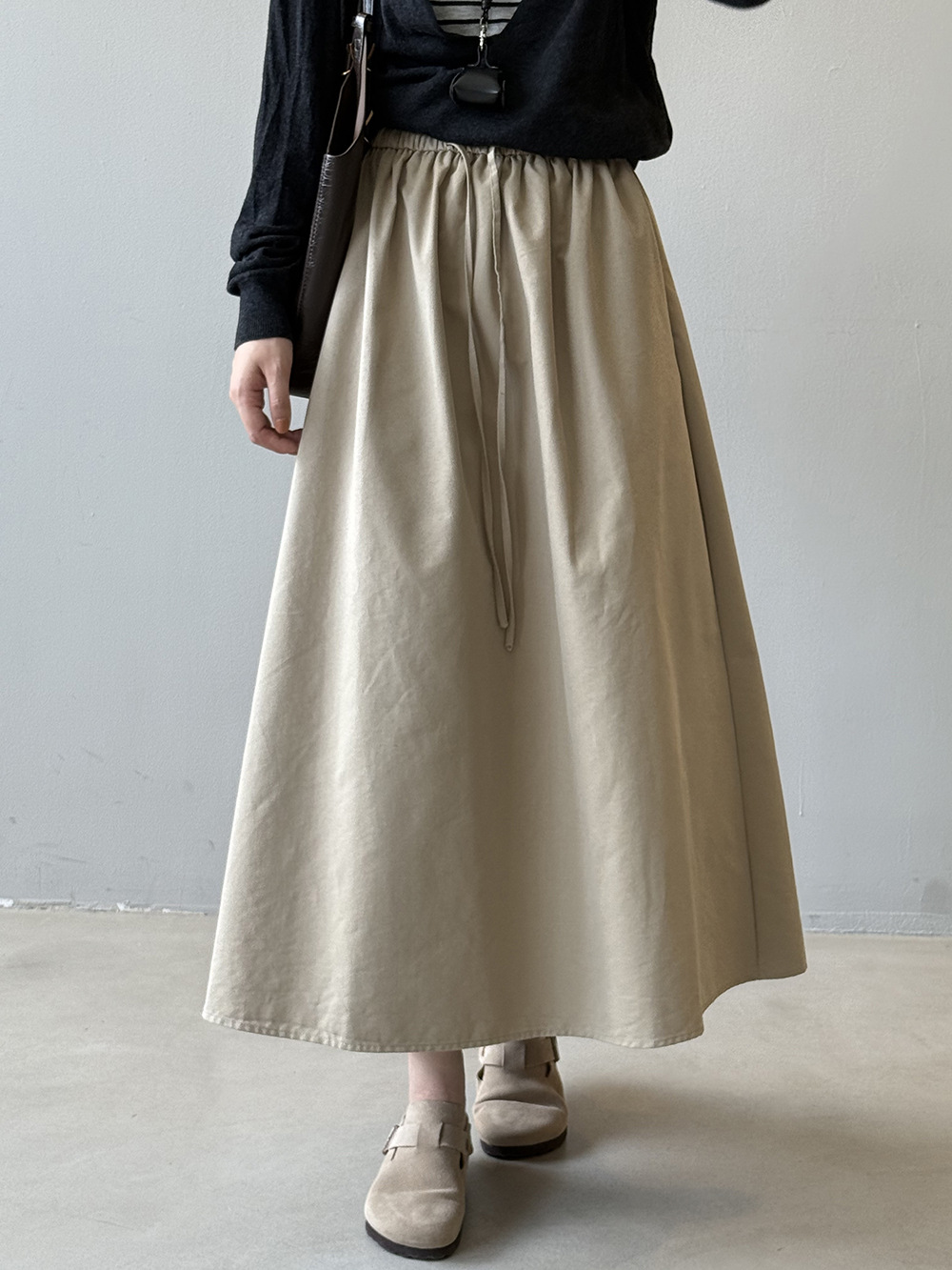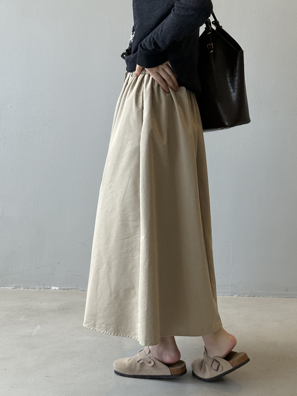 【商品名】【ボトムス】韓国風 ハイウエスト ワークスカート レディース 秋新作 エレガント シンプル Aライン 細見えミモレ丈スカート【JZシリーズ】