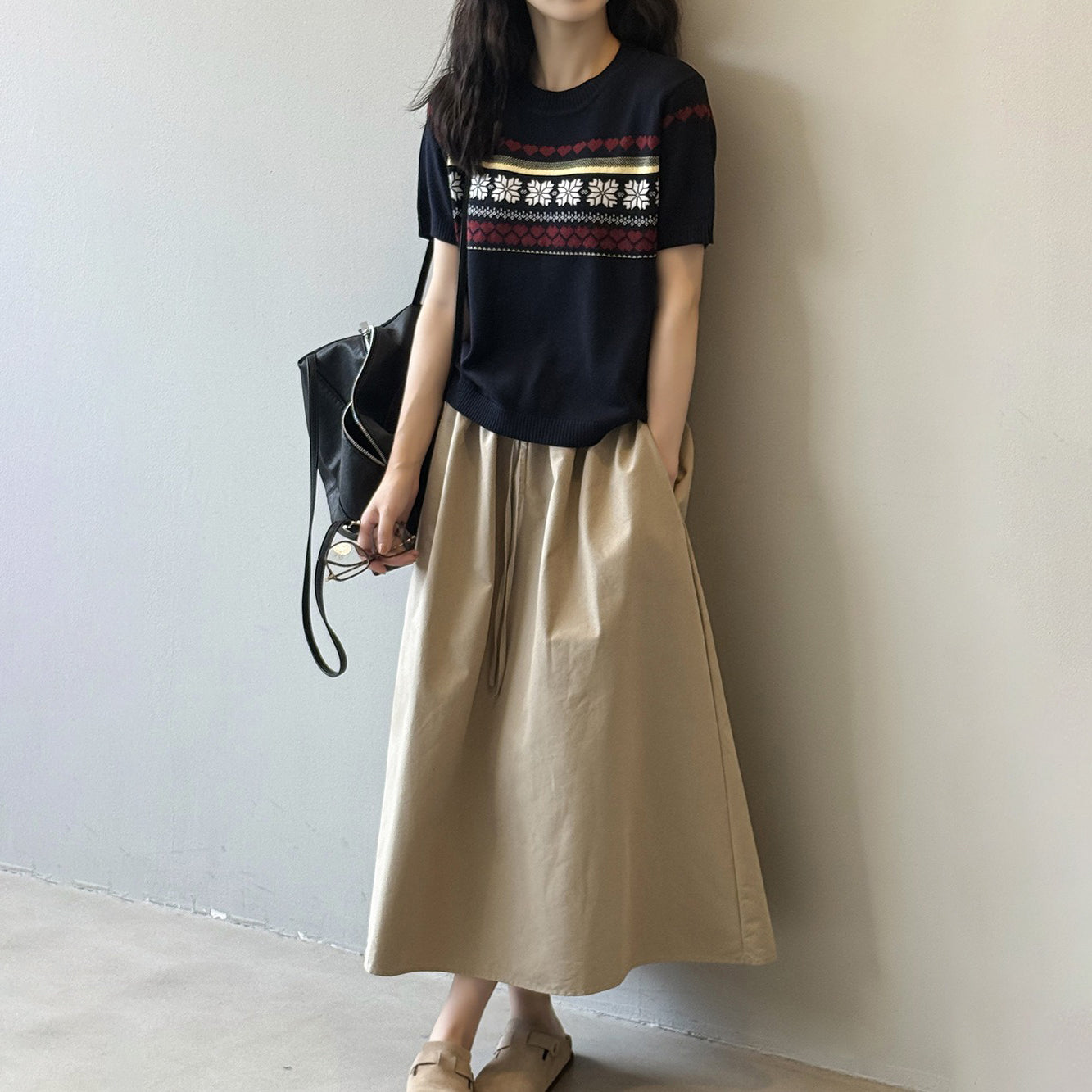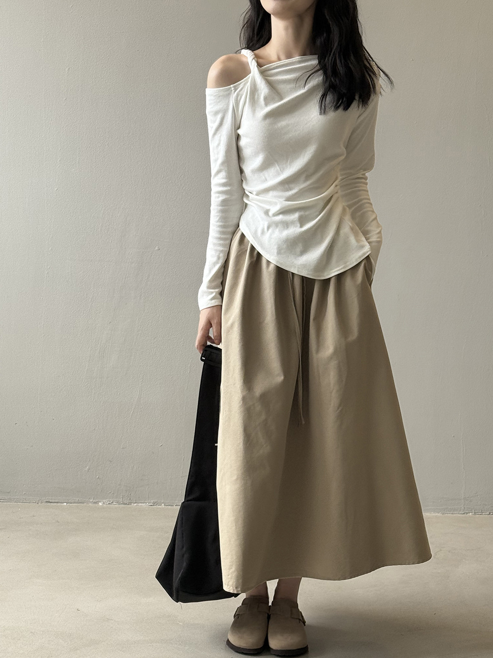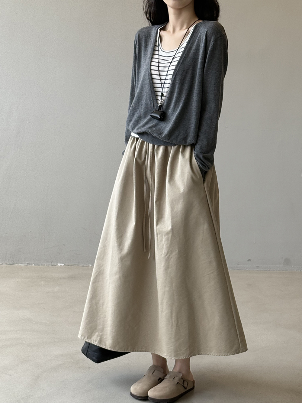 【商品名】【ボトムス】韓国風 ハイウエスト ワークスカート レディース 秋新作 エレガント シンプル Aライン 細見えミモレ丈スカート【JZシリーズ】
