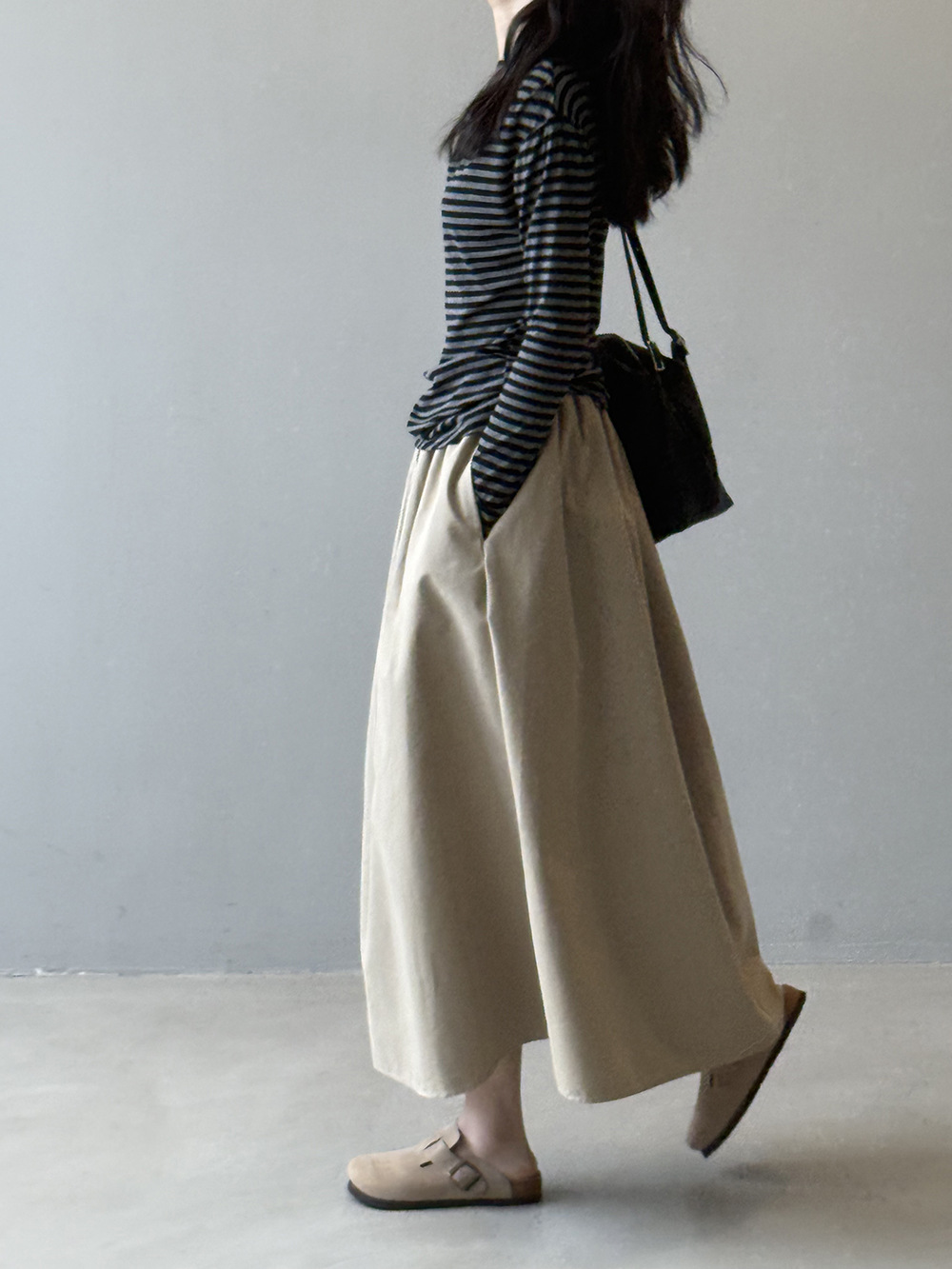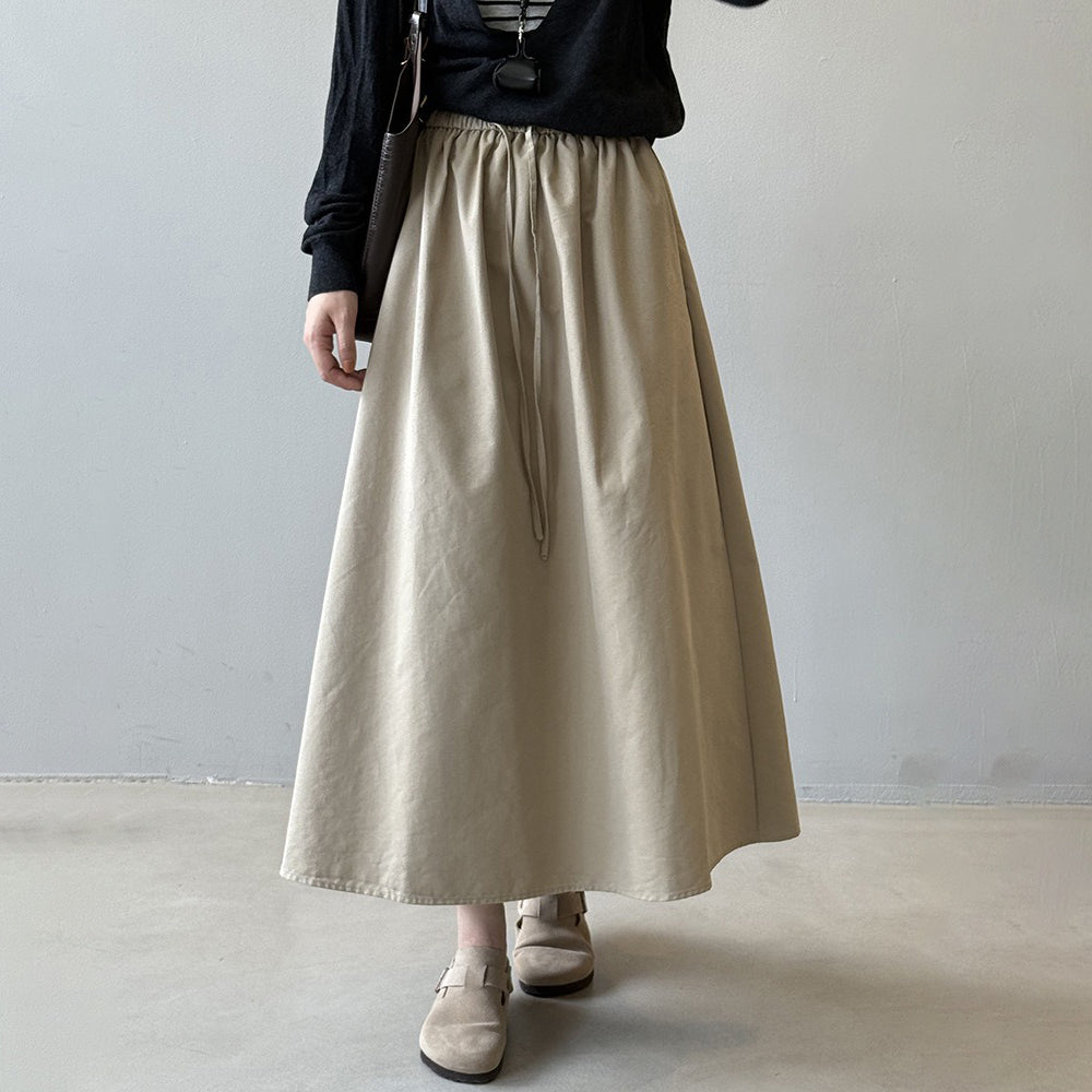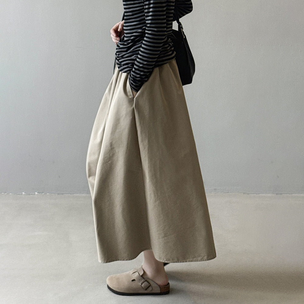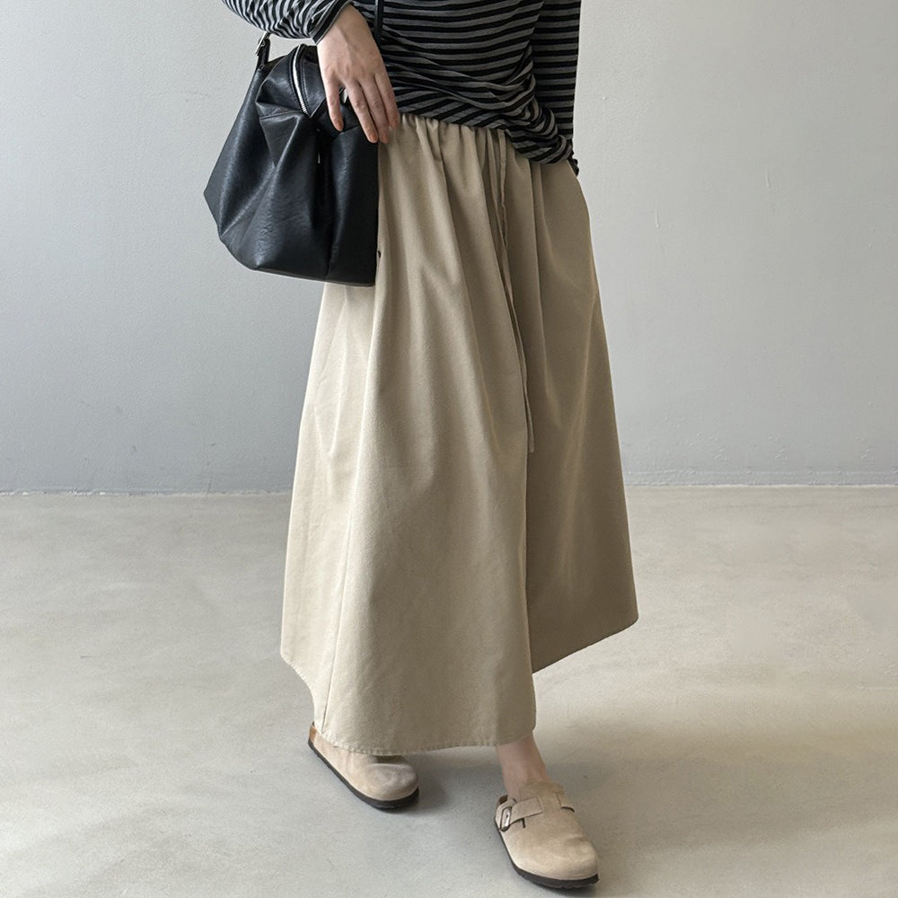 【ボトムス】韓国風 ハイウエスト ワークスカート レディース 秋新作 エレガント シンプル Aライン 細見えミモレ丈スカート【JZシリーズ】