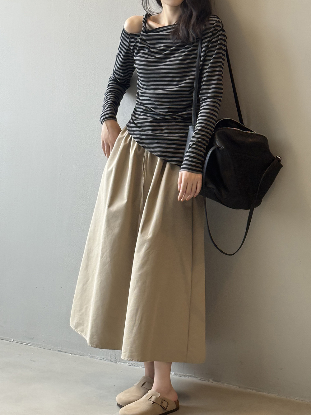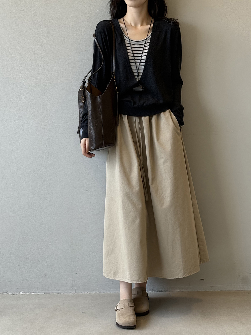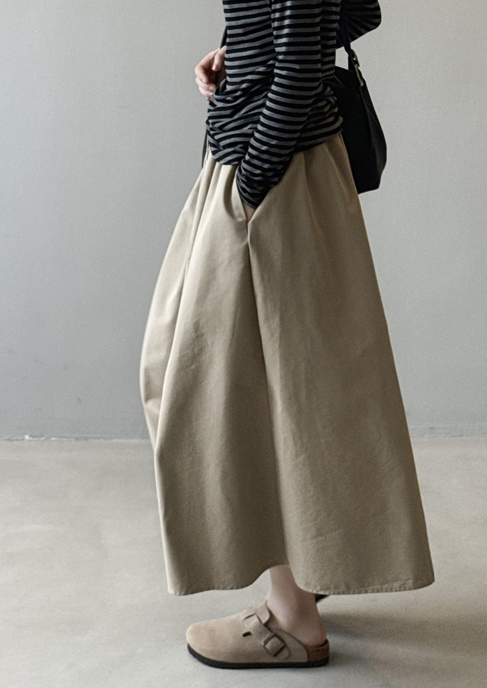 【ボトムス】韓国風 ハイウエスト ワークスカート レディース 秋新作 エレガント シンプル Aライン 細見えミモレ丈スカート【JZシリーズ】