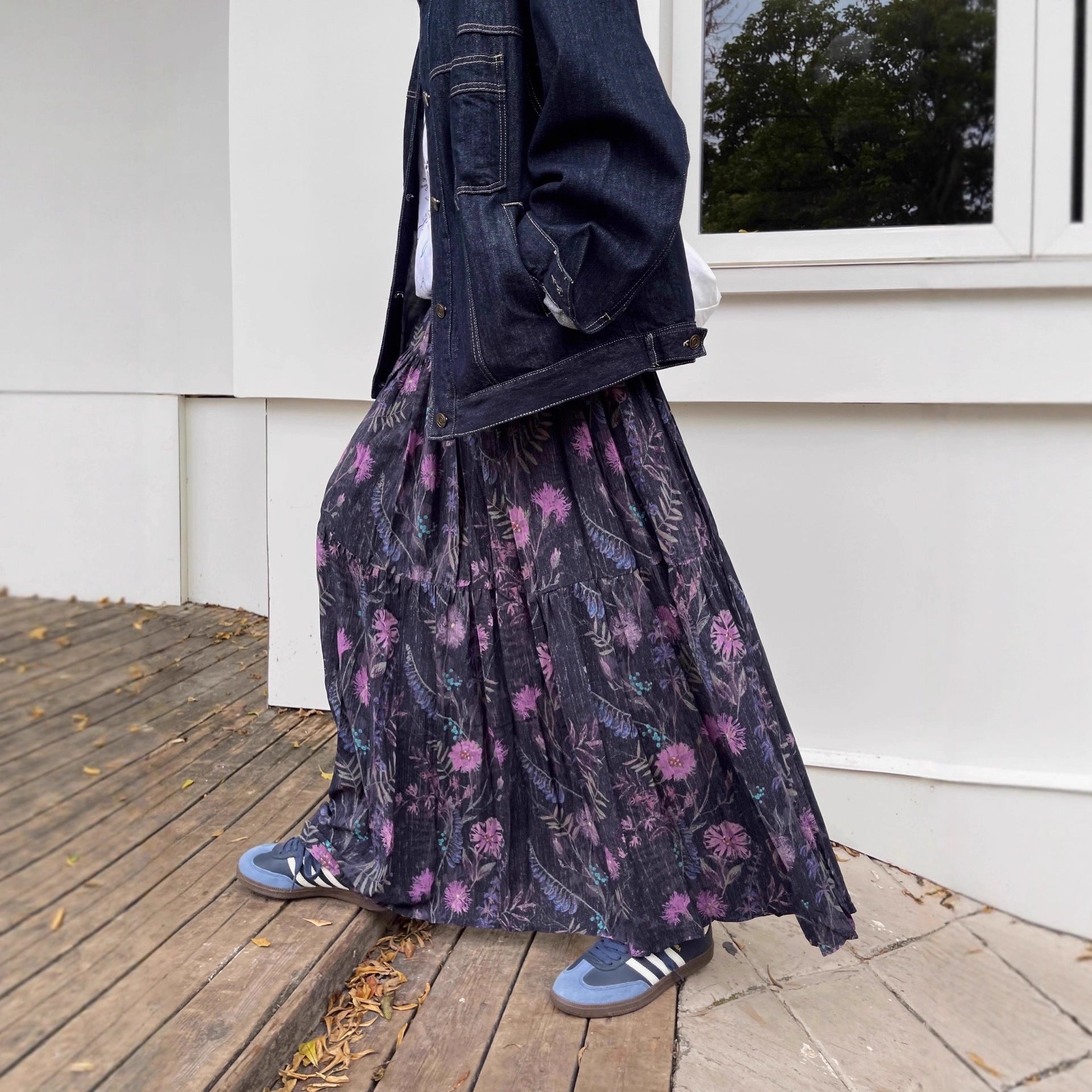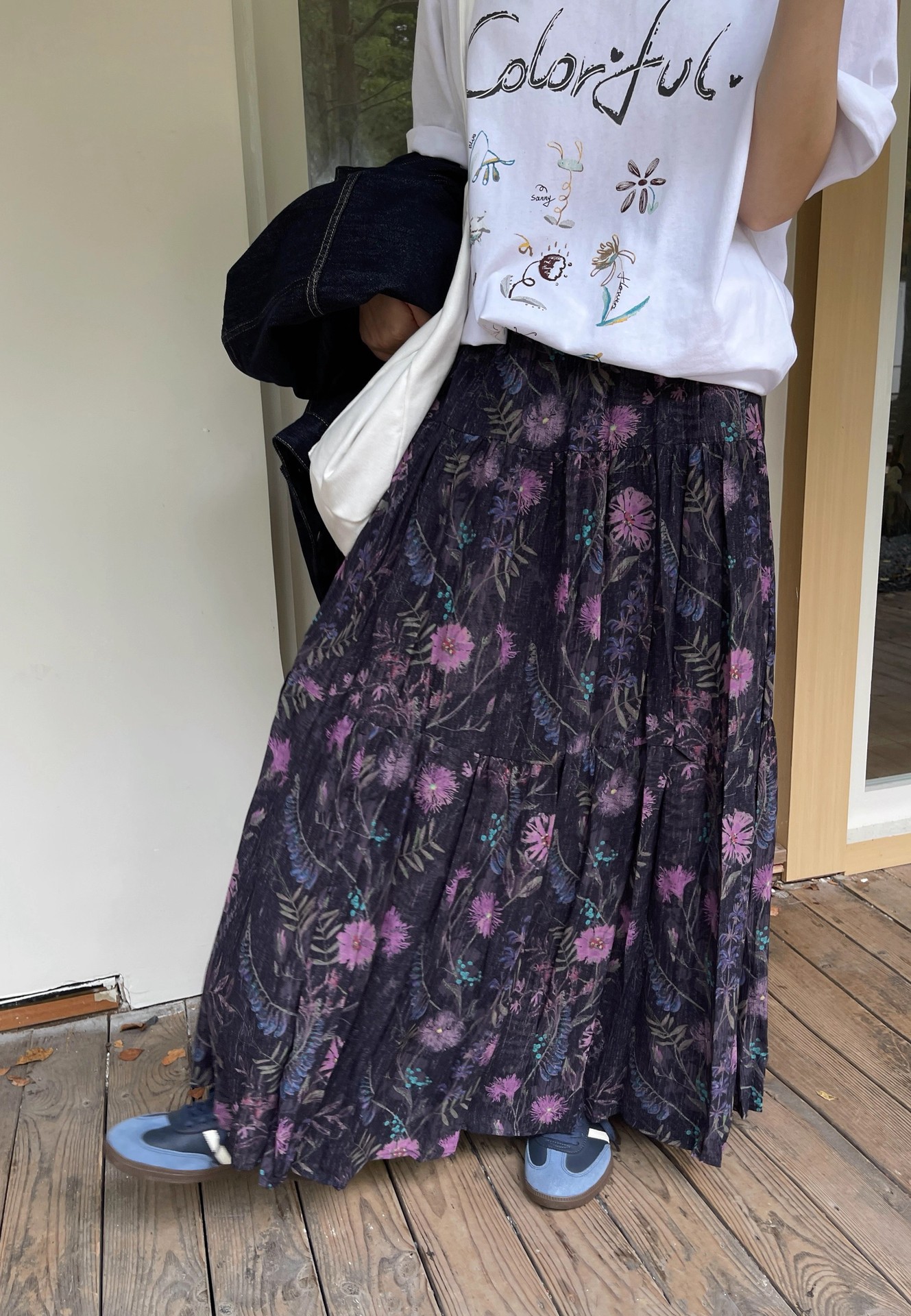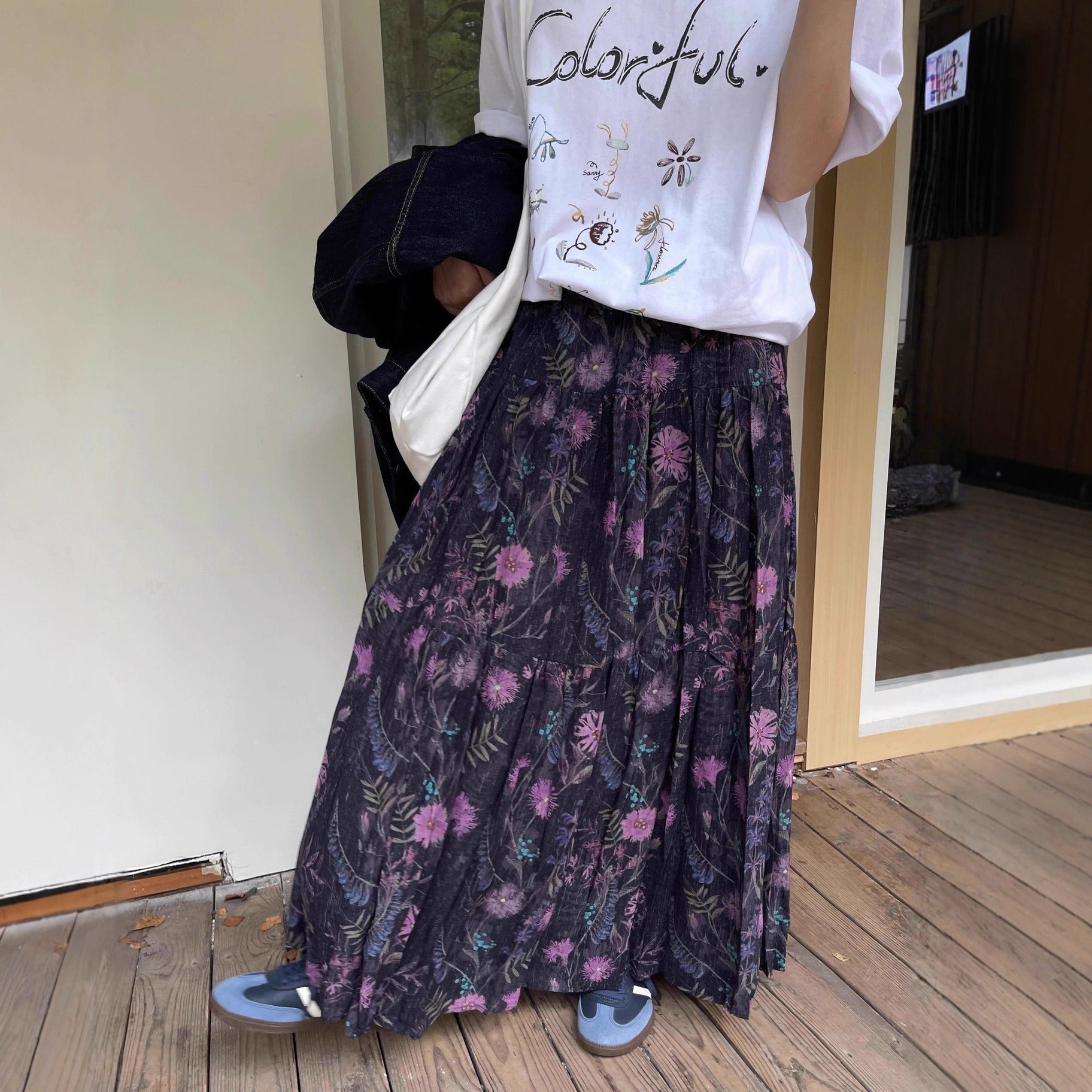 【ボトムス】韓国 トレンド ハイウエスト Aラインスカート 花柄 ミディ丈 レディース カジュアル おしゃれ映え【SHシリーズ】