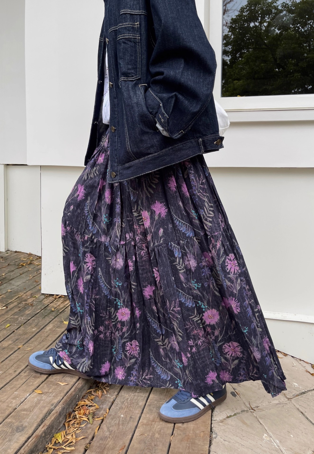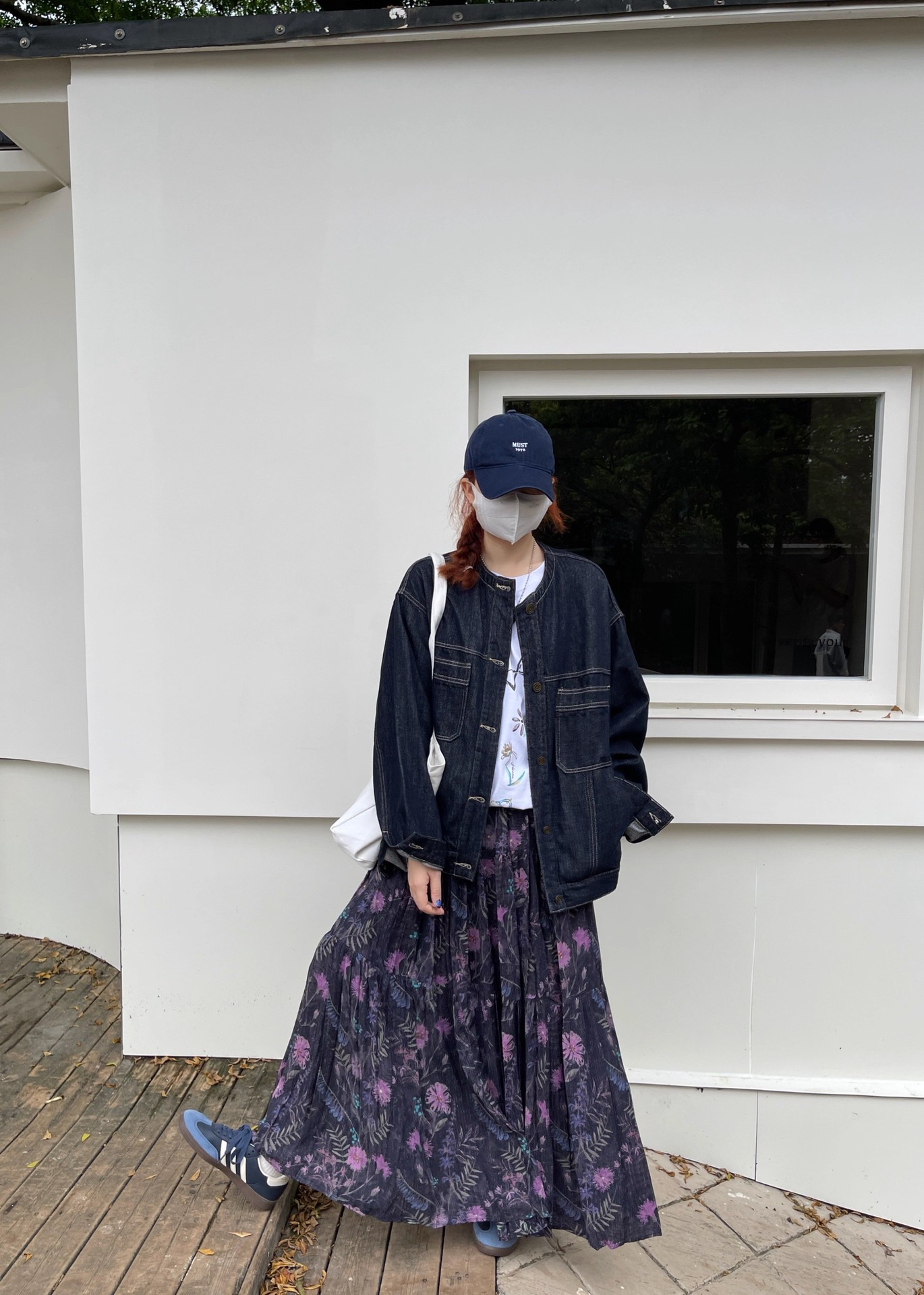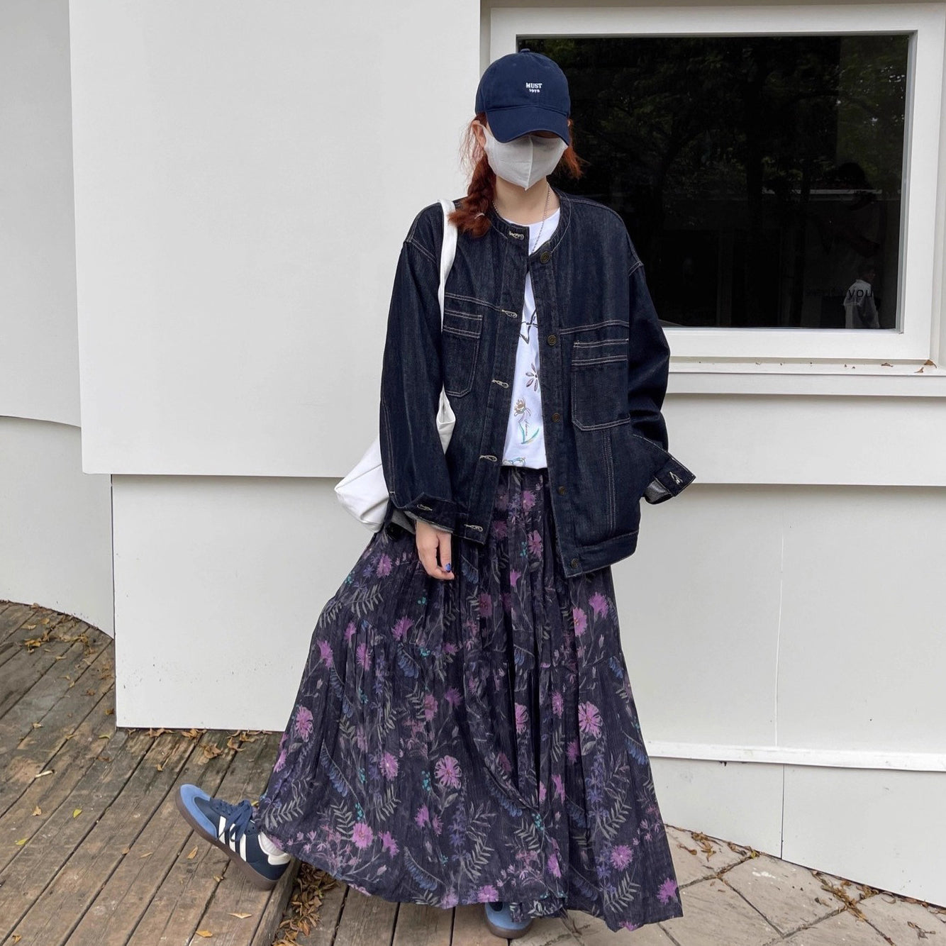 【ボトムス】韓国 トレンド ハイウエスト Aラインスカート 花柄 ミディ丈 レディース カジュアル おしゃれ映え【SHシリーズ】